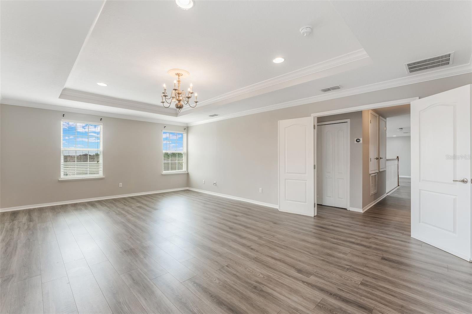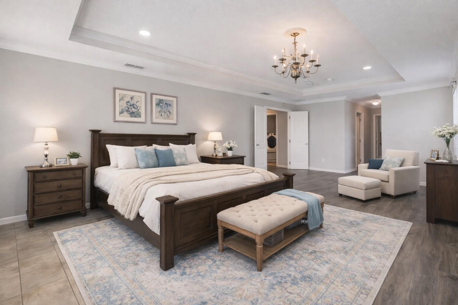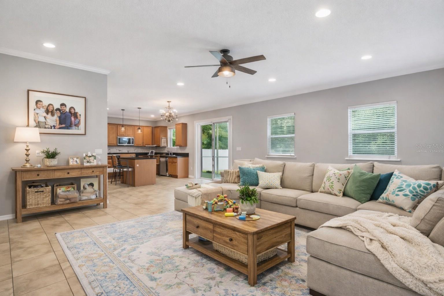One or more photo(s) has been virtually staged. Price reduced! Welcome to this large 2-story home that boasts an impressive 6 bedrooms and 4.5 bathrooms with fresh interior paint. This property is a rare find with not one, but two master suites, one on each level, providing ample space and privacy for all members of the family. As you step inside, you'll be greeted by a spacious living room that seamlessly flows into the dining room - perfect for entertaining or simply relaxing after a long day. The house features no carpeting throughout; the entire first floor has tile and the second floor has laminate making it easy to clean and maintain. The kitchen is truly a chef's dream with plenty of counter space and storage, walk-in pantry plus additional wall pantry and double oven. Kitchen opens up to the family room area which overlooks the fenced-in yard - an ideal spot for hosting summer barbecues. On this first floor, there's also a convenient half bath for guests. Upstairs awaits an oversized Master Bedroom with an en-suite bath plus four more bedrooms and two additional full baths. A laundry room on this level adds convenience to daily chores. If you need more space? There's an expansive loft that can serve as an additional living area, game room or office space - the possibilities are endless! The property also includes a generous 3-car garage providing plenty of space for vehicles or additional storage. New sod was put in backyard. Nestled between downtown Clermont and Groveland off Hwy 50, this community is conveniently located close to US-27 and Turnpike. You'll also be near hospitals, shopping, restaurants, boating, fishing and so much more. Don't miss out on this incredible opportunity!
