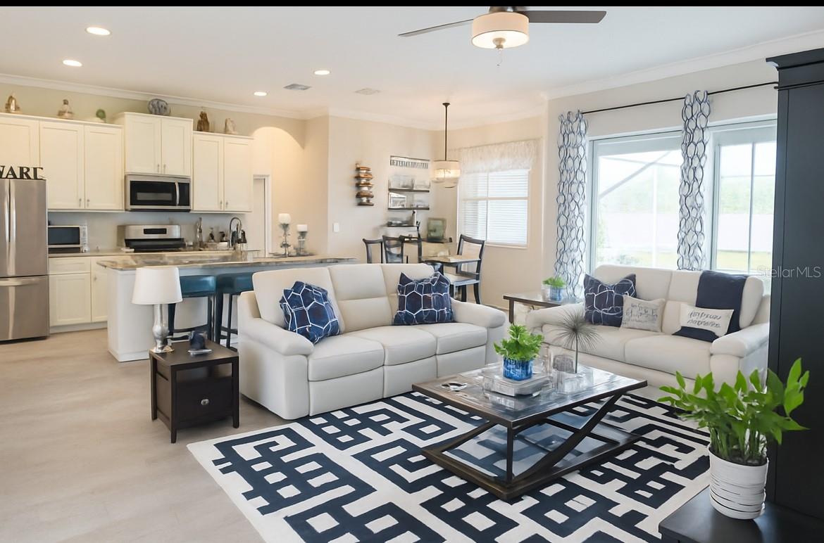 Welcome to this beautiful, upgraded Hibiscus Home model, built in 2017 and located in the highly sought after Cherry Lake Oaks community. This meticulously maintained single-story ranch home features 1,884 square feet, four bedroom, and two full bathrooms, all thoughtfully designed for comfort and style. Step inside to discover an open concept living area with luxury tile flooring, crown molding, and designer paint throughout. The gourmet kitchen is appointed with stainless steel appliances, granite countertops, and upgraded cabinetry seamlessly opening to the family room and dining space. Retreat to the spacious master suite, complete with dual sinks, a separate shower and tub, and California closets. Three additional bedrooms provide ample room for family, guest, or a home office. Enjoy indoor-outdoor living with an extended covered rear lanai overlooking the private yard, perfect for entertaining or quiet evenings. Situated on a premium .29-acre lot with 30' side yard buffers for added privacy, this home offers both space and serenity in a community limited to approximately 70 semi-custom homes. Located just minutes from shopping, dining, and easy access to the Florida Turnpike, this property fits the modern lifestyle. Includes a two-car garage, irrigation system, oversized sliding doors, and pre-wired security system. Low HOA fees. Don't miss your chance to own a thoughtfully upgraded, move-in ready home in a charming, light HOA with low dues. This elegant home is ready for new owners-schedule your private tour today!