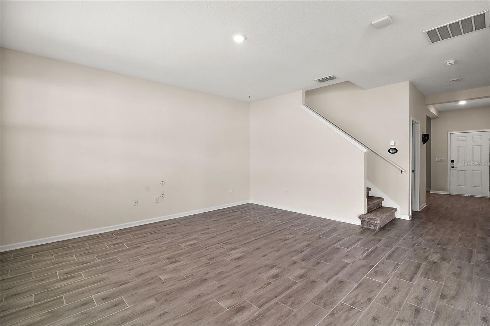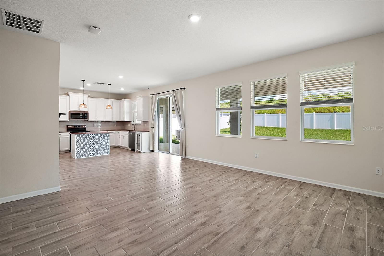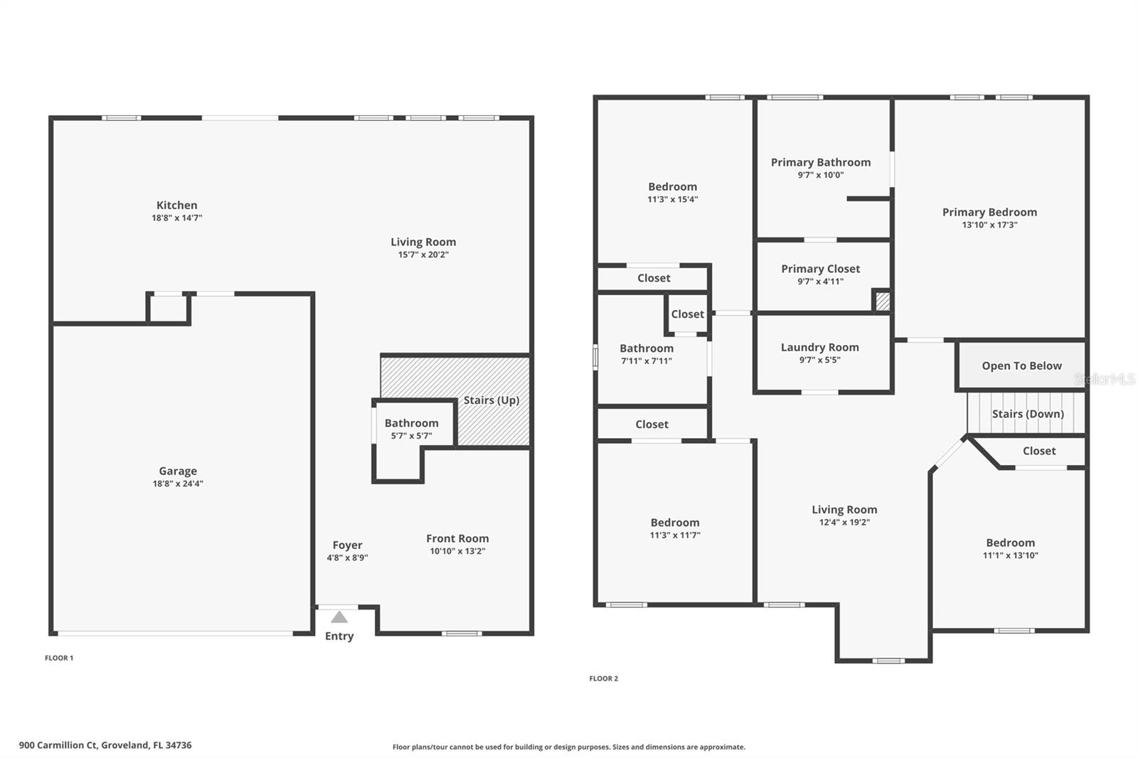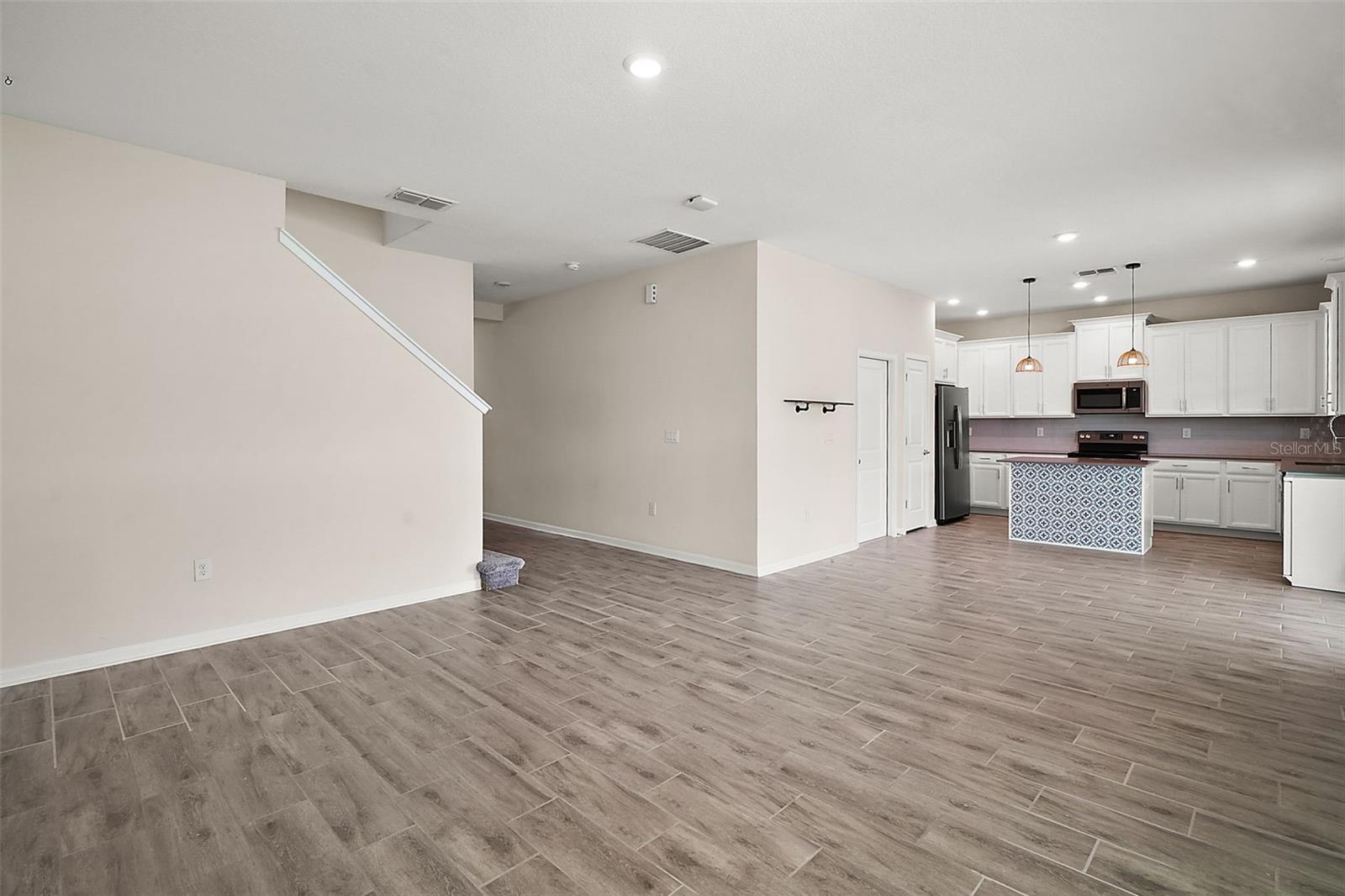This elegant Groveland residence offers spacious living with four bedrooms and three bathrooms. Upon entry, the first floor welcomes you with a seamless tile flow through the kitchen, family room, and living room. The kitchen is a chef's delight, featuring quartz countertops, stainless steel appliances, and stylish pendant lighting. A convenient half bath is also located on this level.Ascend the stairs to find a thoughtful layout designed for comfort. The primary suite is a true retreat, boasting a large walk-in closet for ample storage. The second floor also includes three additional bedrooms, a full bathroom, and a second living room, providing flexible space for relaxation or entertainment. The upstairs is finished with plush carpeting in the living areas and bedrooms, while the bathrooms and laundry room are adorned with tile flooring. This home offers a perfect blend of style, comfort, and practicality for a well-rounded living experience.