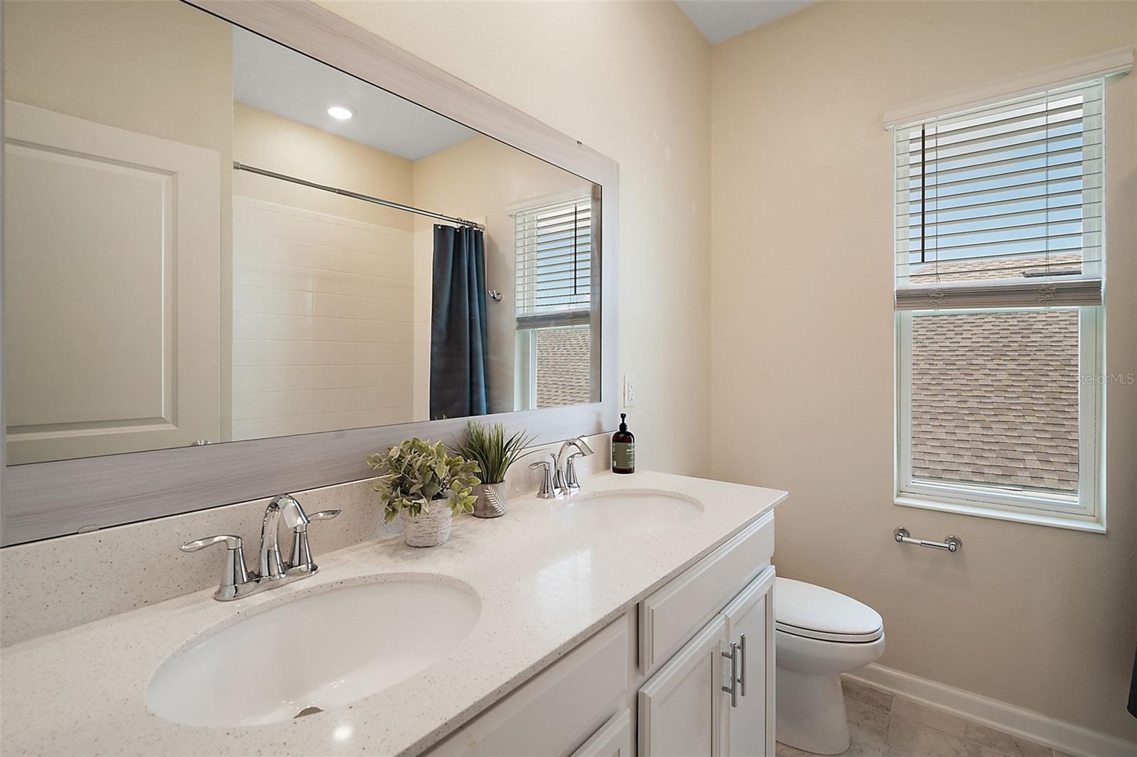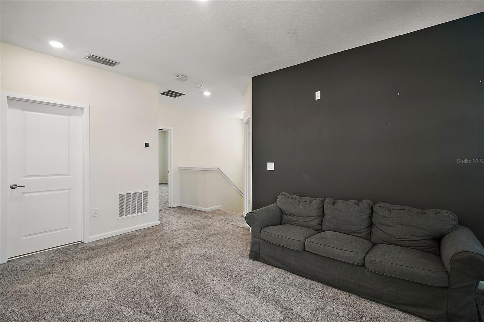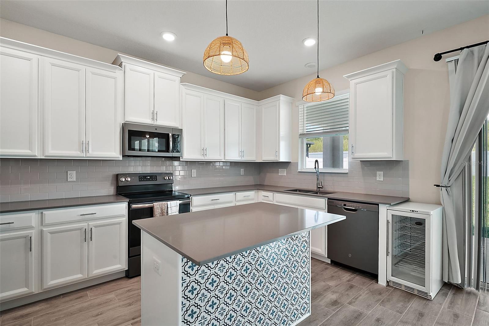 This elegant Groveland residence offers spacious living with four bedrooms and three bathrooms. Upon entry, the first floor welcomes you with a seamless tile flow through the kitchen, family room, and living room. The kitchen is a chef's delight, featuring quartz countertops, stainless steel appliances, and stylish pendant lighting. A convenient half bath is also located on this level.Ascend the stairs to find a thoughtful layout designed for comfort. The primary suite is a true retreat, boasting a large walk-in closet for ample storage. The second floor also includes three additional bedrooms, a full bathroom, and a second living room, providing flexible space for relaxation or entertainment. The upstairs is finished with plush carpeting in the living areas and bedrooms, while the bathrooms and laundry room are adorned with tile flooring. This home offers a perfect blend of style, comfort, and practicality for a well-rounded living experience.