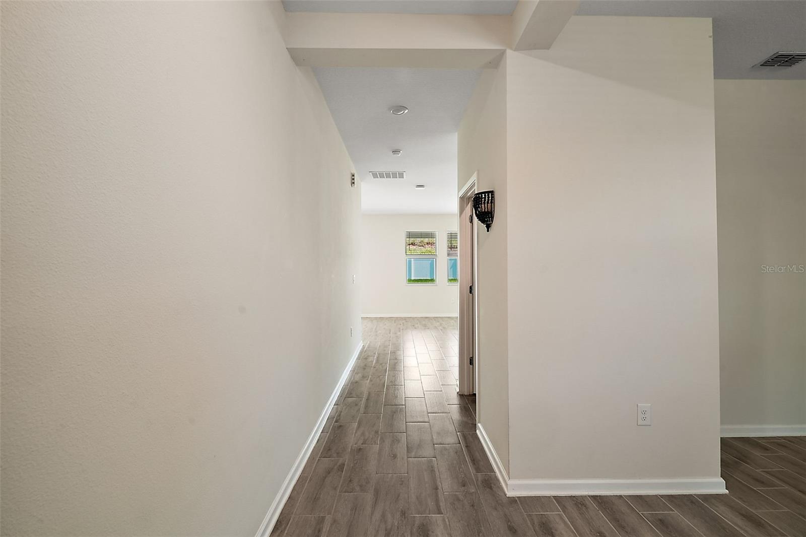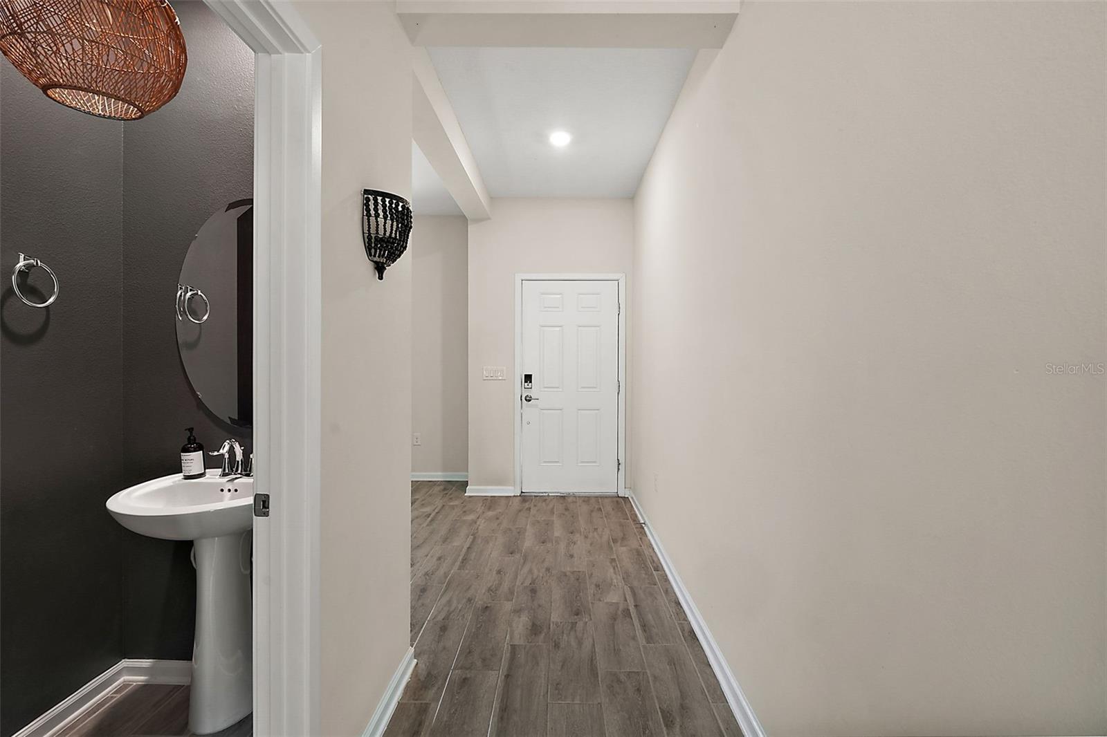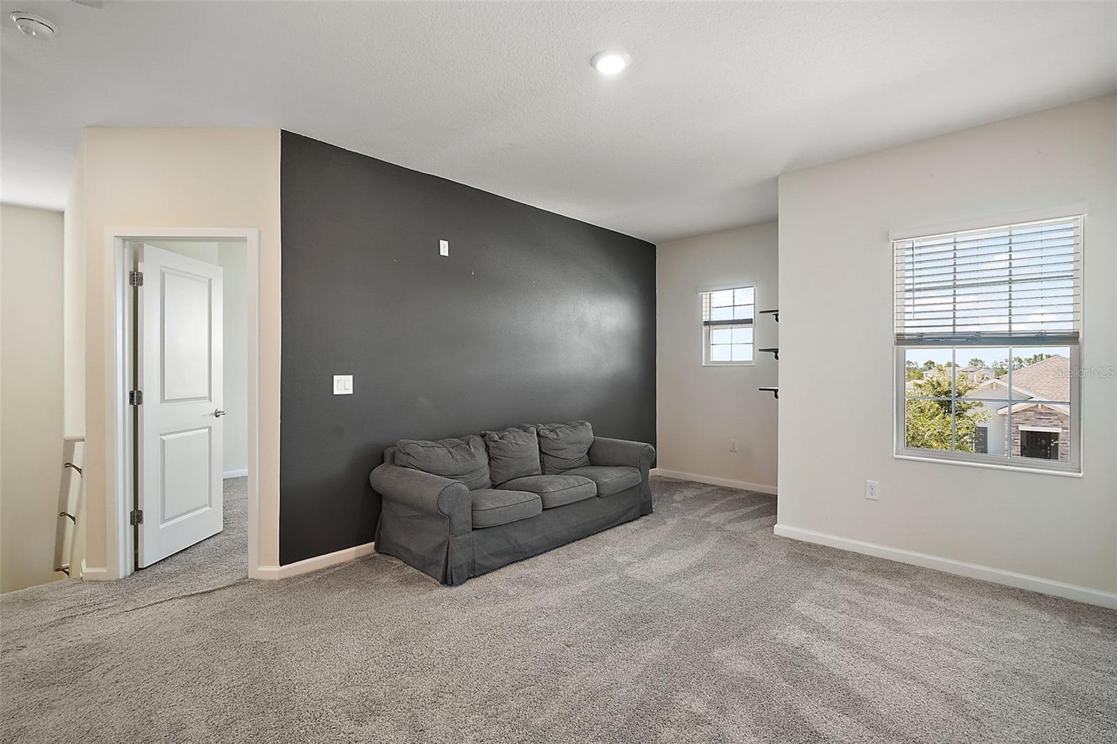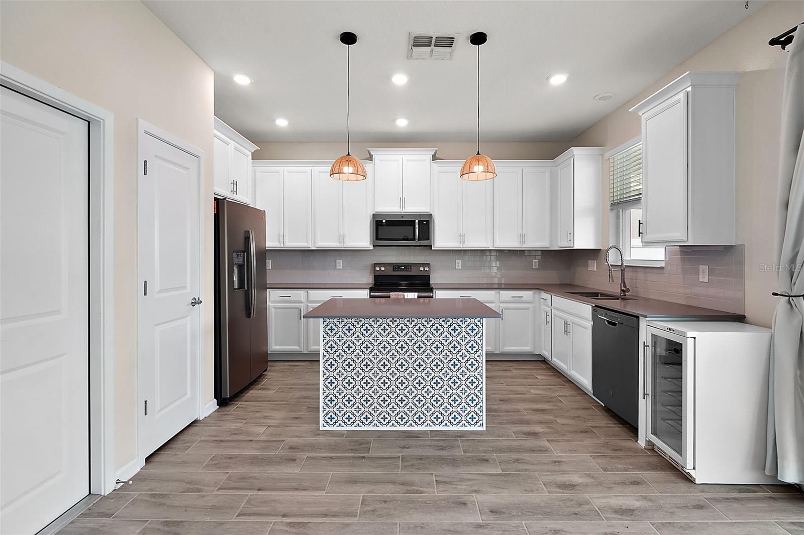 This elegant Groveland residence offers spacious living with four bedrooms and three bathrooms. Upon entry, the first floor welcomes you with a seamless tile flow through the kitchen, family room, and living room. The kitchen is a chef's delight, featuring quartz countertops, stainless steel appliances, and stylish pendant lighting. A convenient half bath is also located on this level.Ascend the stairs to find a thoughtful layout designed for comfort. The primary suite is a true retreat, boasting a large walk-in closet for ample storage. The second floor also includes three additional bedrooms, a full bathroom, and a second living room, providing flexible space for relaxation or entertainment. The upstairs is finished with plush carpeting in the living areas and bedrooms, while the bathrooms and laundry room are adorned with tile flooring. This home offers a perfect blend of style, comfort, and practicality for a well-rounded living experience.