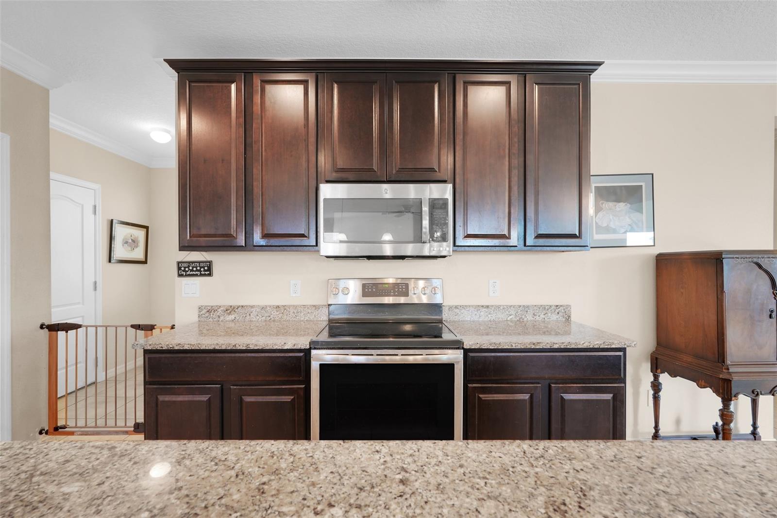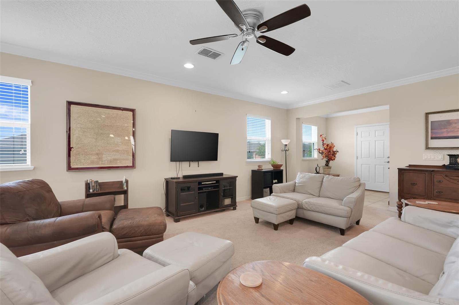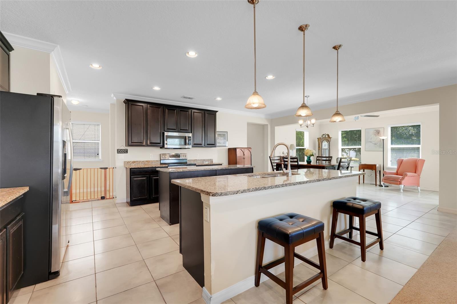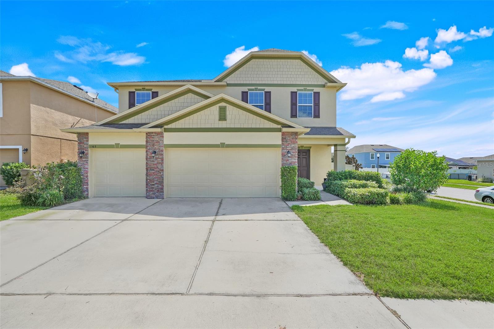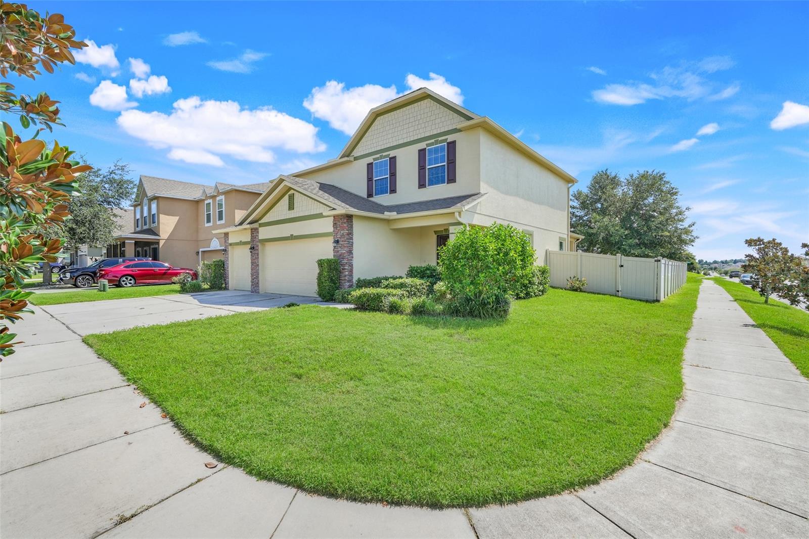 LARGE HOME ON A CORNER LOT. Welcome to a home that blends comfort, style, and plenty of space to enjoy life both inside and out. From the moment you arrive, the stone-accented front elevation and inviting curb appeal set the tone. Inside, you’ll find a large great room that flows into the sunroom and lanai—perfect for morning coffee, family time, or entertaining friends. The eat-in kitchen shines with 42" cabinets, solid surface countertops, and crown molding, while upgrades like extensive ceramic tile flooring and plush carpet make the home feel warm and welcoming. Upstairs, the bedrooms offer privacy and space. With the 3 car garage, you have enough for your vehicles and storage. Outside, the corner lot with a big fenced backyard gives you all the room you need to play, garden, or let the pets run free and the back patio is ready for relaxing evenings. And just steps away, you’ll love having a large park nearby—perfect for walks, picnics and has a dog park, all for enjoying Florida’s sunshine. This is a home that checks all the boxes—inside, outside, and in the neighborhood too. Close to the bike trail, schools and shopping.
