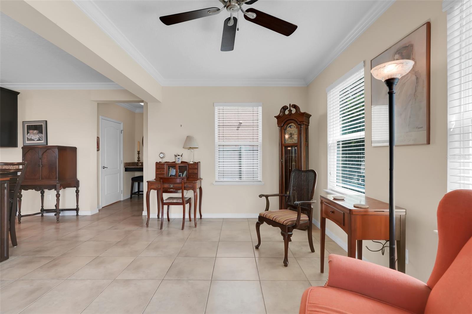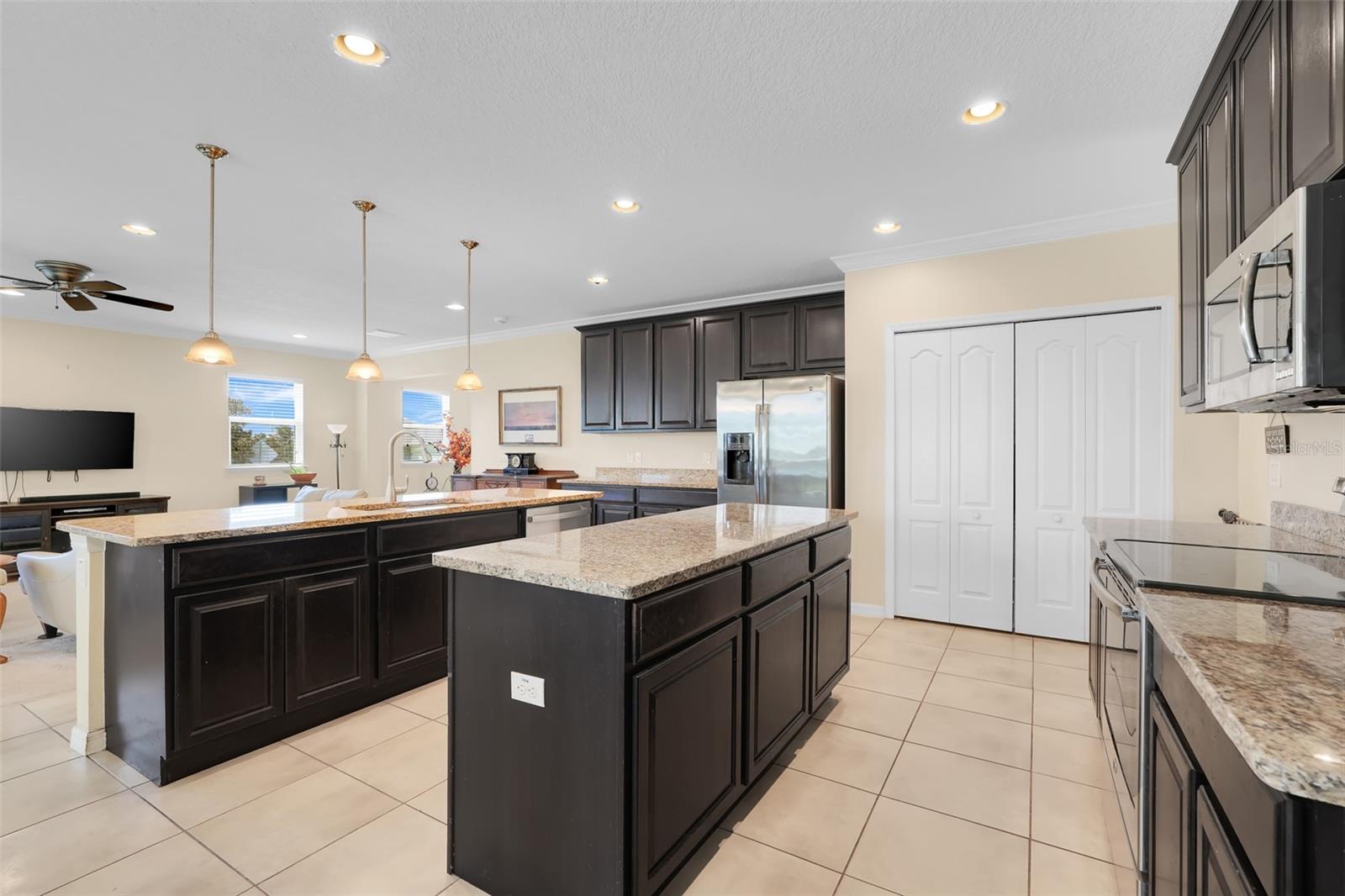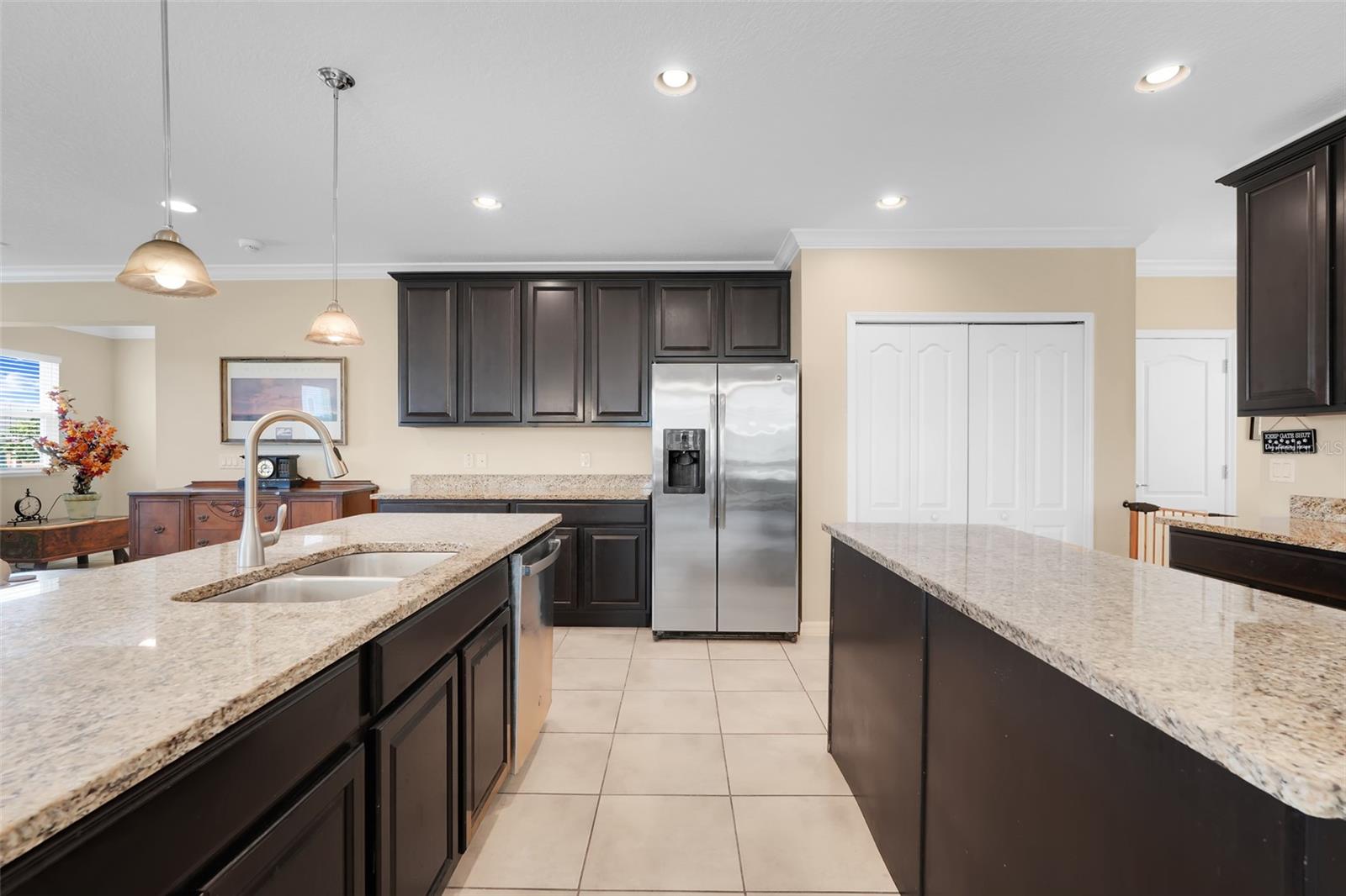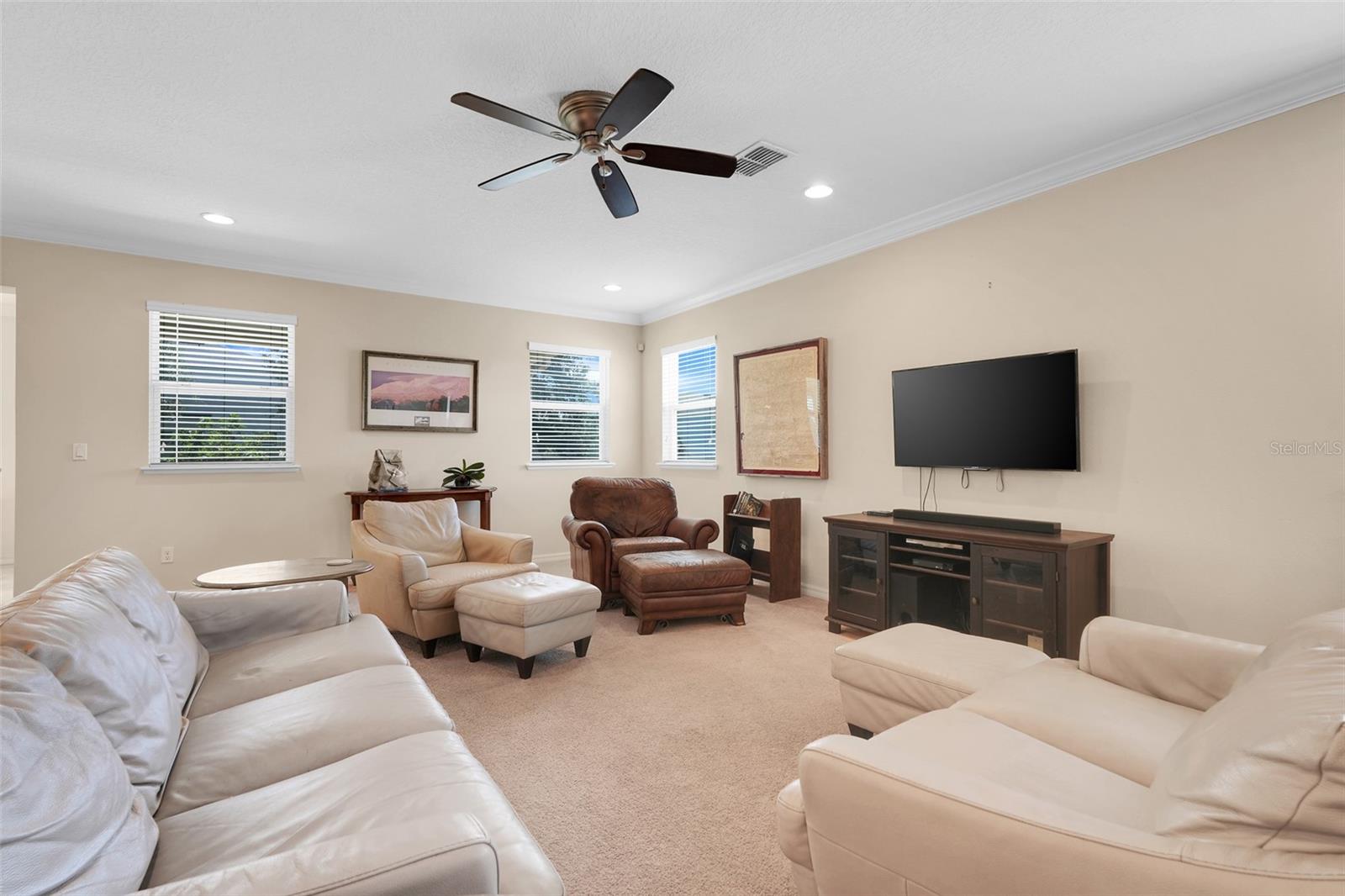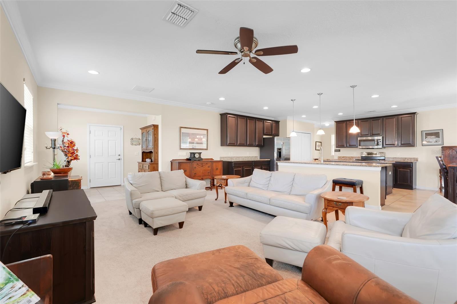 LARGE HOME ON A CORNER LOT. Welcome to a home that blends comfort, style, and plenty of space to enjoy life both inside and out. From the moment you arrive, the stone-accented front elevation and inviting curb appeal set the tone. Inside, you’ll find a large great room that flows into the sunroom and lanai—perfect for morning coffee, family time, or entertaining friends. The eat-in kitchen shines with 42" cabinets, solid surface countertops, and crown molding, while upgrades like extensive ceramic tile flooring and plush carpet make the home feel warm and welcoming. Upstairs, the bedrooms offer privacy and space. With the 3 car garage, you have enough for your vehicles and storage. Outside, the corner lot with a big fenced backyard gives you all the room you need to play, garden, or let the pets run free and the back patio is ready for relaxing evenings. And just steps away, you’ll love having a large park nearby—perfect for walks, picnics and has a dog park, all for enjoying Florida’s sunshine. This is a home that checks all the boxes—inside, outside, and in the neighborhood too. Close to the bike trail, schools and shopping.