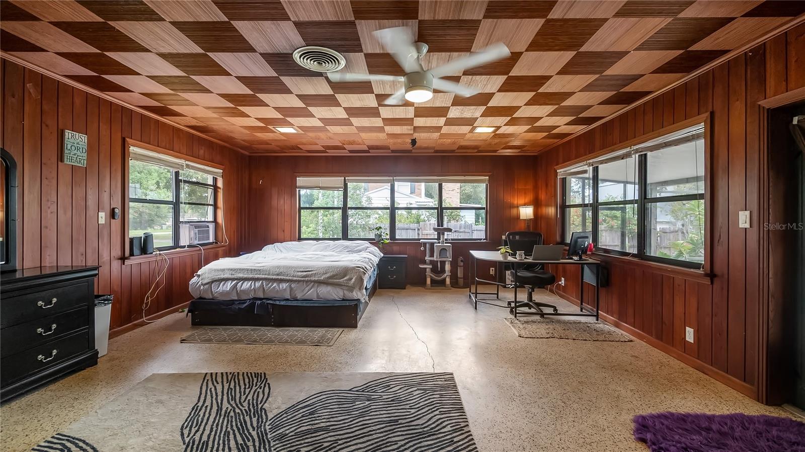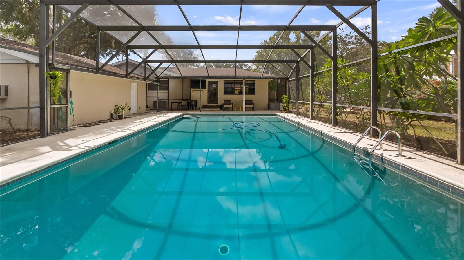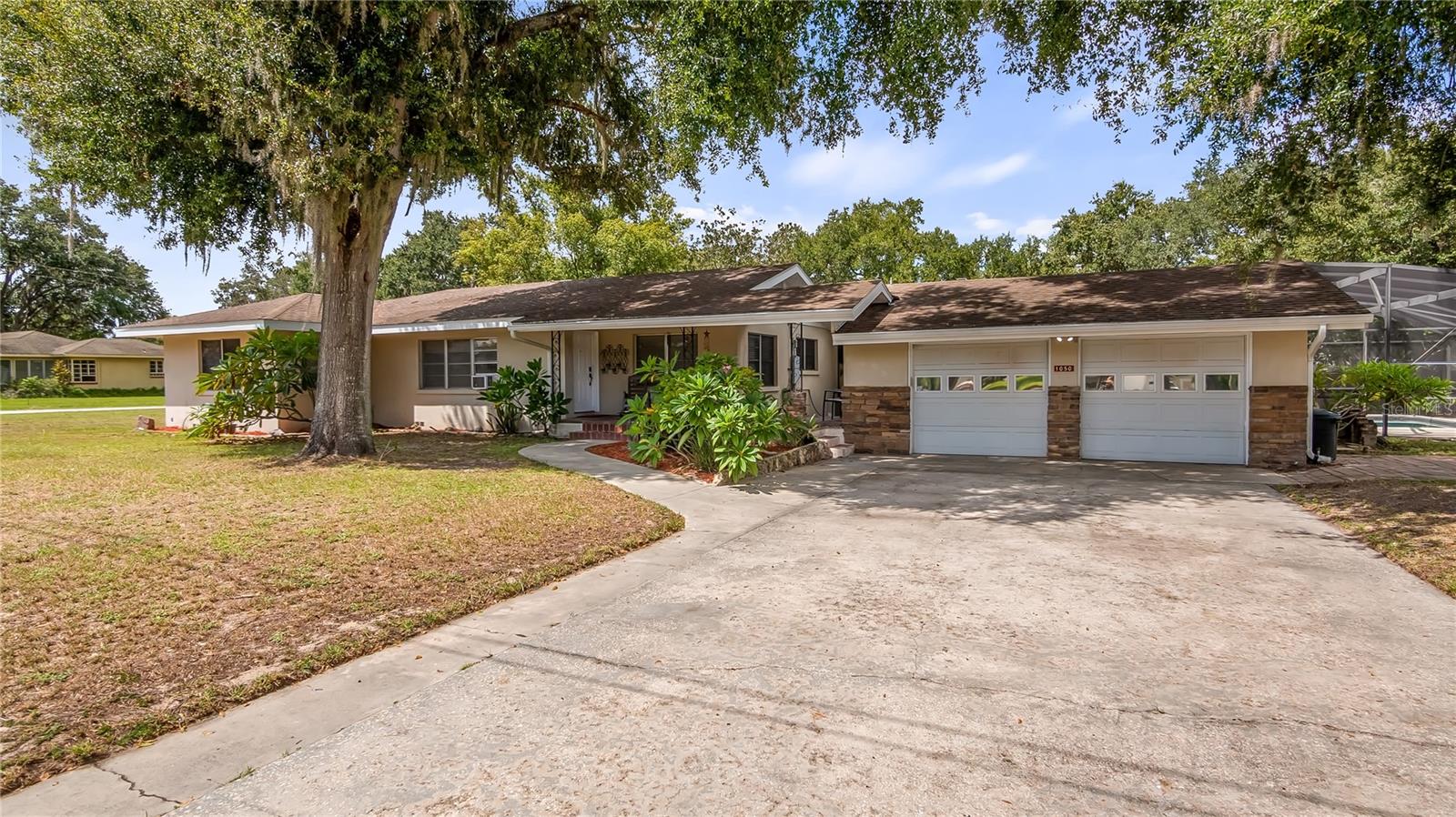 Who doesn’t want to live on Main St? And in a home with NO HOA!! PRICE IMPROVEMENT and seller is also offering $10,000 towards buyers closing costs!! This 3 bedroom 2 bathroom pool home has a detached two car garage and is located on a corner lot that is nearly 1/2 acre. Florida room currently being used as 4th bedroom. Plenty of room in this large block mid century home in downtown Groveland Florida. The original wood floors are throughout the home and other great MCM characteristics. Take a video walk through now via this link https://vimeo.com/1119625355 This home is also great for entertaining as you have a large living/dining/kitchen combo area, huge Florida room with stove, sink & bar area that lead out to your beautiful in ground pool that is fully screened in. The rear covered porch/pool & deck area is the best place to relax and take in the views. This huge yard has plenty of space to park the RV, boat, trailers and toys you have. You’re centrally located to all things needed. Can walk across the street to the ball field or a few blocks away to Lake David to enjoy the park, playground, splash pad, skatepark, boat ramp, dock and the festivities held there. Access to the Groveland or Clermont chain of lakes is just a few miles away. Book your private tour today!
