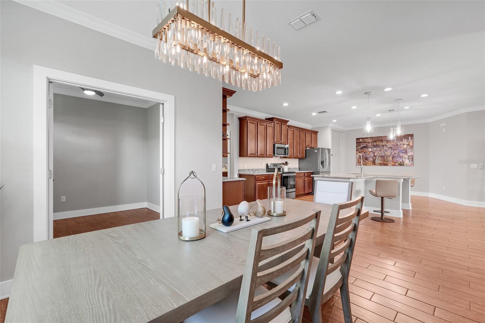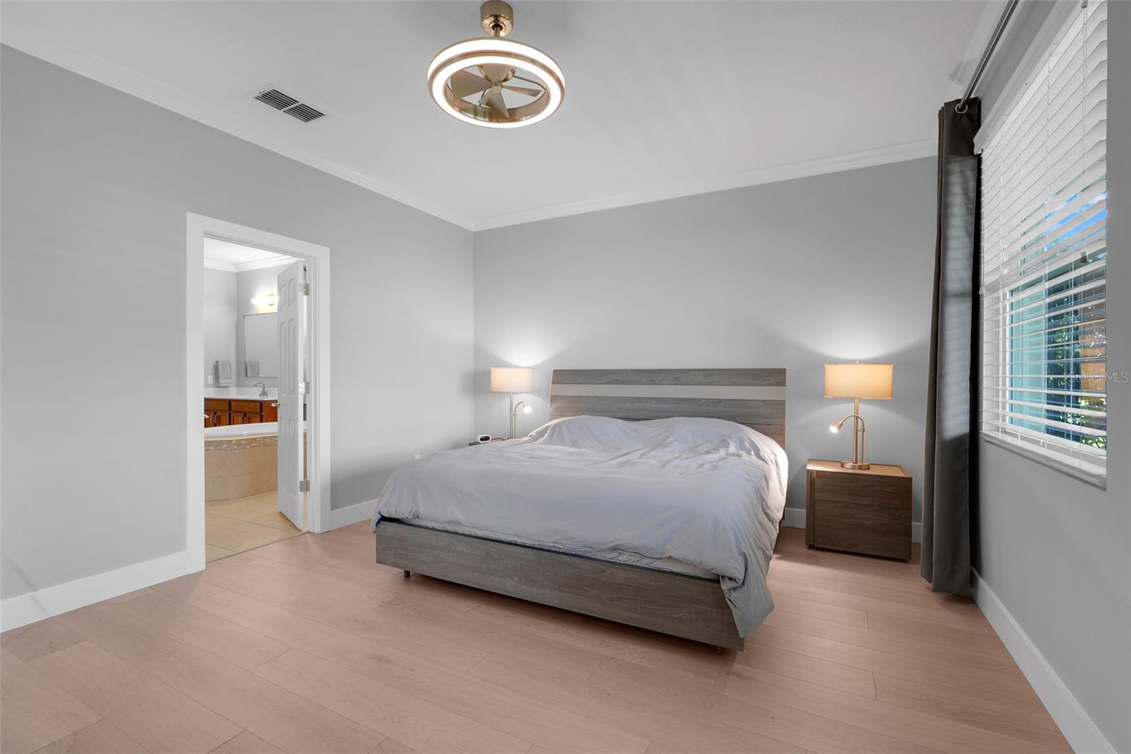 Welcome to this exceptional residence in the resort-style gated community of Waterside Pointe. Perfectly positioned on nearly half an acre (.46 acres) with expansive lake frontage, a rare find in this community. With over $60,000 in recent upgrades (2024), this home aims to please! All new light fixtures, crown molding, baseboards, exterior & interior paint (including ceilings), new screening, new faucet, new dryer, new hose valves, new vanity in the 2nd ensuite bathroom, new cabinet fixtures, and a high end motorized blind in the living room. Inside, a gracious entry introduces extended height ceilings, wood-like tile flooring, crown molding, 5.5 inch baseboards, and elegant lighting that sets the tone throughout. A relaxing sitting room greets you as soon you enter. A bright formal dining room flows seamlessly into the open living area, where a coffered ceiling and crown molding frame stunning views of the water. The gourmet kitchen features a large custom island with bar seating, 42-inch cabinetry topped with crown, granite countertops, and stainless-steel appliances, all designed with both function and style in mind. Sliding glass doors open to a 500 square foot screened lanai that extends the length of the home. Perfect for outdoor entertaining while overlooking the lake. The spacious primary suite enjoys lake views, luxury vinyl plank flooring, a chandelier fan, and a spa-inspired bath with dual vanities, garden tub, walk-in shower with rain shower head, and a generous walk-in closet. A secondary en suite bedroom is positioned on the opposite side of the home, ideal for guests or multi-generational living, while two additional bedrooms share a well-appointed bath with a tub-shower combo. This home is not located in a flood zone, so flood insurance is not needed! Waterside Pointe residents enjoy exclusive access to resort amenities including a clubhouse, resort-style pool, fitness center, tennis, basketball, pickleball, and a community boat ramp with canal access to the Clermont Chain of Lakes. With its expansive lot, refined finishes, and direct connection to lakefront living, this home offers the perfect blend of elegance, comfort, and lifestyle in one of Groveland’s most sought-after communities. Located just down the street from the Historic Downtown Shopping District where you'll also find dining, events, and night life. But that's not all! Waterfront Park Beach is also Downtown, including a boat ramp to launch your boat out on the Clermont Chain of Lakes. Don’t miss your opportunity to experience lakefront luxury in one of Groveland’s most prestigious communities. Call today to schedule your private showing.