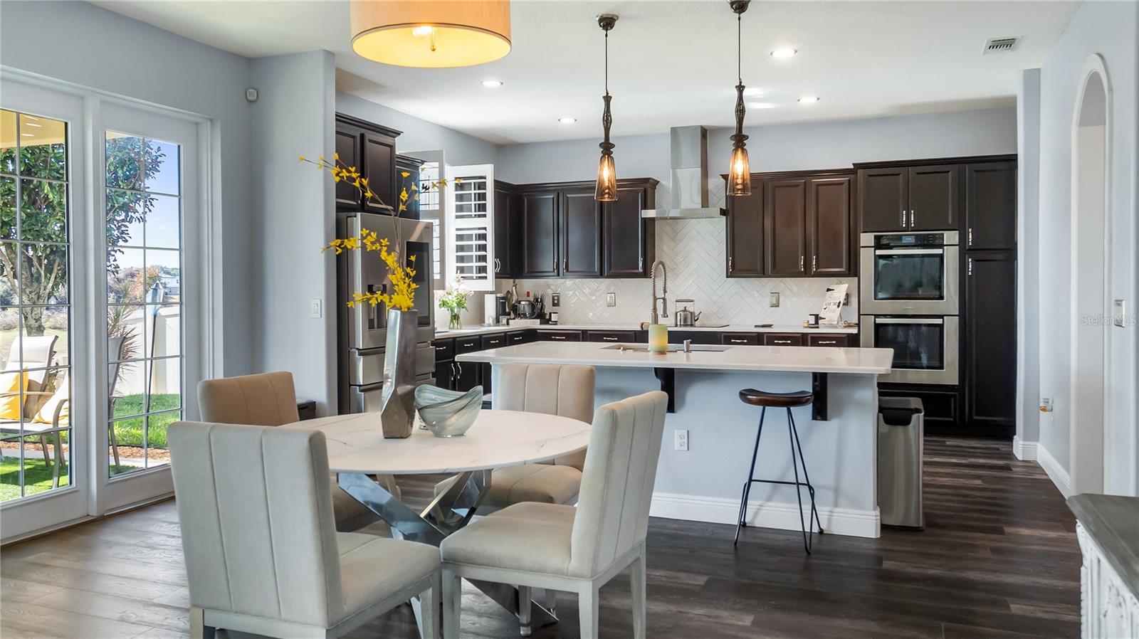 Nestled among the rolling hills of Lake County, this 3,854-square-foot residence at 736 Lake Douglas Drive in Groveland offers a serene blend of space, style and water views. Set against a tranquil conservation area with no rear neighbors, the home captures uninterrupted vistas of Lake Douglas, providing a quiet and private backyard retreat. The 5 bedroom, 4 bath home has been thoughtfully revitalized, with attention to both function and design. Inside, all-new flooring flows throughout the residence, and natural sunlight filters through elegant plantation shutters on every window. The dramatic two-story foyer with soaring ceilings welcomes you into a sunlit living room and formal dining room with multi-level windows that emphasize volume and light. The heart of the home is an expansive kitchen outfitted with quartz countertops, wood cabinetry, crown molding and stainless steel appliances, including a double-door smart refrigerator, dishwasher, microwave, disposal and a cooktop and built-in ovens. A large center island with sink doubles as a casual dining bar, and a walk-in pantry enhances the kitchen’s storage. The casual dining space between the kitchen and family room helps create an open, versatile layout ideal for both daily living and entertaining. A guest suite with a full bath on the main floor offers flexible living or a second primary option with the adjacent bathroom, ideal for multi-generational living, or a completely separate space from the other other bedrooms. Off the 3 car garage is a mudroom including a large storage room with shelving, perfect space for every day entry and possible uses. Upstairs, the oversized primary suite offers comfort and seclusion, featuring a newly remodeled bath with a glass-enclosed shower and striking tile detail, a separate commode room and a spacious walk-in closet. Two additional bedrooms share a Jack and Jill bath, while a fourth upstairs bedroom includes a private full bath. Utilize the huge bonus room that may serve as a playroom, study or media retreat. The laundry room, complete with high-capacity washer and dryer, provides added space and storage. Freshly painted interiors and garage, along with a sealed garage floor, elevate the move-in readiness of this residence. Outdoor living is enhanced by a covered porch overlooking the mature landscaping, gorgeous lawn, all overlooking the conservation and water. Located in a low-fee homeowners association community, this beautifully updated home offers a rare combination of privacy, space and panoramic views. Formal living and dining rooms, casual dining off the family room and a downstairs ensuite. Upstairs has the massive loft area, bedrooms, laundry. The 3 car garage is the final needed touch. Discover the comfort of thoughtful design and the calm of conservation surroundings in this extremely well maintained home with everything you need!