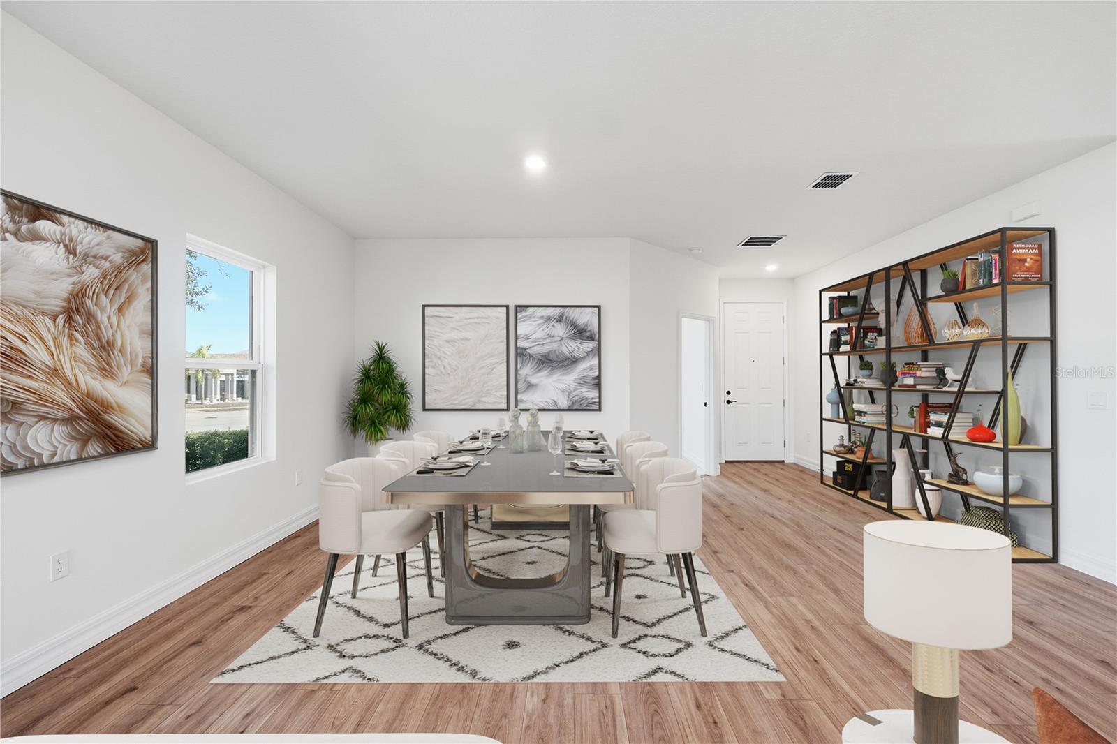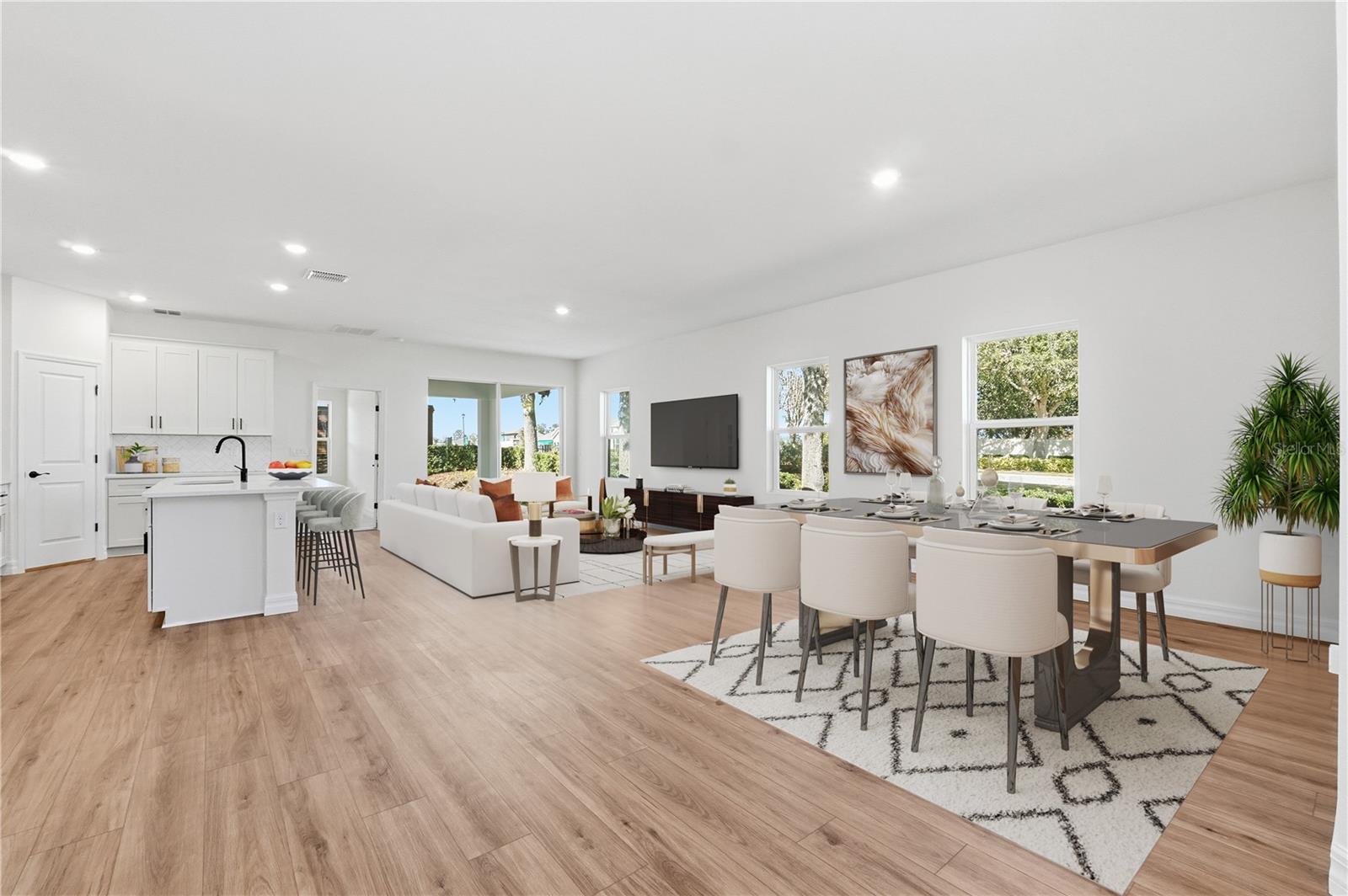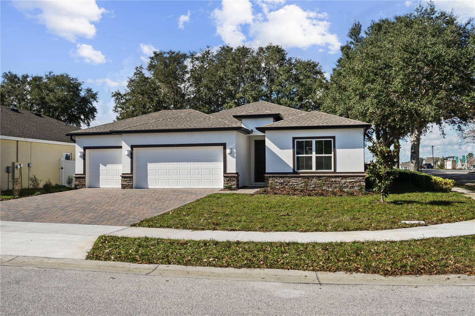 Why wait for new construction. Move in Ready custom home, that has it all. 4 bedrooms 3 baths with a 3 way split. Bedroom with private bath up front for your guests. 2 more bedrooms off of the kitchen with a bath. Primary bedroom is on its own side of the house. Beautiful coiffered ceiling, His and Hers walk-in closets. Double sinks with a walk in shower that has custom tile and niche for your toiletries. Luxury vinyl tile in the main living area and kitchen. The kitchen boosts 42 inch cabinets with crown molding and an Island with built in sink that overlooks the family room. Countertops are a beautiful custom quartz with herringbone backsplash. Brand new upgraded Samsung appliances including a refrigerator and Washer/Dryer. Open concept makes this the perfect family/entertaining home. Covered lanai overlooks the private backyard. This home sits on an oversized 70 foot wide corner lot with a 3 car garage. Custom stone accents the front of the home with pavered driveway and walkway. Sunrise Ridge is near shopping, restaurants and all major roads. Conveniently located near Disney and all of the major attractions that make Central Florida a great place to call home. All that is missing is YOU. This home qualifies for a limited-time lender-paid 2-1 buydown— reduced monthly payments for the first 2 years at no cost to the buyer or seller. Ask listing agent for details!