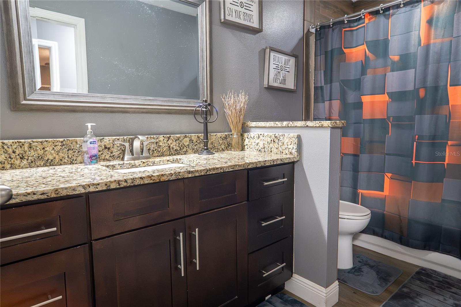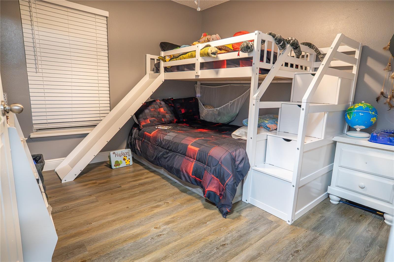 Welcome home to this beautifully updated 4-bedroom, 2-bath residence tucked into a quiet partial cul-de-sac. Luxury vinyl planking flows throughout the home, leading you into a stunning kitchen featuring soft-close espresso shaker cabinets, granite countertops, and a center island with stainless steel hood system. The newly installed dry bar enhances the kitchen and is equipped with a dedicated ice maker installed in May 2025, capable of producing up to 150 lbs of ice in 24 hours with 33-lb storage, complete with an ice bucket and scoop, perfect for entertaining or filling your small coolers! The stainless steel print-proof LG appliance package was installed in December 2024 and includes a side-by-side refrigerator with InstaView glass and Craft Ice™, smart electric range with fan convection, air fry and Easy Clean, plus dishwasher and microwave. Formal living and dining areas open seamlessly to the kitchen, creating an ideal layout for everyday living and entertaining. The family room in the back offers French doors with built-in blinds that lead to the backyard. Conveniently located off the kitchen, the spacious primary suite features a walk-in closet and a spa-inspired bath with dual sinks, soft-close espresso cabinetry, pantry-style storage, and a walk-in (small step) stone and tile shower complete with dual showerheads/waterfall feature, built-in shelf, and bench/seat. Step outside to enjoy the newly fenced (2025) backyard with white vinyl fencing, an L-shaped composite floating deck, fire pit, and two small garden boxes, perfect for relaxing or hosting guests. Major updates include a new roof (2021), AC replacement (2018), new water heater (2025), new fence (2025), new ice maker (2025), and all new appliances (December 2024). Community amenities include a pool and fenced park area, all just minutes from shopping and dining. No need to look any further... this is the one you’ve been waiting for.