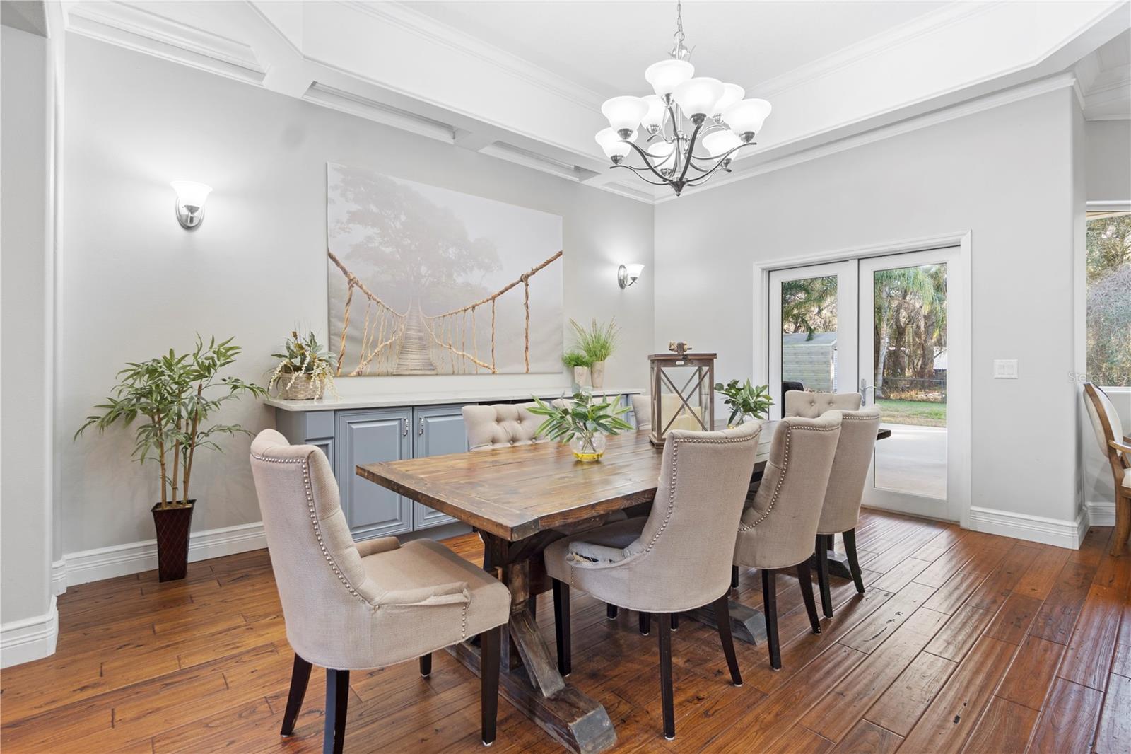 Beautiful custom-built single-family home, constructed in 2007, is situated on a 1-acre lot in Groveland, Florida. The residence offers 3,137 square feet of living space, featuring 3 bedrooms and 3.5 bathrooms. An oversized office provides additional flexible space, potentially serving as a fourth bedroom. The property includes a spacious second living area with a half bath, ideal for entertaining or relaxation. A gourmet kitchen with custom cabinetry, large island with seating, marble counter tops & coffered ceilings. The home is also equipped with a generator hook up for emergencies and an oversized garage. An extended back porch with fire pit is a great area for entertaining. Schedule a showing today & don't miss out.