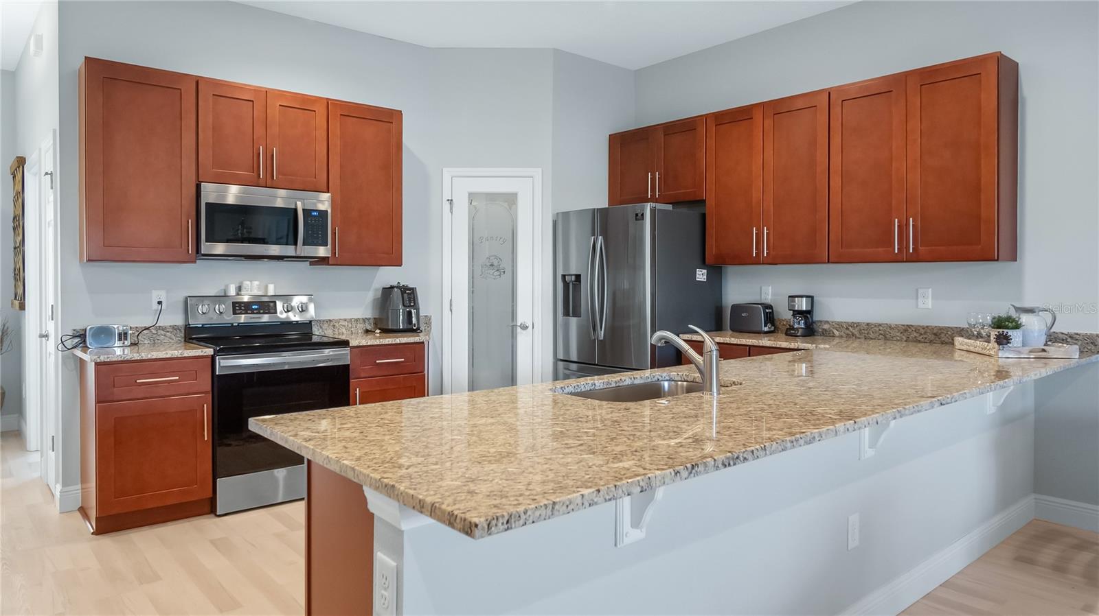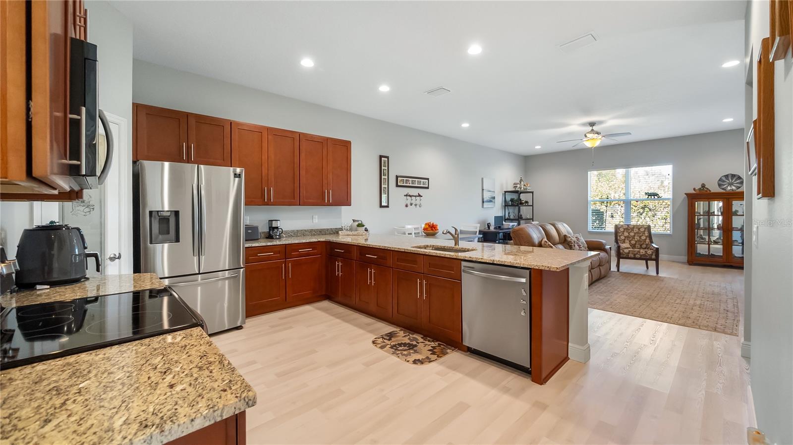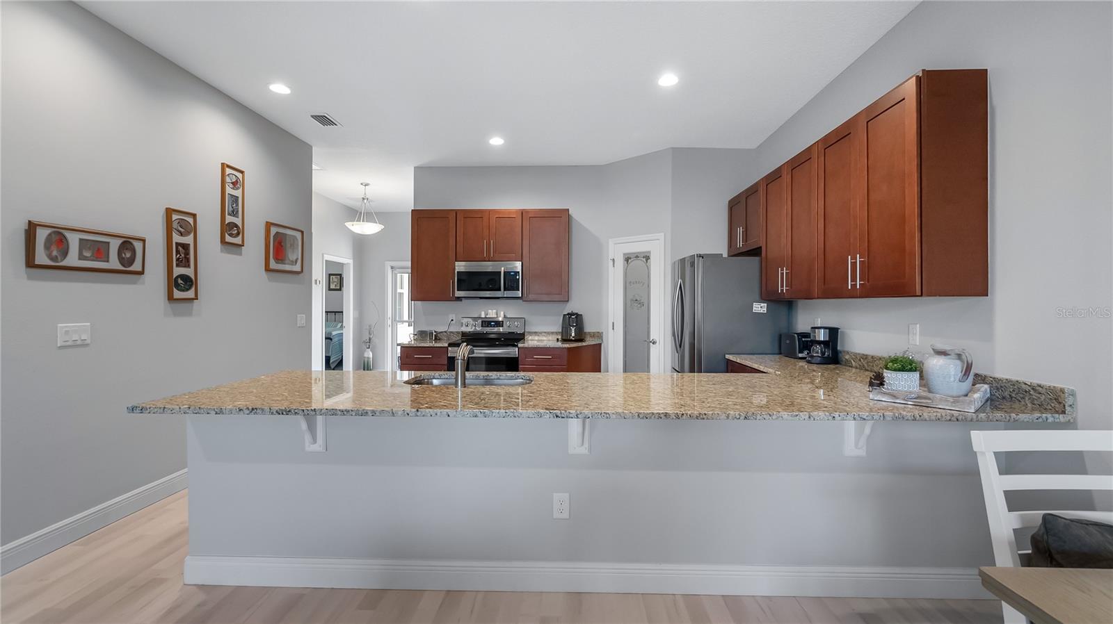Welcome to easy living in one of Clermont’s gated communities with private access to the sought-after Clermont Chain of Lakes. This beautifully maintained 3 bedroom, 2 bath villa offers 1,675 square feet of thoughtfully designed living space, a 2 car garage, and a screened rear porch overlooking peaceful conservation with no rear neighbors. Step inside to discover brand new luxury vinyl plank flooring in the great room, featuring versatile color tones that complement virtually any décor style and allow for multiple furniture configurations. There is truly no wasted space in this home. The open kitchen includes wood cabinetry, granite countertops, a generous pantry, and a breakfast bar perfect for casual dining or entertaining. The spacious primary suite offers two walk-in closets and a private bath with dual sinks, granite counters, and a large tiled shower with glass enclosure. The secondary bedrooms provide flexibility for guests or a home office, and the additional full bath also features granite countertops and a tub with glass enclosure. The inside laundry room includes the washer and dryer and is conveniently located, has 2 additional storage closets, and the garage includes extra storage space and an automatic door opener. Relax on the screened rear porch and take advantage of the paved patio for BBQs or sitting in the sun! One of the standout features of this community is direct access to the Clermont Chain of Lakes through the private community dock with common slip access. Spend the day boating on Lake Minneola and explore more than a dozen interconnected lakes perfect for fishing, kayaking, wakeboarding, waterskiing, or simply cruising. By boat, you can visit two popular waterfront restaurants right on the lake and a local marina known for weekend entertainment and food trucks, creating the perfect blend of recreation and social lifestyle. Residents also enjoy a community pool, gated entry, and an HOA that covers lawn maintenance and irrigation water, basic cable and internet, exterior repainting, gate and road maintenance, as well as pool and lake access. The South Lake Trail is just moments away for walking and biking, and Green Valley Country Club sits conveniently across the street for golf enthusiasts. Shopping, dining, and everyday conveniences are just minutes away, with downtown Clermont continuing to grow with waterfront dining, breweries, farmers markets, and regular events. The location is exceptional. Just minutes from growing downtown Clermont, you’ll enjoy waterfront dining, breweries, farmers markets, concerts, festivals, and community events throughout the year. Easy access to major roadways including Highway 50, the Florida Turnpike, and surrounding connectors makes commuting to Orlando, area attractions, or the airport simple and convenient. Whether you are looking for a full-time residence or a second home to escape the snow and cold, this property offers the perfect Florida retreat with an active waterfront lifestyle and low-maintenance living. Schedule your private showing and experience it in person.