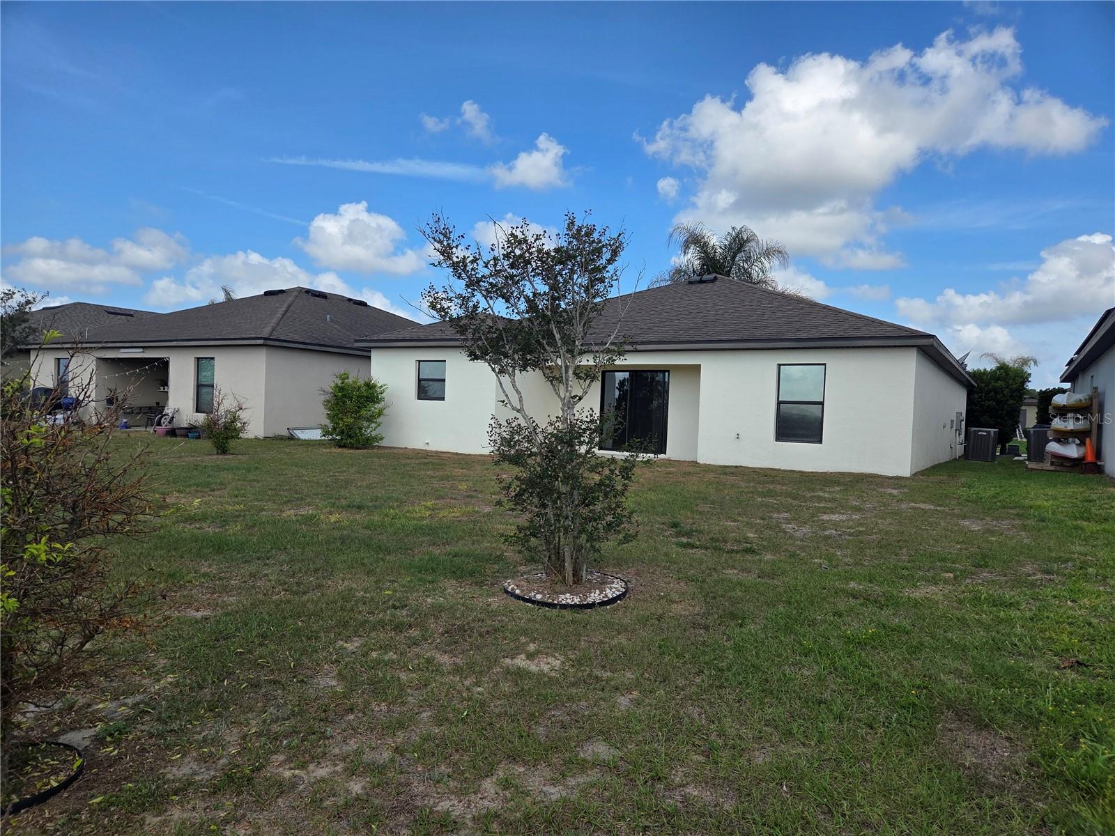 3/2 Split Bedroom home is located in Crestridge at Cherry Lake Estates. Open floor plan includes large living/dining room combo leading to the Kitchen with lots of cabinets, plenty of counter space and closet pantry. Luxury marble look vinyl flooring throughout. Primary bath has walk in shower and huge walk in closet. Sliding glass doors off living room lead to the backyard with beautiful views where you can see the Disney fireworks at night. Inside laundry room with shelving and front loading washer/dryer conveys. Standard 2 car garage with overhead opener & remotes. The attic has both an Attic Fan and a Foil Radiant Barrier for energy efficiency. The Community Playground and mailboxes are across the street.