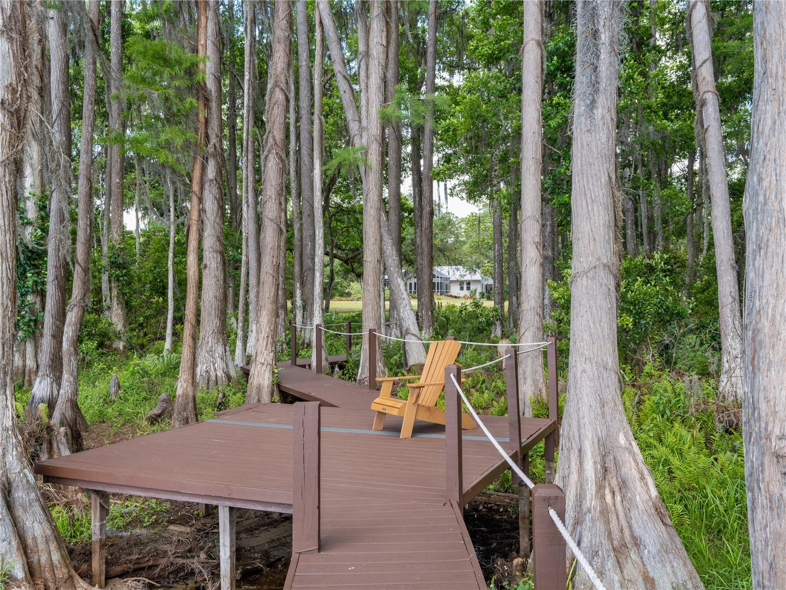 Set on 7.25 extraordinary acres with direct frontage on Lake Erie, a private 140 acre ski lake with no public access, this remarkable estate offers an exceptional blend of seclusion, natural beauty, and refined comfort. From the moment you arrive, the setting unfolds with a quiet elegance, where granddaddy oaks, native Florida landscaping, and thoughtfully restored habitat create a sanctuary rich with wildlife including deer, sandhill cranes, owls, and a variety of birds. At the water’s edge, your private dock extends gracefully over the lake, offering an idyllic place to begin the day with sunrise views filtering through cypress trees and to unwind in the evening as nature settles in around you. Whether paddling across calm waters, enjoying skiing, or casting a line, the lake itself becomes an extension of daily living. The main residence, offering just under 2400 square feet, is designed to celebrate its surroundings. The great room is truly captivating, defined by soaring 15 foot vaulted ceilings, exposed wood beams, and a dramatic wall of glass that frames the pool, grounds, and lake beyond. Light fills the space while the home’s thoughtful positioning welcomes in gentle breezes, creating a naturally comfortable and inviting atmosphere. The kitchen is both elegant and functional, appointed with granite countertops, extensive cabinetry, and stainless steel appliances. It opens seamlessly to the main living area, allowing for effortless entertaining or quiet moments with a view. The bedrooms are notably spacious, providing comfort and flexibility for both residents and guests. Outdoors, the screened pool area offers a private retreat surrounded by lush greenery, creating a peaceful setting for relaxation or gathering. The property continues to impress with a fenced dog run, a generous organic garden space, and ample room without HOA restrictions on your boats, RVs, or equipment. An oversized 24 by 24 two car garage provides excellent storage and workspace. Meander in the well designed walkways through all natural to Florida plants and shrubs that provide an idyllic refuge for birds, butterflies and other wildlife. A fully private in law suite enhances the versatility of the estate, complete with its own bedroom, bathroom, full kitchen, and washer dryer hookups. With additional space for living, working, or creative pursuits, it serves beautifully as a guest residence, home office, or independent living space. Constructed with an emphasis on efficiency and longevity, the home features a metal roof, insowalls, and Icynene spray in insulation. Every element reflects a careful balance of sustainability and enduring quality. Ideally located along Dr. Baker Road, the property adjoins the Lake County Pasture Reserve, offering over 800 acres of scenic trails for riding and hiking, and sits just minutes from the Van Fleet Trail. Despite its sense of privacy and retreat, the location provides convenient access to Orlando, Tampa, and surrounding areas, with shopping, dining, and daily essentials within easy reach. This is a property of rare character and quiet sophistication, where refined living and the beauty of nature exist in perfect harmony.