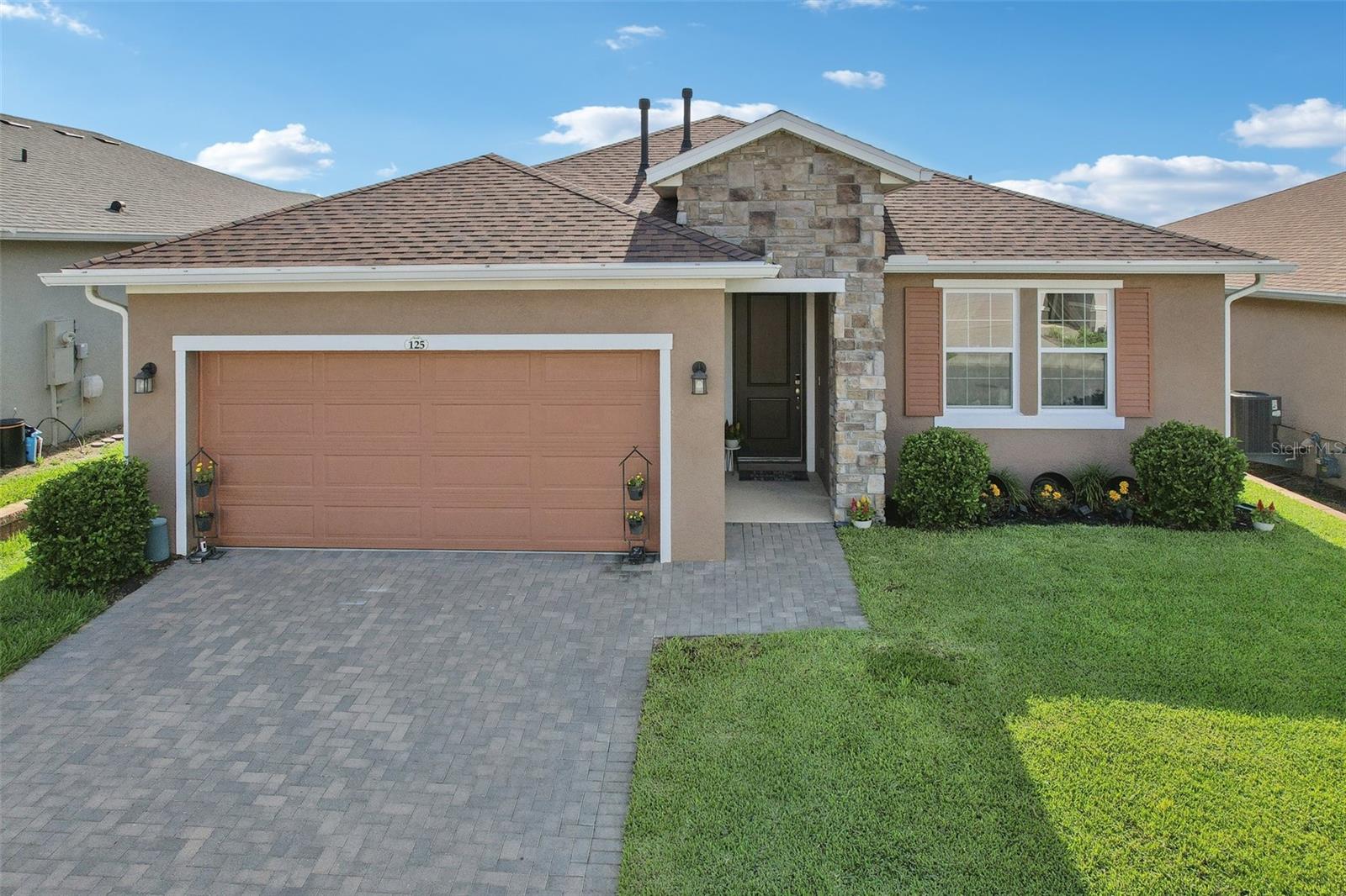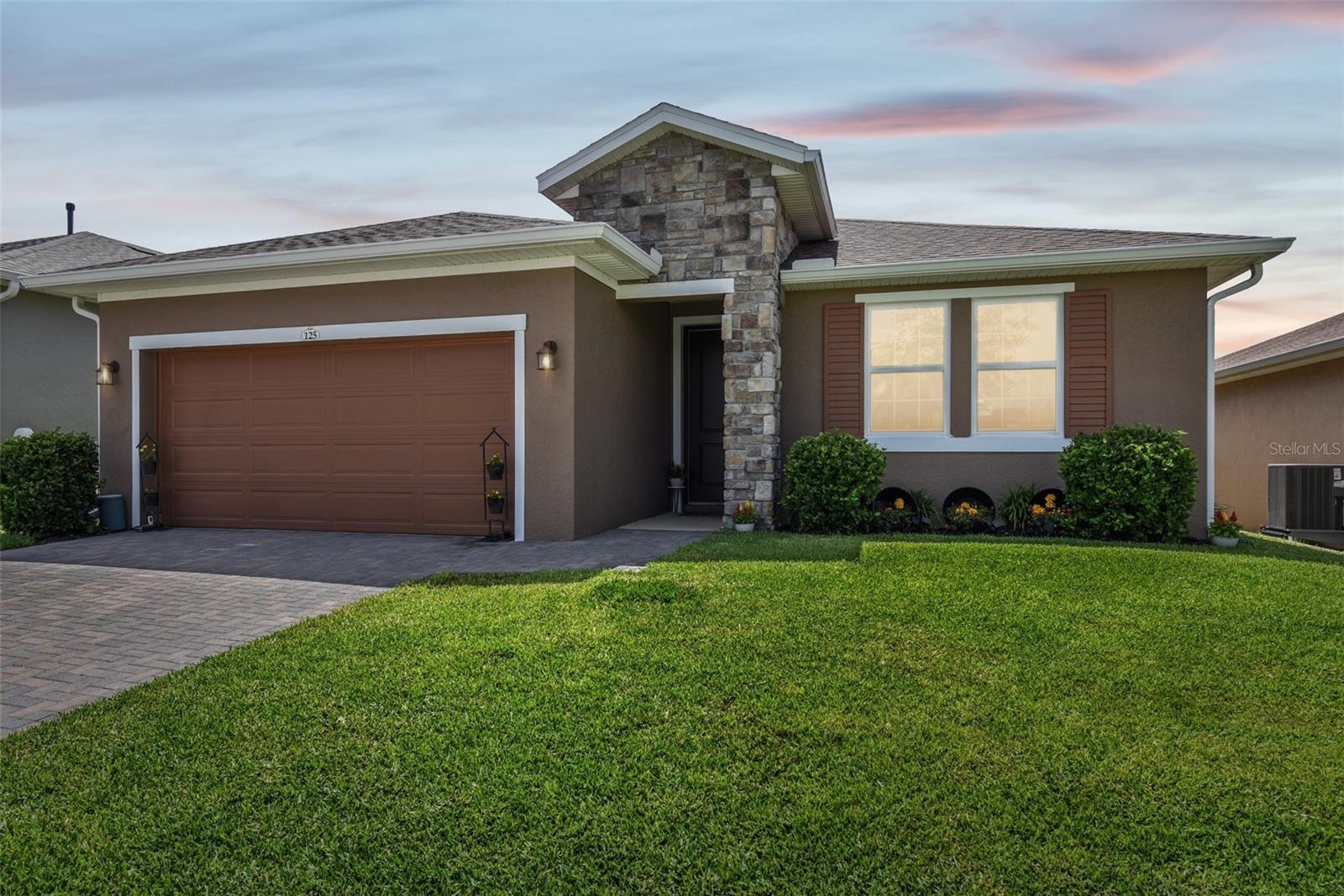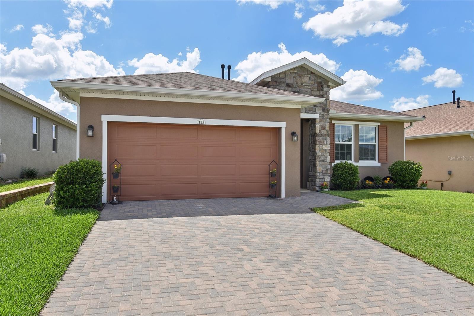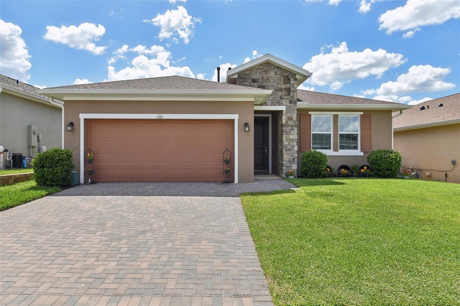 Priced to sell! Welcome home to this well cared for gem! Nestled in the heart of Groveland's Trilogy neighborhood, a gated 55+ active community. This immaculate residence boasts 3 spacious bedrooms and 2 pristine bathrooms, offering the perfect blend of comfort and modern living.The popular Affirm floor plan offers flexibility with the option of the 3rd bedroom being an office, flex room, or anything you desire as it is has a newly installed barn door for privacy. The curb appeal of this home is impressive offering beautiful mature landscaping, stacked stone pillars and a brick paver driveway. The morning sun shines through the plentiful double-paned windows bringing in plenty of natural light with energy efficiency. As you step inside thru the impressive 8' door, you'll be greeted by a bright and open floor plan, a blank canvas ready for your personal touch. The chef of the house will appreciate everything the kitchen has to offer. Sleek granite counters adorn the cherry all-wood cabinets with lighting and accent molding. The immense island and cabinet space is ideal with lots of storage and overlooks the the rest of the space, including the back yard! The kitchen is also equipped with a gas stove, stainless appliances and plenty of pantry space. The rest of the living space is wide open and flexible to your entertaining needs. You have space for a very large dining table or the flexibility to keep the living space blended and wide open. The master suite is a true retreat, and overlooks the back yard. It's completed with an ensuite bathroom for added privacy featuring dual sinks, and a large walk-in closet. Two additional bedrooms provide plenty of space for family, guests, or a home office. Generous sliding doors lead you outside from the main living space where the ample yard is wide open to enjoy the Florida sun, let your fur babies run around or maybe plant a garden. You have a covered lanai to enjoy and is fully fenced for privacy and comfort. Don't forget about the double garage space for your vehicle, golf cart and storage/workbench. Come see this beautiful 4 year old home that gives you the peace of mind, comfort and plenty of room that you've been searching for. The HOA fee includes cable TV, internet, home phone, security monitoring, lawn and shrub maintenance. You are sure to find plenty to do as you drive up to the 57,000-square-foot clubhouse with a restaurant, bar, fitness center, hot tubs, luxurious indoor/outdoor community pool, tennis, pickleball, bocce, demonstration kitchen, art studio, walking trail and numerous other amenities. For those interested in this 55+ community, please be aware the community has not reached the max 20% of residents under 55 permitted. The community allows residents between the ages of 45 to 54. Absolutely no one under the age of 18 may live in the home. Don't miss the opportunity to make 125 Silver Maple Rd your new home. Schedule a showing today and imagine the possibilities! Some furniture is available for purchase. Your offers are welcomed.