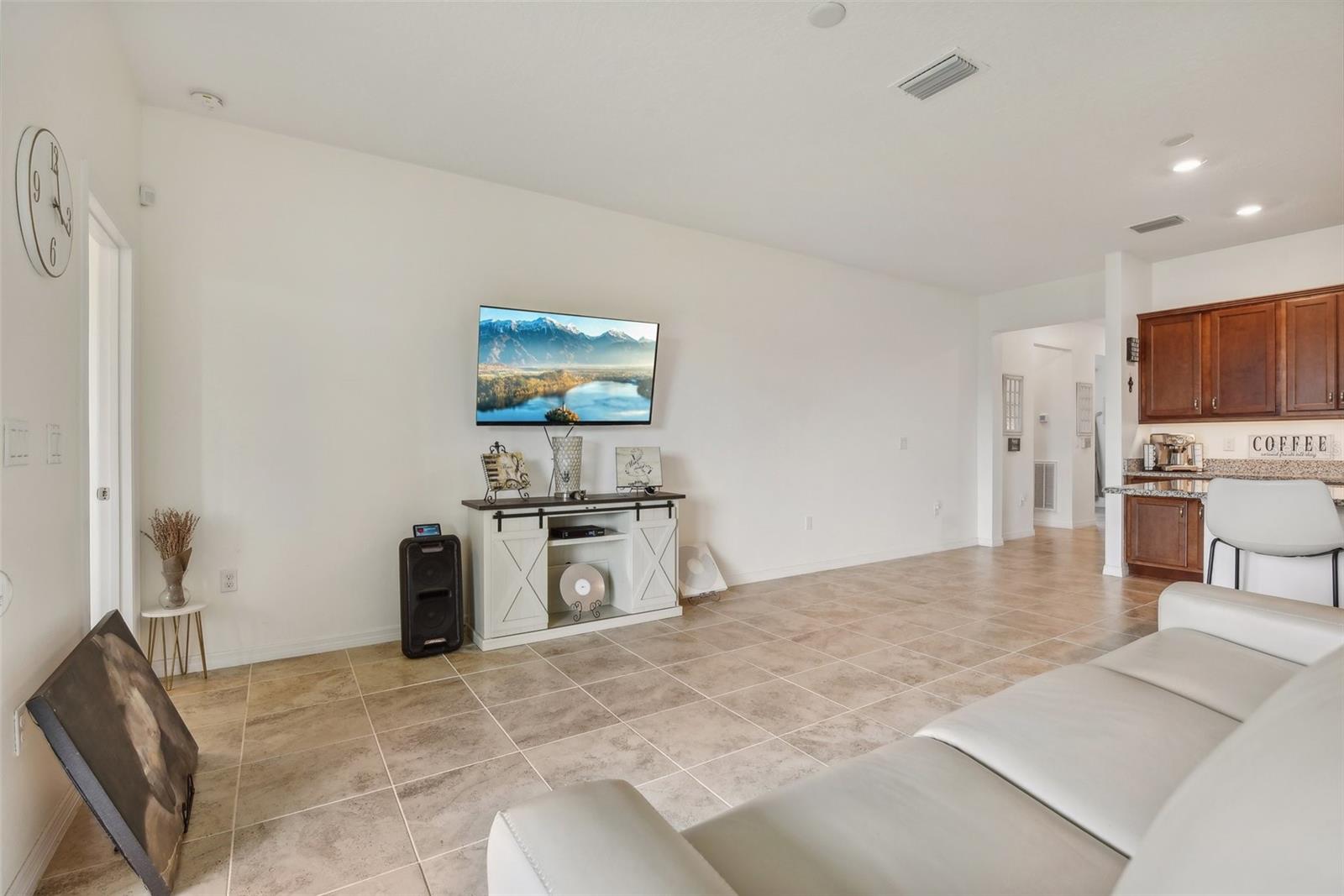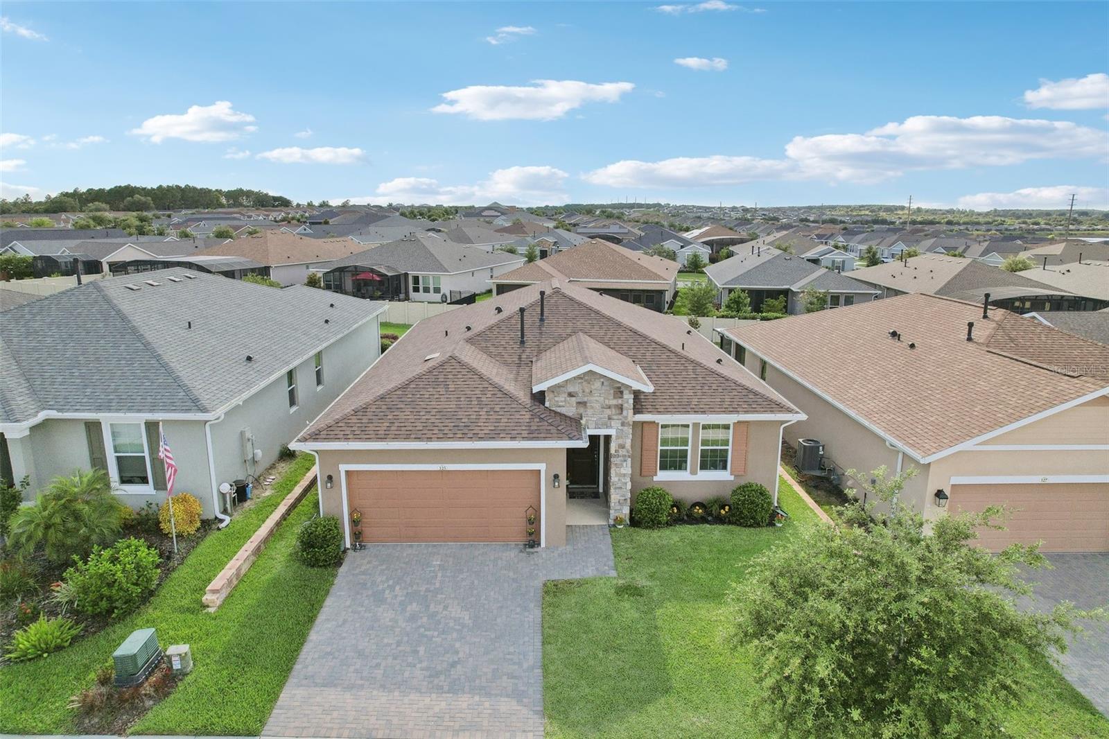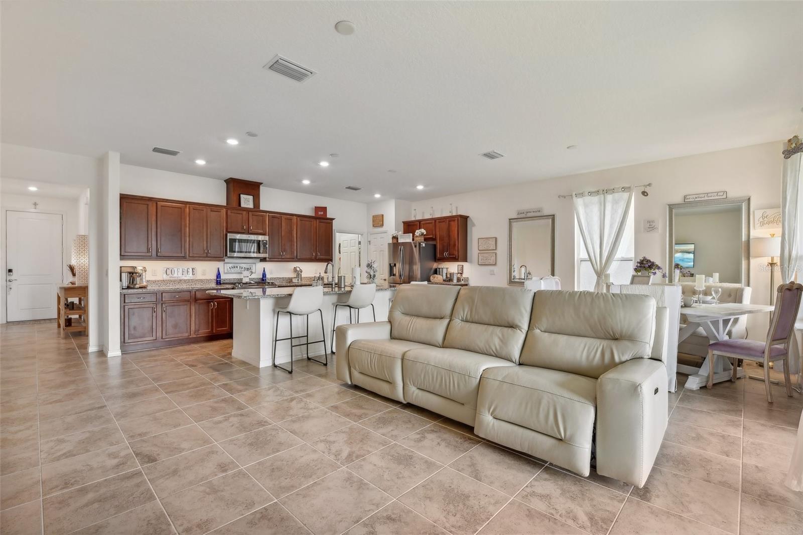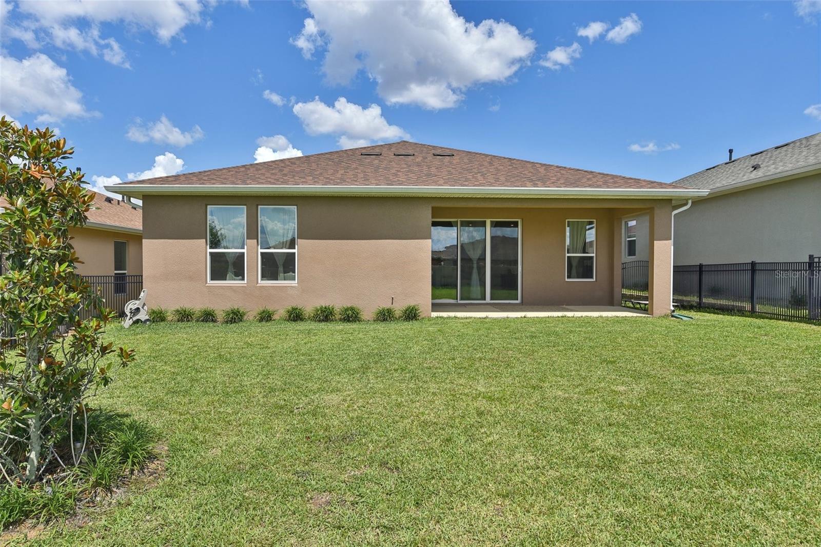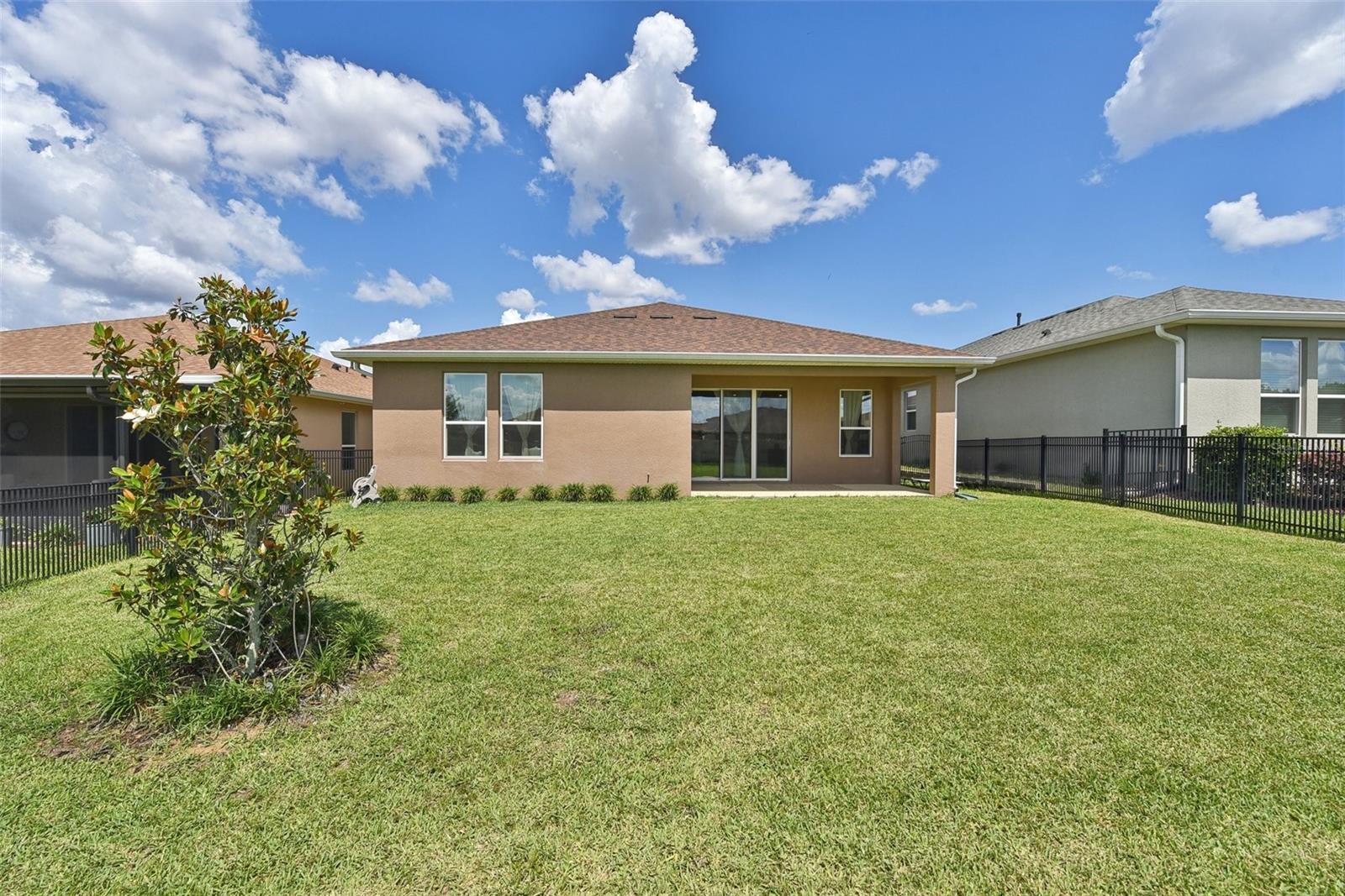 Priced to sell! Welcome home to this well cared for gem! Nestled in the heart of Groveland's Trilogy neighborhood, a gated 55+ active community. This immaculate residence boasts 3 spacious bedrooms and 2 pristine bathrooms, offering the perfect blend of comfort and modern living.The popular Affirm floor plan offers flexibility with the option of the 3rd bedroom being an office, flex room, or anything you desire as it is has a newly installed barn door for privacy. The curb appeal of this home is impressive offering beautiful mature landscaping, stacked stone pillars and a brick paver driveway. The morning sun shines through the plentiful double-paned windows bringing in plenty of natural light with energy efficiency. As you step inside thru the impressive 8' door, you'll be greeted by a bright and open floor plan, a blank canvas ready for your personal touch. The chef of the house will appreciate everything the kitchen has to offer. Sleek granite counters adorn the cherry all-wood cabinets with lighting and accent molding. The immense island and cabinet space is ideal with lots of storage and overlooks the the rest of the space, including the back yard! The kitchen is also equipped with a gas stove, stainless appliances and plenty of pantry space. The rest of the living space is wide open and flexible to your entertaining needs. You have space for a very large dining table or the flexibility to keep the living space blended and wide open. The master suite is a true retreat, and overlooks the back yard. It's completed with an ensuite bathroom for added privacy featuring dual sinks, and a large walk-in closet. Two additional bedrooms provide plenty of space for family, guests, or a home office. Generous sliding doors lead you outside from the main living space where the ample yard is wide open to enjoy the Florida sun, let your fur babies run around or maybe plant a garden. You have a covered lanai to enjoy and is fully fenced for privacy and comfort. Don't forget about the double garage space for your vehicle, golf cart and storage/workbench. Come see this beautiful 4 year old home that gives you the peace of mind, comfort and plenty of room that you've been searching for. The HOA fee includes cable TV, internet, home phone, security monitoring, lawn and shrub maintenance. You are sure to find plenty to do as you drive up to the 57,000-square-foot clubhouse with a restaurant, bar, fitness center, hot tubs, luxurious indoor/outdoor community pool, tennis, pickleball, bocce, demonstration kitchen, art studio, walking trail and numerous other amenities. For those interested in this 55+ community, please be aware the community has not reached the max 20% of residents under 55 permitted. The community allows residents between the ages of 45 to 54. Absolutely no one under the age of 18 may live in the home. Don't miss the opportunity to make 125 Silver Maple Rd your new home. Schedule a showing today and imagine the possibilities! Some furniture is available for purchase. Your offers are welcomed.