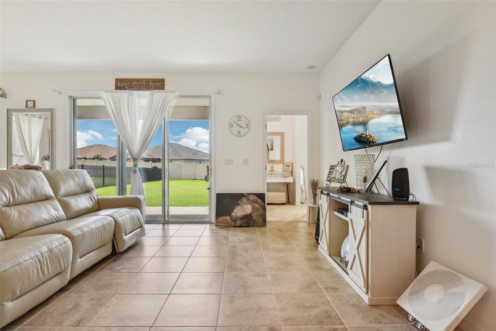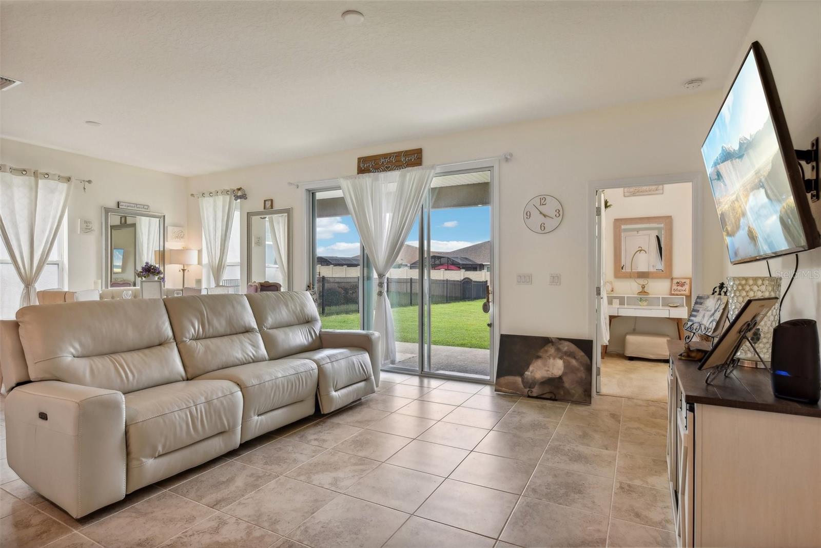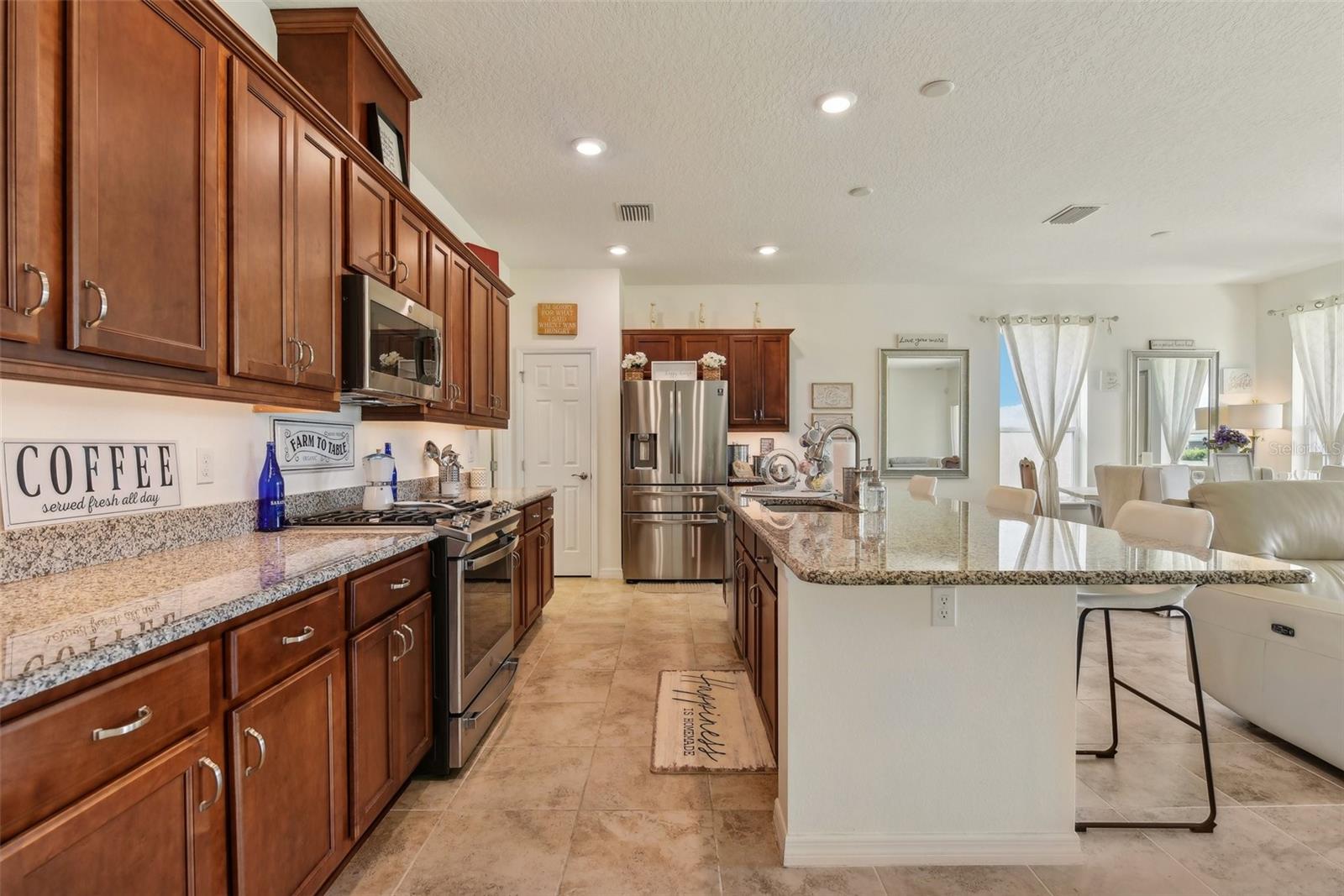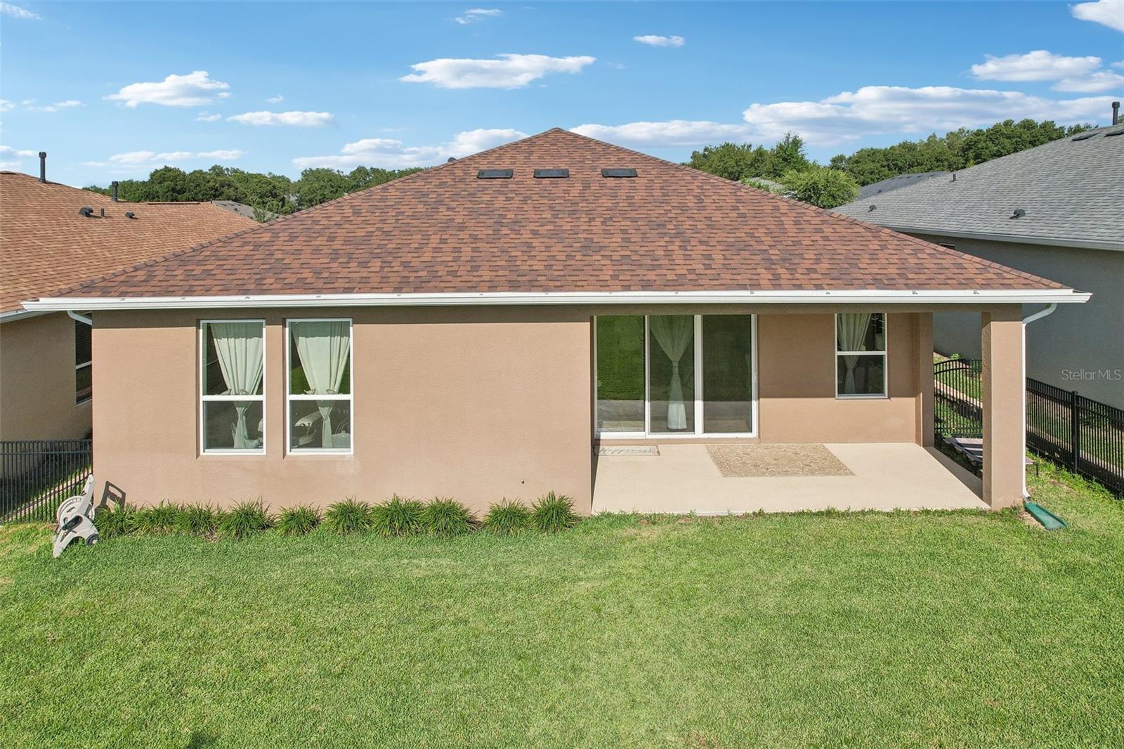 Priced to sell! Welcome home to this well cared for gem! Nestled in the heart of Groveland's Trilogy neighborhood, a gated 55+ active community. This immaculate residence boasts 3 spacious bedrooms and 2 pristine bathrooms, offering the perfect blend of comfort and modern living.The popular Affirm floor plan offers flexibility with the option of the 3rd bedroom being an office, flex room, or anything you desire as it is has a newly installed barn door for privacy. The curb appeal of this home is impressive offering beautiful mature landscaping, stacked stone pillars and a brick paver driveway. The morning sun shines through the plentiful double-paned windows bringing in plenty of natural light with energy efficiency. As you step inside thru the impressive 8' door, you'll be greeted by a bright and open floor plan, a blank canvas ready for your personal touch. The chef of the house will appreciate everything the kitchen has to offer. Sleek granite counters adorn the cherry all-wood cabinets with lighting and accent molding. The immense island and cabinet space is ideal with lots of storage and overlooks the the rest of the space, including the back yard! The kitchen is also equipped with a gas stove, stainless appliances and plenty of pantry space. The rest of the living space is wide open and flexible to your entertaining needs. You have space for a very large dining table or the flexibility to keep the living space blended and wide open. The master suite is a true retreat, and overlooks the back yard. It's completed with an ensuite bathroom for added privacy featuring dual sinks, and a large walk-in closet. Two additional bedrooms provide plenty of space for family, guests, or a home office. Generous sliding doors lead you outside from the main living space where the ample yard is wide open to enjoy the Florida sun, let your fur babies run around or maybe plant a garden. You have a covered lanai to enjoy and is fully fenced for privacy and comfort. Don't forget about the double garage space for your vehicle, golf cart and storage/workbench. Come see this beautiful 4 year old home that gives you the peace of mind, comfort and plenty of room that you've been searching for. The HOA fee includes cable TV, internet, home phone, security monitoring, lawn and shrub maintenance. You are sure to find plenty to do as you drive up to the 57,000-square-foot clubhouse with a restaurant, bar, fitness center, hot tubs, luxurious indoor/outdoor community pool, tennis, pickleball, bocce, demonstration kitchen, art studio, walking trail and numerous other amenities. For those interested in this 55+ community, please be aware the community has not reached the max 20% of residents under 55 permitted. The community allows residents between the ages of 45 to 54. Absolutely no one under the age of 18 may live in the home. Don't miss the opportunity to make 125 Silver Maple Rd your new home. Schedule a showing today and imagine the possibilities! Some furniture is available for purchase. Your offers are welcomed.