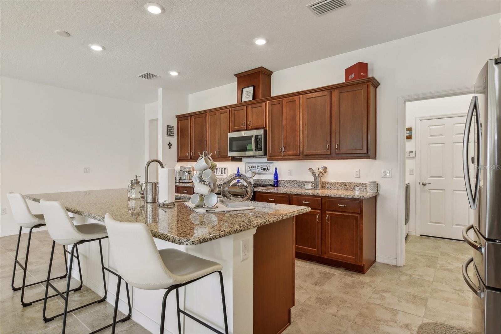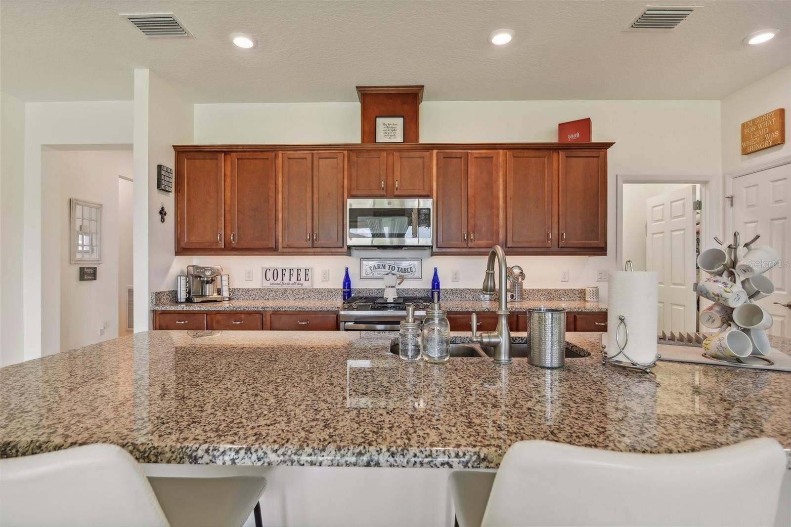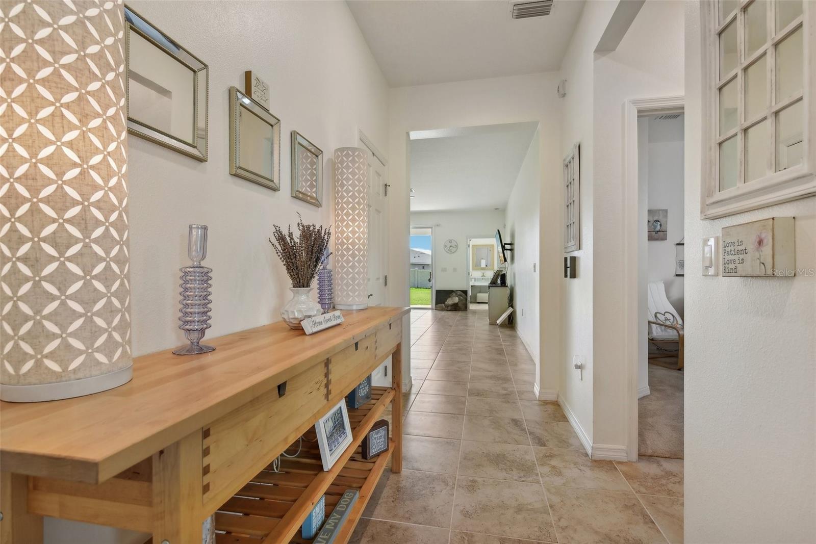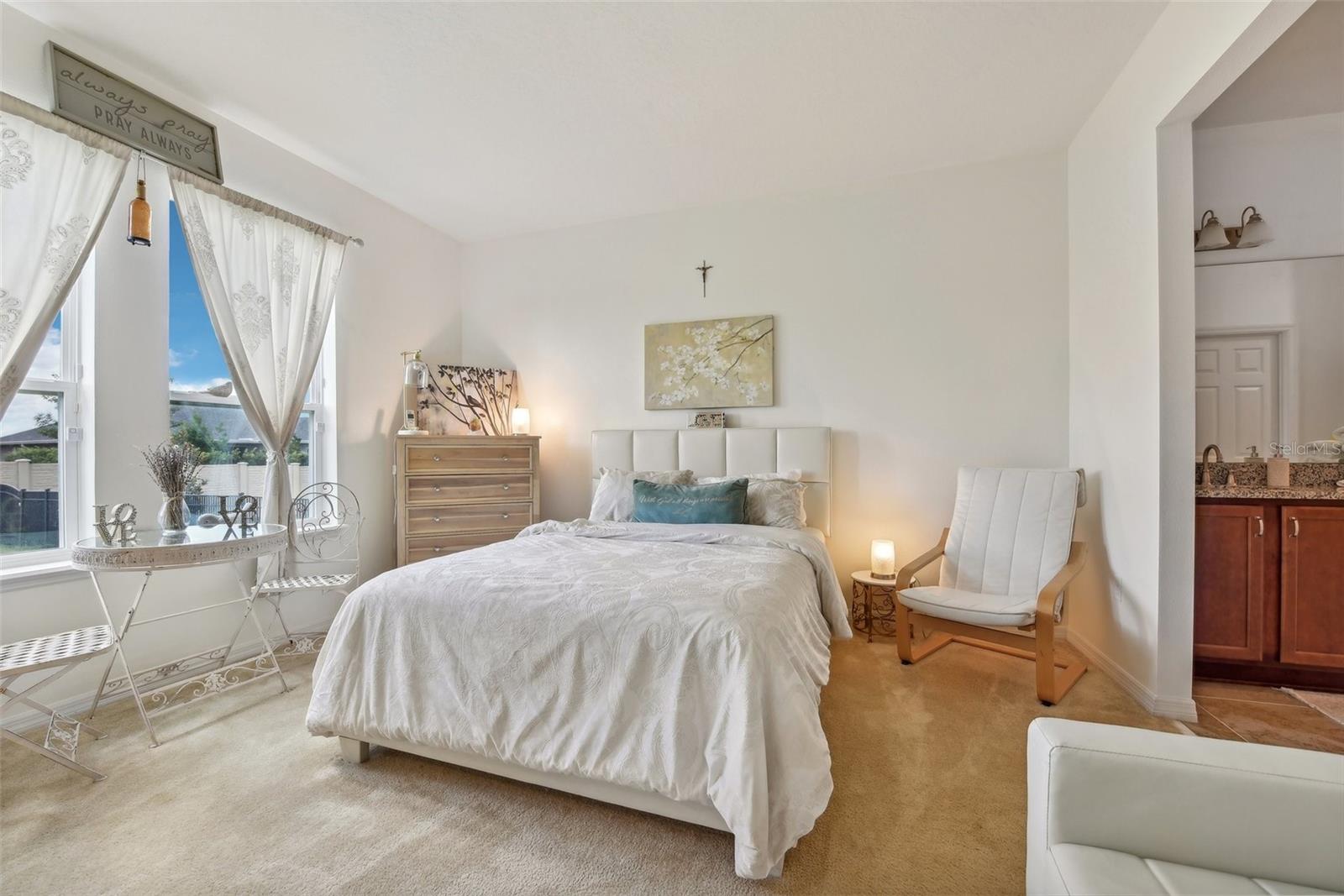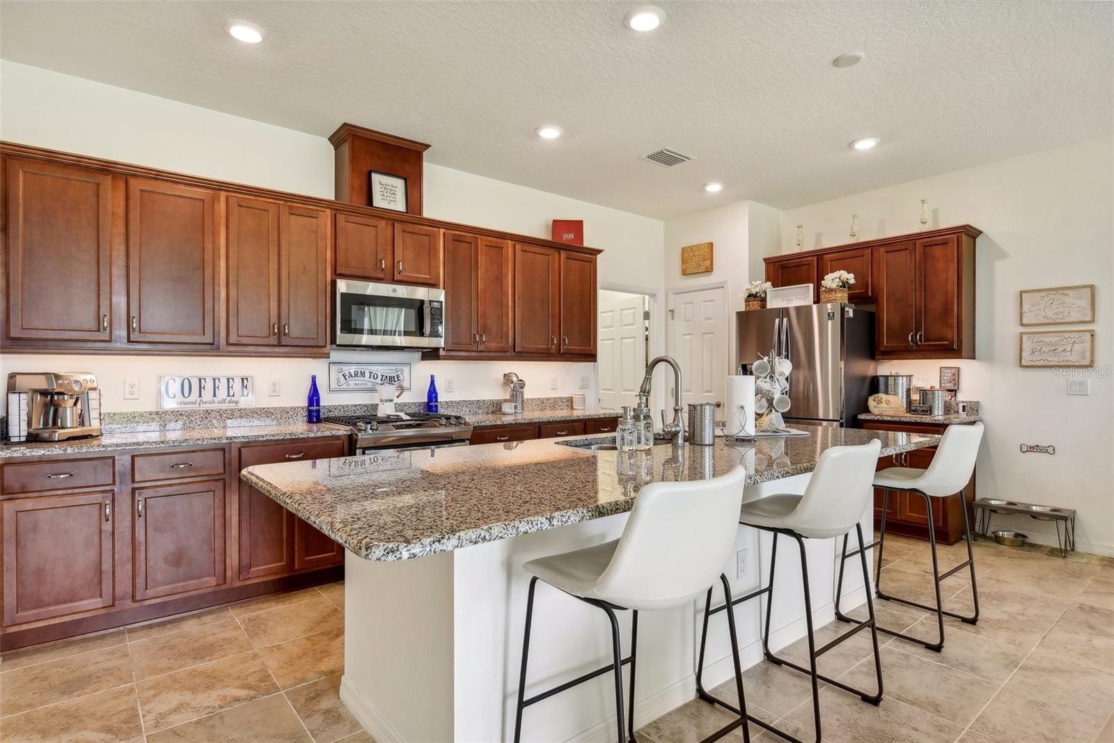 Priced to sell! Welcome home to this well cared for gem! Nestled in the heart of Groveland's Trilogy neighborhood, a gated 55+ active community. This immaculate residence boasts 3 spacious bedrooms and 2 pristine bathrooms, offering the perfect blend of comfort and modern living.The popular Affirm floor plan offers flexibility with the option of the 3rd bedroom being an office, flex room, or anything you desire as it is has a newly installed barn door for privacy. The curb appeal of this home is impressive offering beautiful mature landscaping, stacked stone pillars and a brick paver driveway. The morning sun shines through the plentiful double-paned windows bringing in plenty of natural light with energy efficiency. As you step inside thru the impressive 8' door, you'll be greeted by a bright and open floor plan, a blank canvas ready for your personal touch. The chef of the house will appreciate everything the kitchen has to offer. Sleek granite counters adorn the cherry all-wood cabinets with lighting and accent molding. The immense island and cabinet space is ideal with lots of storage and overlooks the the rest of the space, including the back yard! The kitchen is also equipped with a gas stove, stainless appliances and plenty of pantry space. The rest of the living space is wide open and flexible to your entertaining needs. You have space for a very large dining table or the flexibility to keep the living space blended and wide open. The master suite is a true retreat, and overlooks the back yard. It's completed with an ensuite bathroom for added privacy featuring dual sinks, and a large walk-in closet. Two additional bedrooms provide plenty of space for family, guests, or a home office. Generous sliding doors lead you outside from the main living space where the ample yard is wide open to enjoy the Florida sun, let your fur babies run around or maybe plant a garden. You have a covered lanai to enjoy and is fully fenced for privacy and comfort. Don't forget about the double garage space for your vehicle, golf cart and storage/workbench. Come see this beautiful 4 year old home that gives you the peace of mind, comfort and plenty of room that you've been searching for. The HOA fee includes cable TV, internet, home phone, security monitoring, lawn and shrub maintenance. You are sure to find plenty to do as you drive up to the 57,000-square-foot clubhouse with a restaurant, bar, fitness center, hot tubs, luxurious indoor/outdoor community pool, tennis, pickleball, bocce, demonstration kitchen, art studio, walking trail and numerous other amenities. For those interested in this 55+ community, please be aware the community has not reached the max 20% of residents under 55 permitted. The community allows residents between the ages of 45 to 54. Absolutely no one under the age of 18 may live in the home. Don't miss the opportunity to make 125 Silver Maple Rd your new home. Schedule a showing today and imagine the possibilities! Some furniture is available for purchase. Your offers are welcomed.