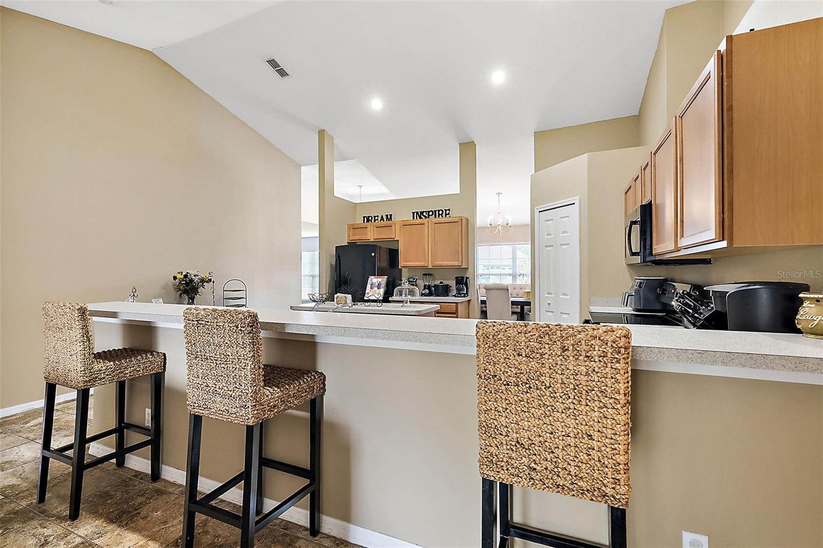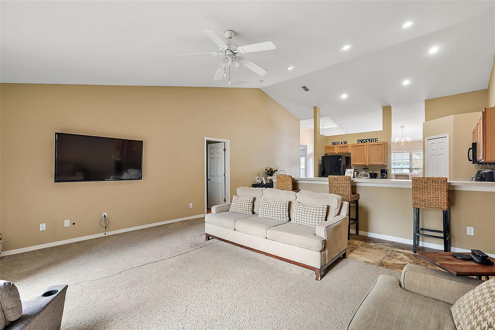 Welcome Home! This lovely home offers 4 bedrooms, 2 baths, a family room and living room, separate dining and laundry room. Open floor plan with a long raised top peninsular perfect for your favorite bar stools. This home has amazing space for entertaining guests. Nice tile through out the living room, kitchen and dining areas. Vinyl flooring in the main bedroom and carpet in the others. The roof and HVAC was replaced in 2023. This community is surrounded by new development. It's only minutes away from shopping and restaurants. Easy access to Orange, Polk and Hillsborough Counties where you can enjoy amazing food, fun and entertainment. Schedule a showing today!