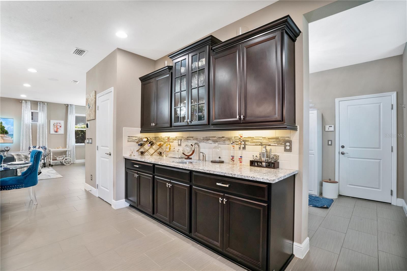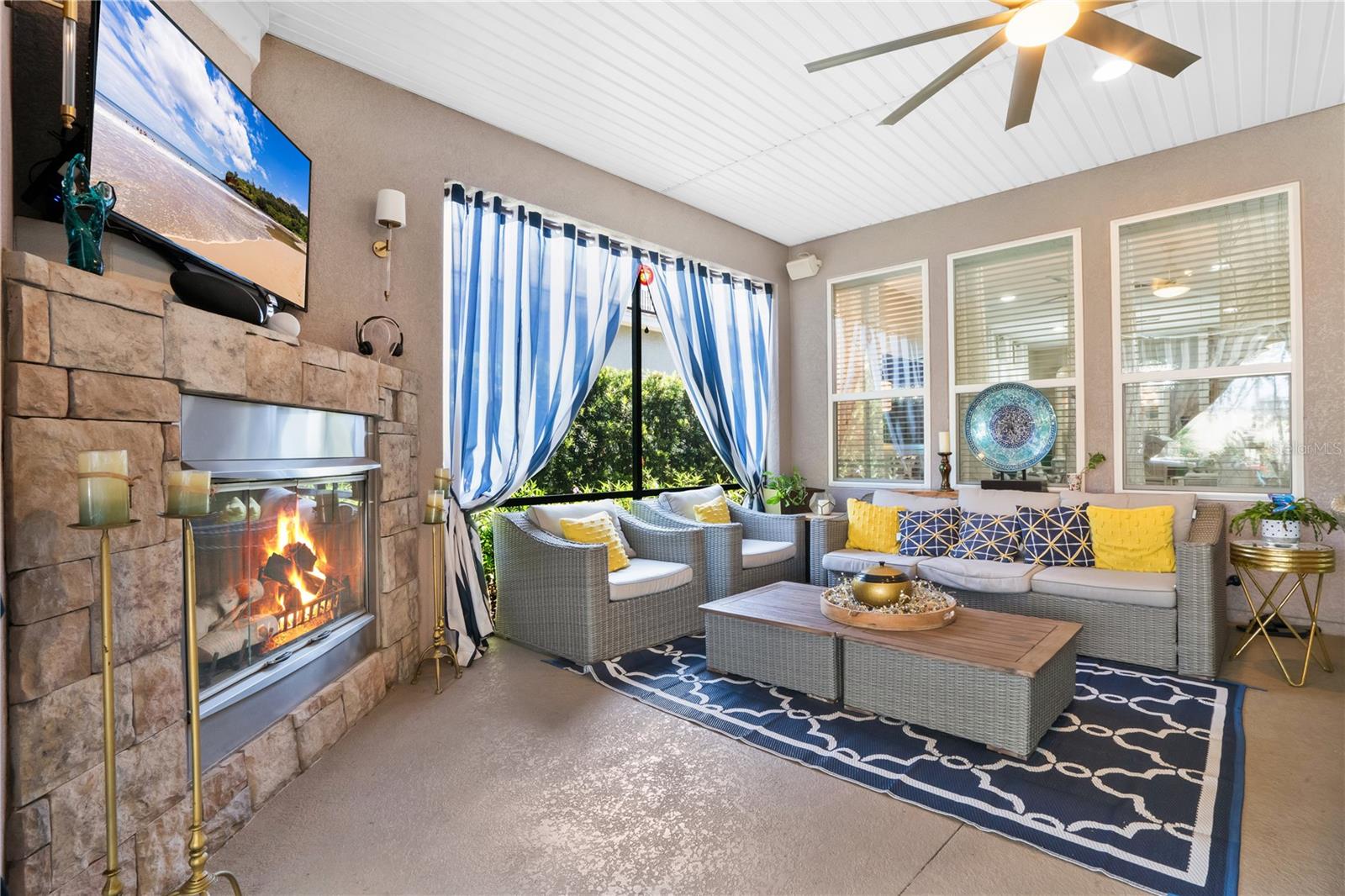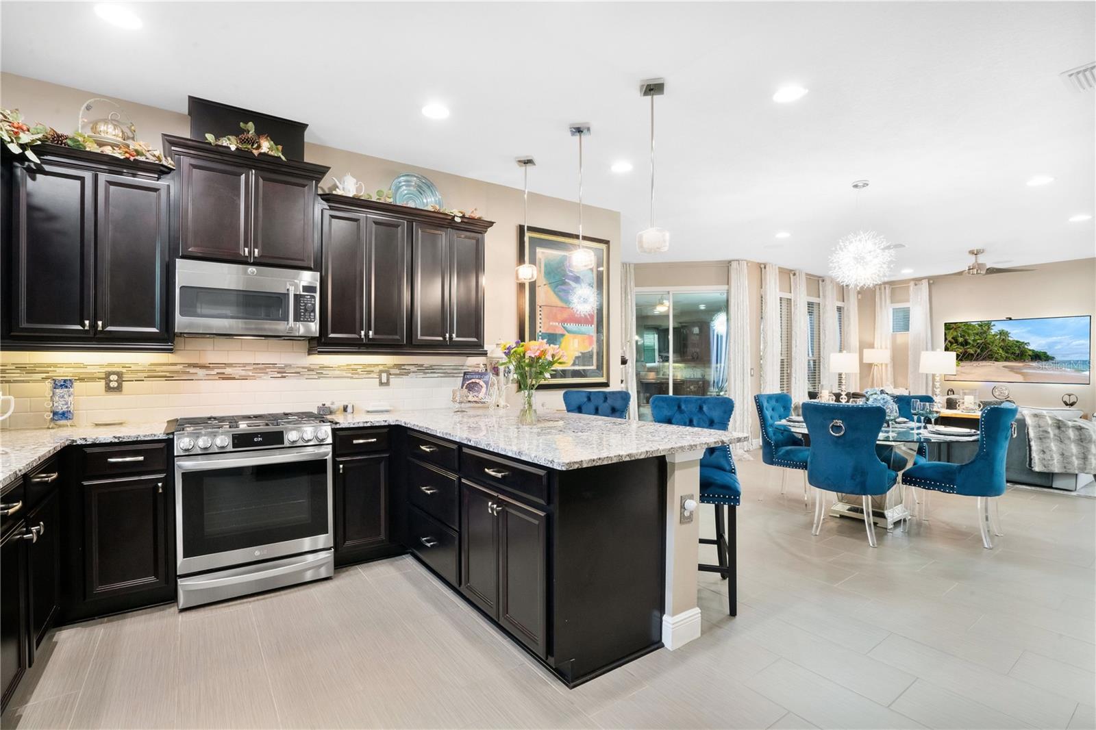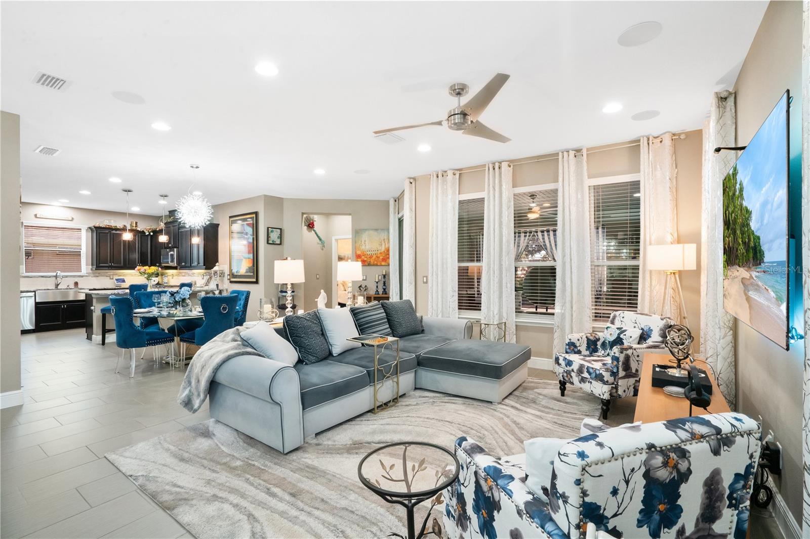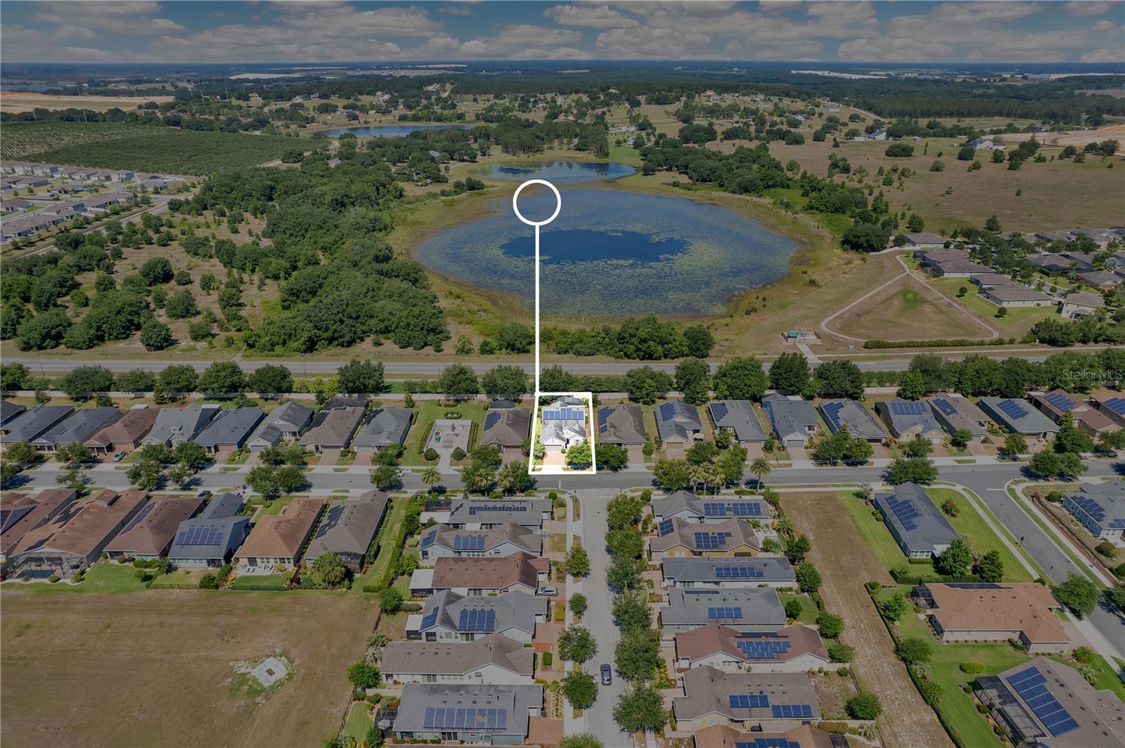 RATE BUY DOWN AVAILABLE! This is a One of a Kind Model! NEW & IMPROVED PRICE! MOTIVATED SELLERS! Welcome to your dream home in the heart of Groveland, Florida, nestled within the highly coveted 55+ community of Trilogy. Developed by "America's Most Trusted Active Adult Resort Builder" for 11 consecutive years, Trilogy offers a lifestyle of unparalleled luxury and convenience. This vibrant community boasts a spectacular 57,000 square foot clubhouse featuring top-notch amenities, including a Restaurant and Bar, Wellness & Fitness Centers, Outdoor sports facilities, and Scenic trails and Parks. With everything you need right at your doorstep, you'll never have to leave. This STUNNING home has been meticulously cared for, featuring the popular Heather floor plan, was BUILT IN 2016 and offers over 1800 square feet of OPEN LIVING SPACE. This home is MOVE IN READY! As you step inside, you'll be captivated by the Mediterranean decor, which bathes the interior in natural light and luxurious upgrades, sure to impress your friends and family. The great room, designed for both relaxation and entertainment, features recessed surround sound and an open-concept layout that seamlessly integrates the living spaces. The kitchen is a chef's delight, equipped with a FARM SINK, HIGH END GRANITE COUNTERTOPS , SOLID WOOD CABINETS with elegant CROWN MOLDING, and a WET BAR with remote-controlled custom lighting. The covered lanai extends your living space outdoors, featuring a cozy FIREPLACE perfect for mounting a TV for movie nights or enjoying hot cocoa on cool evenings. The owner's suite is a private retreat, complete with a spacious walk-in shower featuring built-in seating, frameless glass, and upgraded faucets. The OVERSIZED garage includes a valuable 4-foot extension, providing ample storage and parking space, and is equipped with an outlet for your golf cart. This home is designed with energy efficiency in mind, boasting a solar package and energy-rated windows to keep you comfortable and cost-efficient throughout Florida's peak seasons. Experience the epitome of resort-style living in this exquisite home, where luxury, convenience, and community come together in perfect harmony. Welcome to Trilogy, where your new adventure awaits! WATCH NOW - https://youtu.be/0ydfOYdjpgw SELLERS WILL CONTRIBUTE A CONCESSION TOWARDS RATE BUY DOWN!