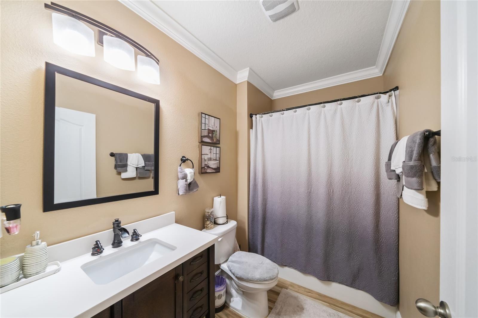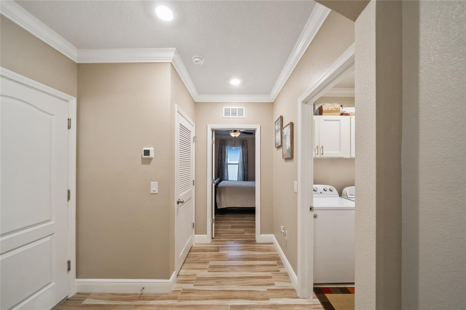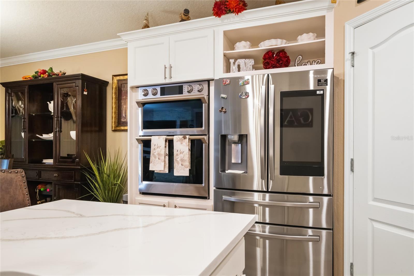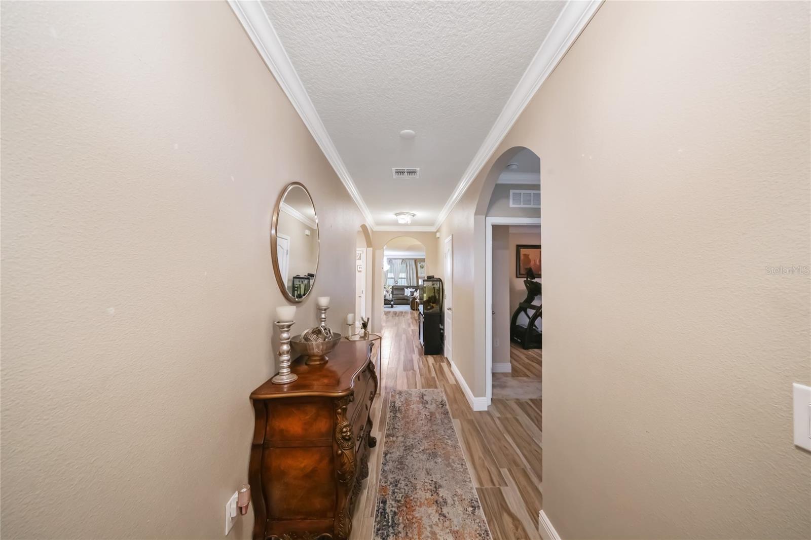 Experience modern living in this 2020, beautifully designed home in a prime Groveland location. The award-winning Cali floor plan welcomes you with a warm entry foyer leading to a cozy living area, perfect for relaxation and gatherings. Welcome to this stunning home in Groveland, FL, where luxury and modern upgrades await. The exterior features a charming stacked stone front, lush landscaping, and gutters for optimal drainage. Step inside to discover elegant ceramic tile flooring, exquisite crown molding, and custom baseboards throughout. The gourmet kitchen is a chef's dream, boasting quartz countertops, a stylish backsplash, gourmet cabinets, a range, and an upgraded dishwasher. The cozy living area features a striking stone accent wall, while the laundry room offers additional convenience with built-in cupboards. The master suite includes a luxurious standing tub and a sliding glass door leading to the screened-in lanai, perfect for enjoying the serene backyard with irrigation. Additional features include a water softener ( PAID OFF ), and solar panels. Note: The refrigerator and chandelier will be removed, and the oven will be switched out. Don’t miss the opportunity to make this exquisite property your new home!