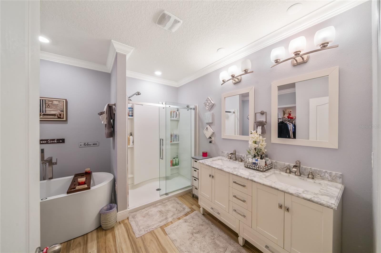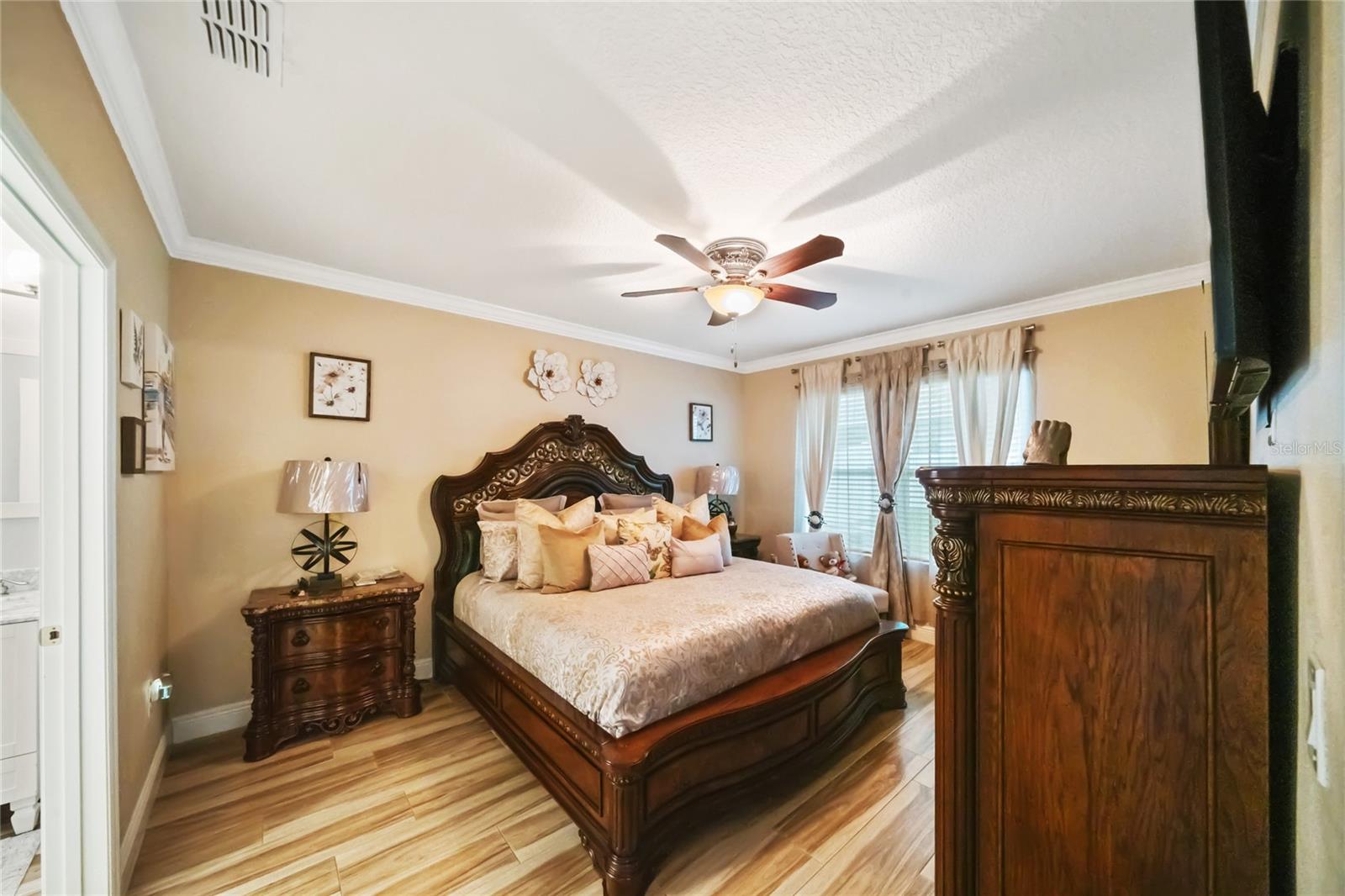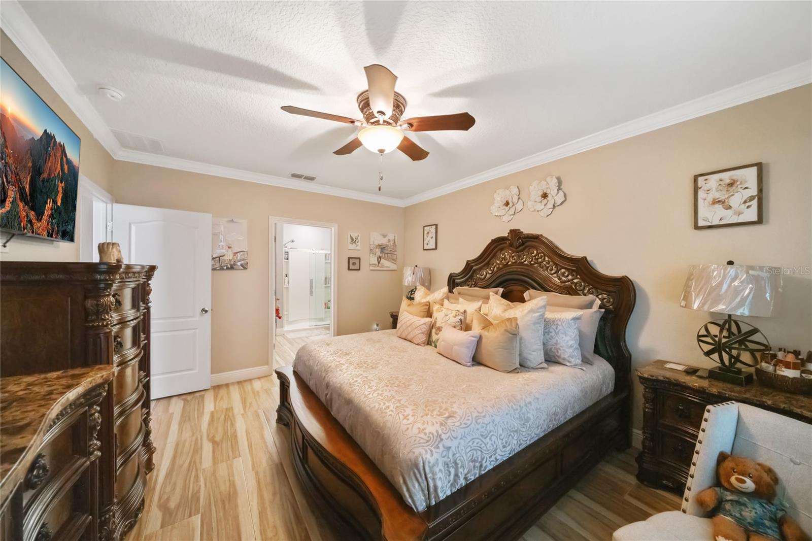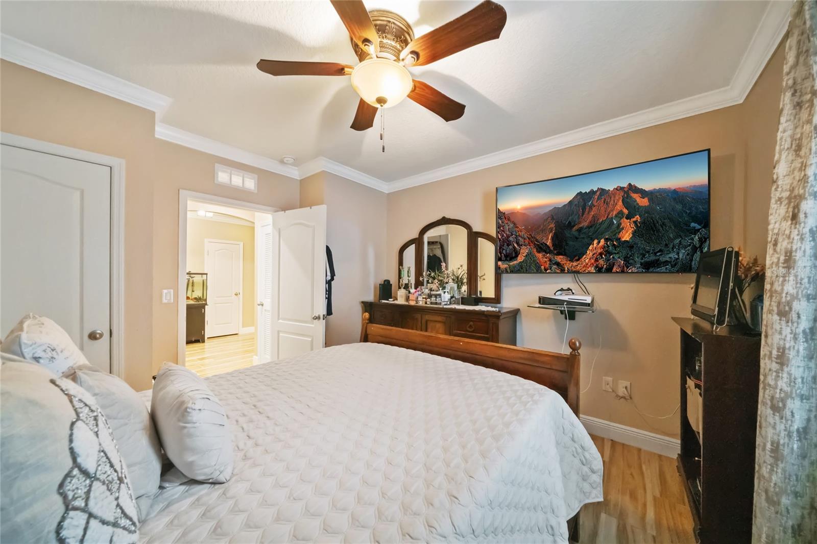 Experience modern living in this 2020, beautifully designed home in a prime Groveland location. The award-winning Cali floor plan welcomes you with a warm entry foyer leading to a cozy living area, perfect for relaxation and gatherings. Welcome to this stunning home in Groveland, FL, where luxury and modern upgrades await. The exterior features a charming stacked stone front, lush landscaping, and gutters for optimal drainage. Step inside to discover elegant ceramic tile flooring, exquisite crown molding, and custom baseboards throughout. The gourmet kitchen is a chef's dream, boasting quartz countertops, a stylish backsplash, gourmet cabinets, a range, and an upgraded dishwasher. The cozy living area features a striking stone accent wall, while the laundry room offers additional convenience with built-in cupboards. The master suite includes a luxurious standing tub and a sliding glass door leading to the screened-in lanai, perfect for enjoying the serene backyard with irrigation. Additional features include a water softener ( PAID OFF ), and solar panels. Note: The refrigerator and chandelier will be removed, and the oven will be switched out. Don’t miss the opportunity to make this exquisite property your new home!