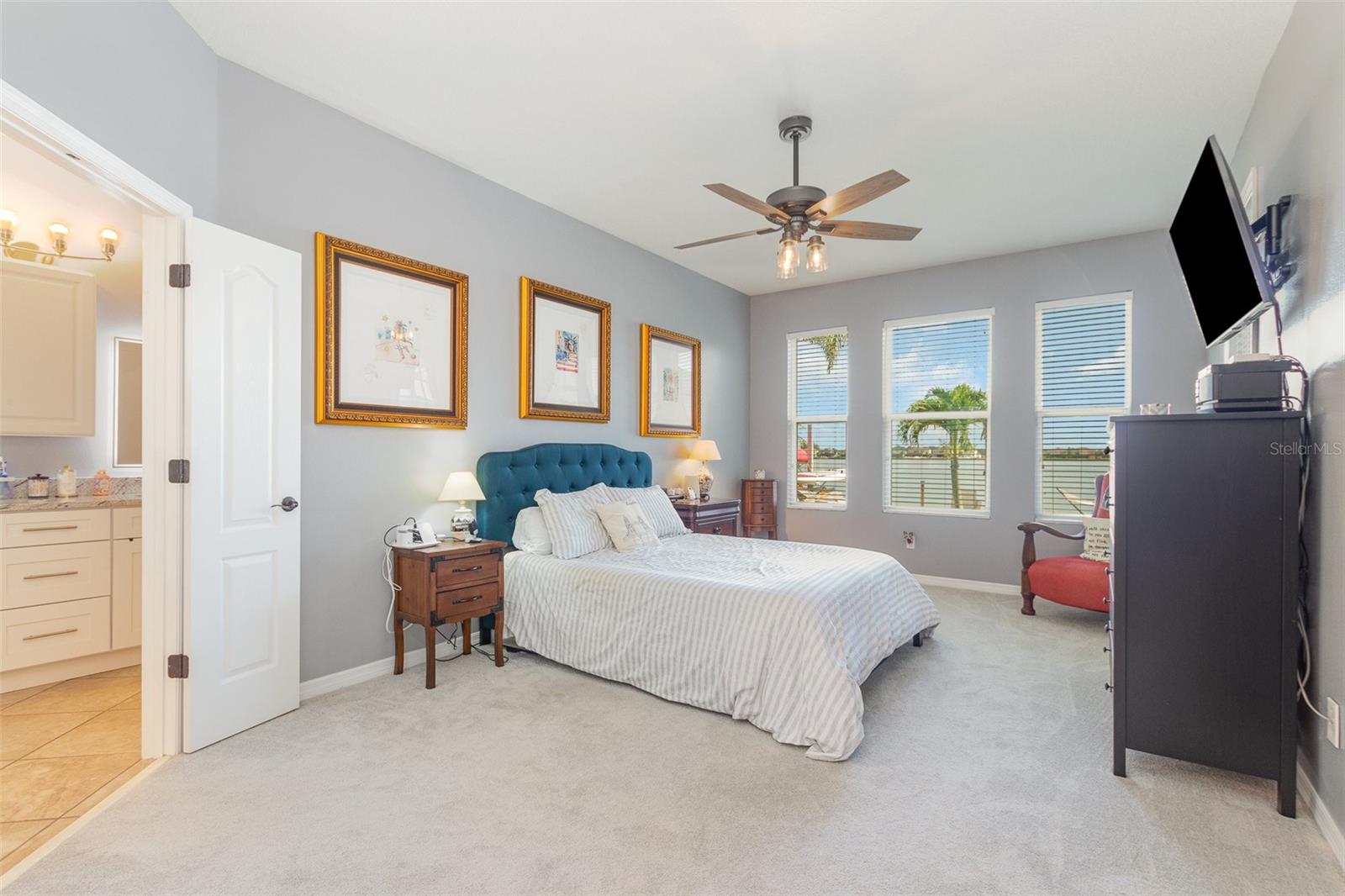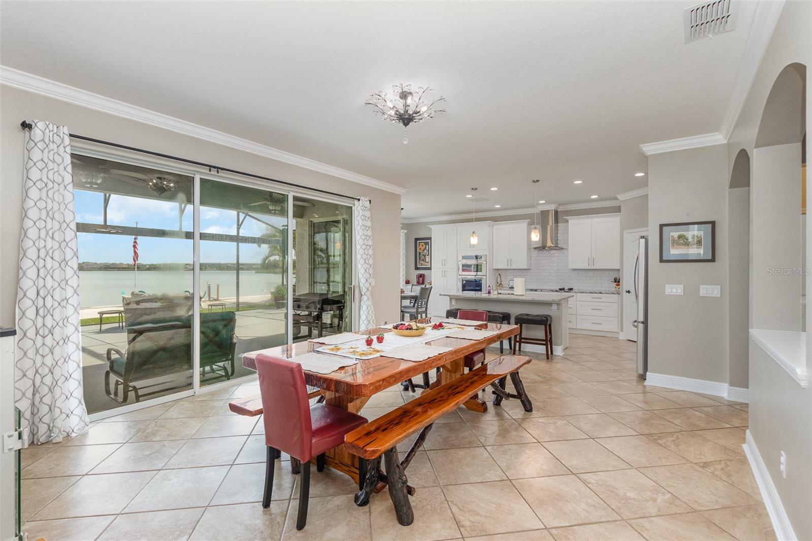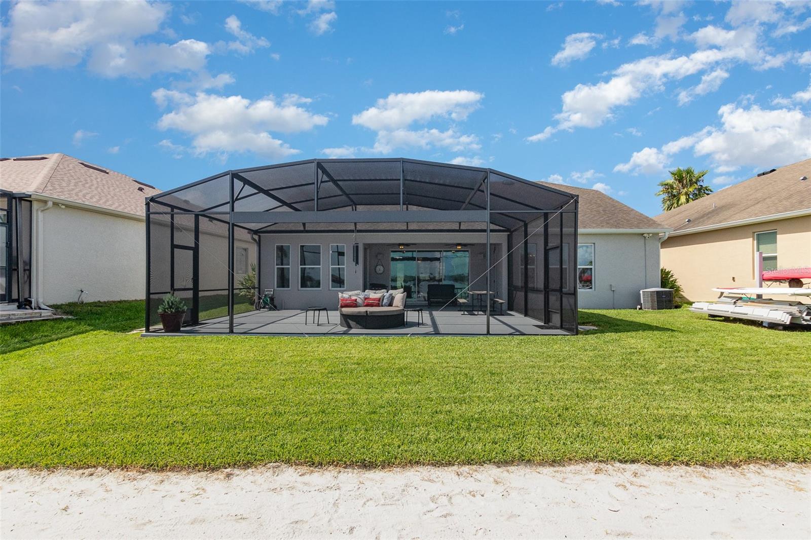 Nestled along the tranquil waterfront, this luxurious property unveils a perfect blend of modern sophistication and natural beauty. Step inside to discover three spacious bedrooms and two impeccably designed bathrooms. The interior has been meticulously renovated, featuring rich, slow closing wood cabinets complemented by upgraded granite countertops for a sleek, contemporary feel. Brand new carpeting throughout enhances comfort and elegance. Stepping outside, a private ramp extends gracefully into the water offering convenient access for water sports enthusiasts or a refreshing dip. The backyard is a true sanctuary with soft sand resembling a private beach, ideal for relaxation or entertaining. A screened patio provides a serene spot for enjoying meals or simply taking in the breathtaking waterfront views.
