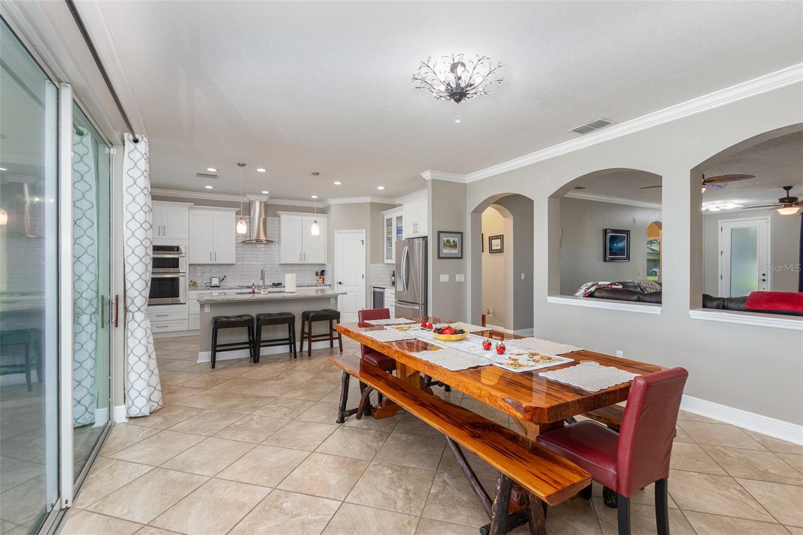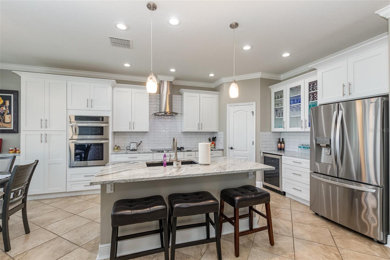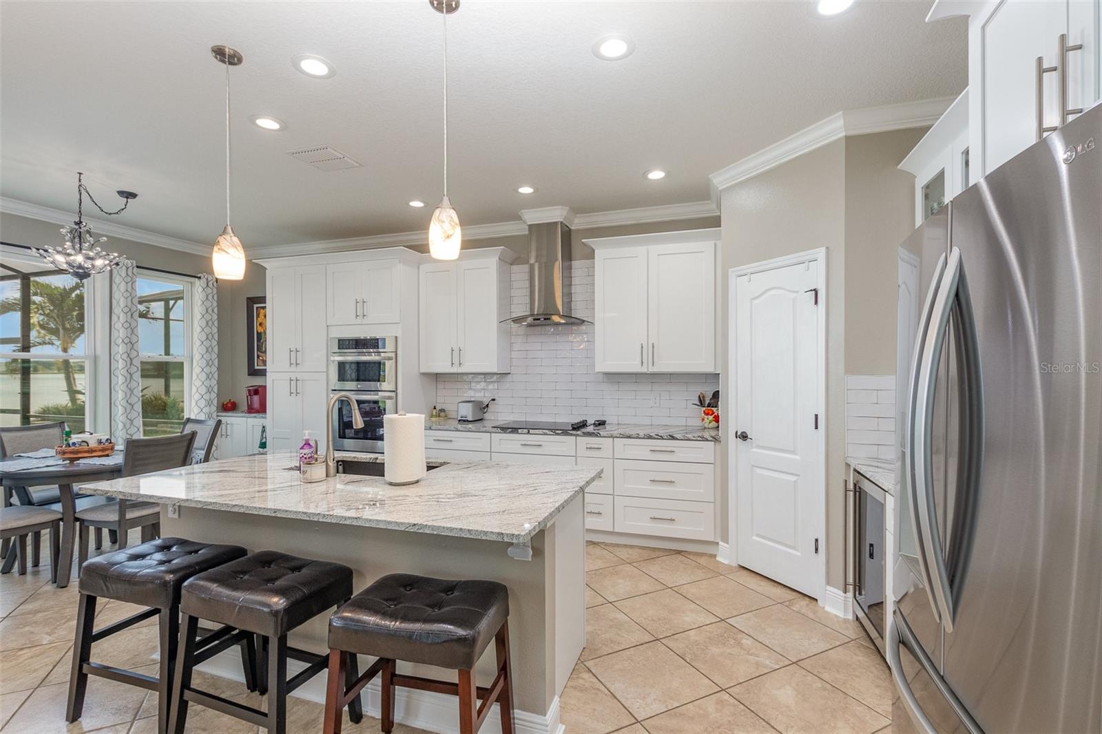 Nestled along the tranquil waterfront, this luxurious property unveils a perfect blend of modern sophistication and natural beauty. Step inside to discover three spacious bedrooms and two impeccably designed bathrooms. The interior has been meticulously renovated, featuring rich, slow closing wood cabinets complemented by upgraded granite countertops for a sleek, contemporary feel. Brand new carpeting throughout enhances comfort and elegance. Stepping outside, a private ramp extends gracefully into the water offering convenient access for water sports enthusiasts or a refreshing dip. The backyard is a true sanctuary with soft sand resembling a private beach, ideal for relaxation or entertaining. A screened patio provides a serene spot for enjoying meals or simply taking in the breathtaking waterfront views.