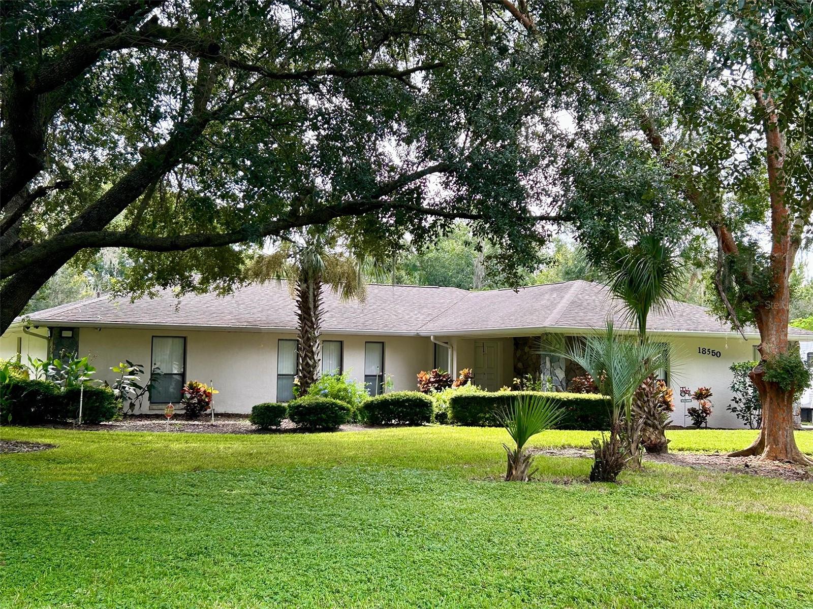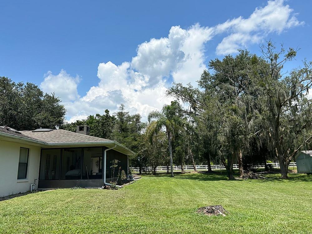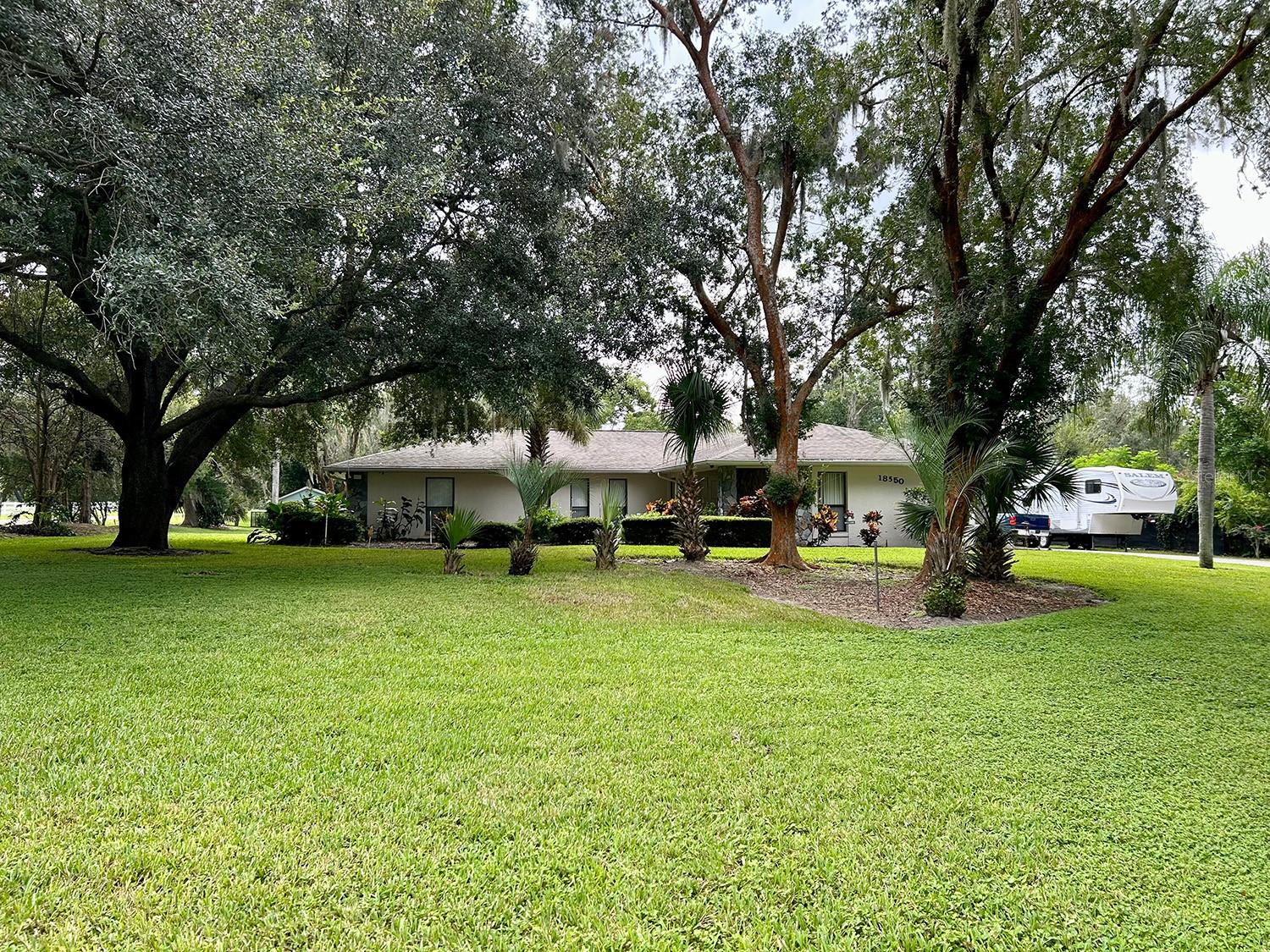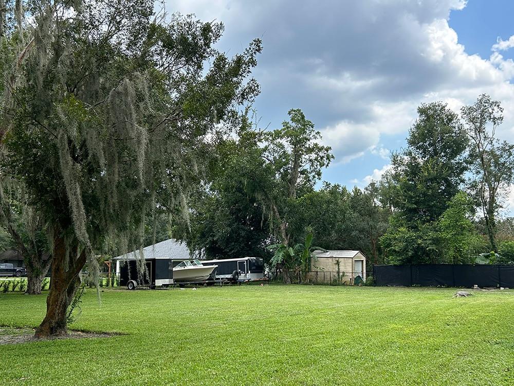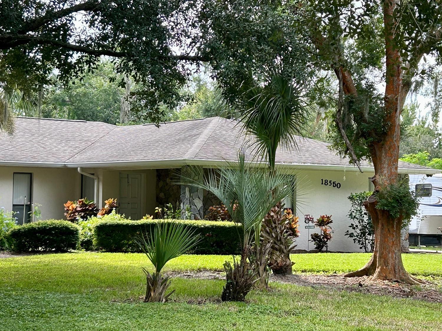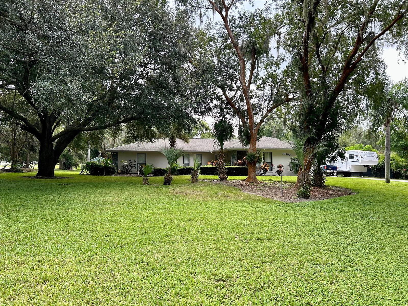 ** LAKE ACCESS ** ASSUMABLE LOW INTEREST RATE MORTGAGE ** NO HOA ** Looking for the perfect place to live life on your own terms? Look no further: No HOA! Private neighborhood Boat Dock! Almost an acre of land - where you can park your boat and RV, and no-one will give you a hard time about it! This lovely, well-maintained 3 bed, 2 bath, 2 car garage, 2122 sq.ft. home offers all of this in a quiet setting, and at the same time is convenient to town when you need to be. Upon entering, you will enjoy an Open Floor Plan, with an oversized Family Room / Dining Room combo, a wood burning fireplace and vaulted ceilings: providing a great place to gather plenty of family and friends for the upcoming holidays! The kitchen has a bar that also opens to the Family Room, also open to the family room, creating great flow, so that everyone is connected and can visit easily. The kitchen offers stainless steel appliances, has a built-in over, and cooktop, and lovely French Doors that take you to your huge back patio, currently screened in, (but windows for closing it in are on-site.) Split Bedroom plan, with Oversized Primary Bedroom on one side with en-suite bathroom with separate tub and shower, and two more bedrooms on the other side with the second bath in between. Inside Laundry Room conveniently located in the large primary bedroom closet. Established, friendly, smaller neighborhood, where neighbors actually get to know one another, and are there when you need them. The hard-wired security system comes with the house, featuring 16 exterior view cameras that you can monitor from inside (see photos). There is also storage shed out back for lawn equipment, etc. Beautifully landscaped with lush lawn, oaks, palms, crepe myrtles and more, for that perfect Florida feel. Come see your forever home today, leave the HOA behind, and enjoy your property the way you should be able to.