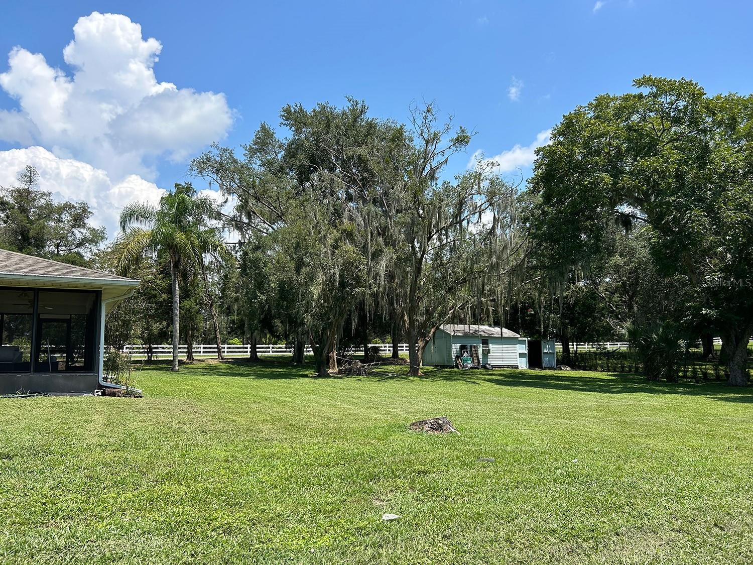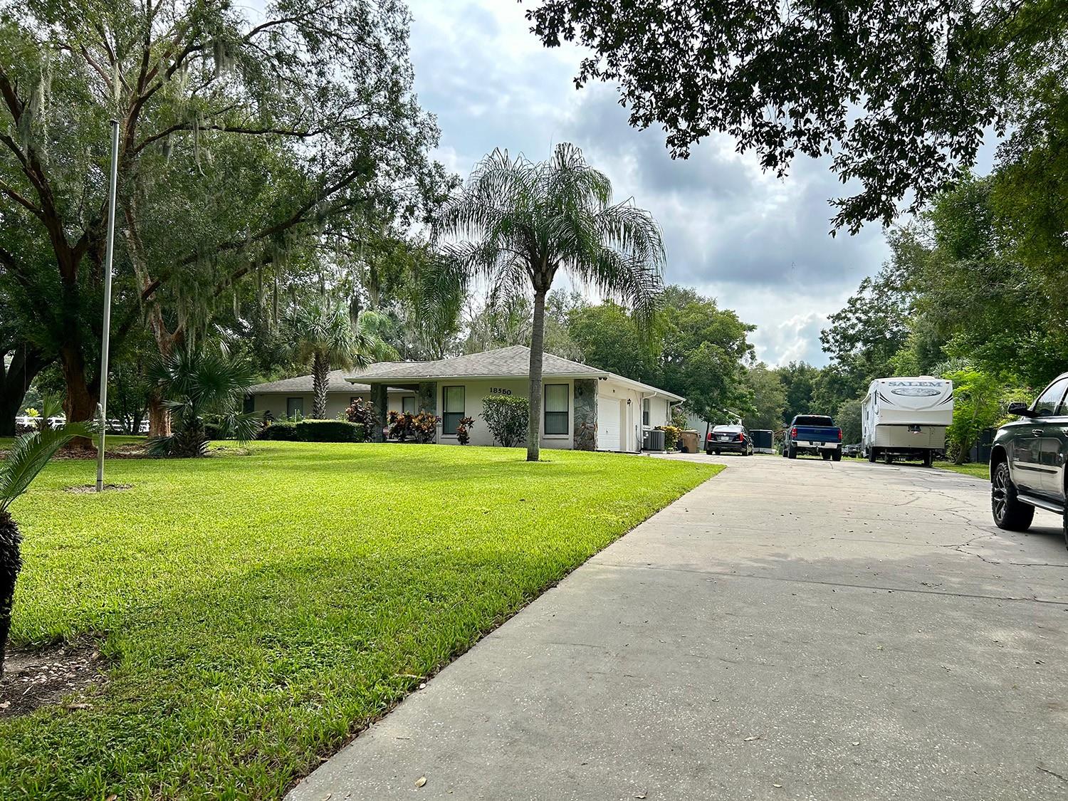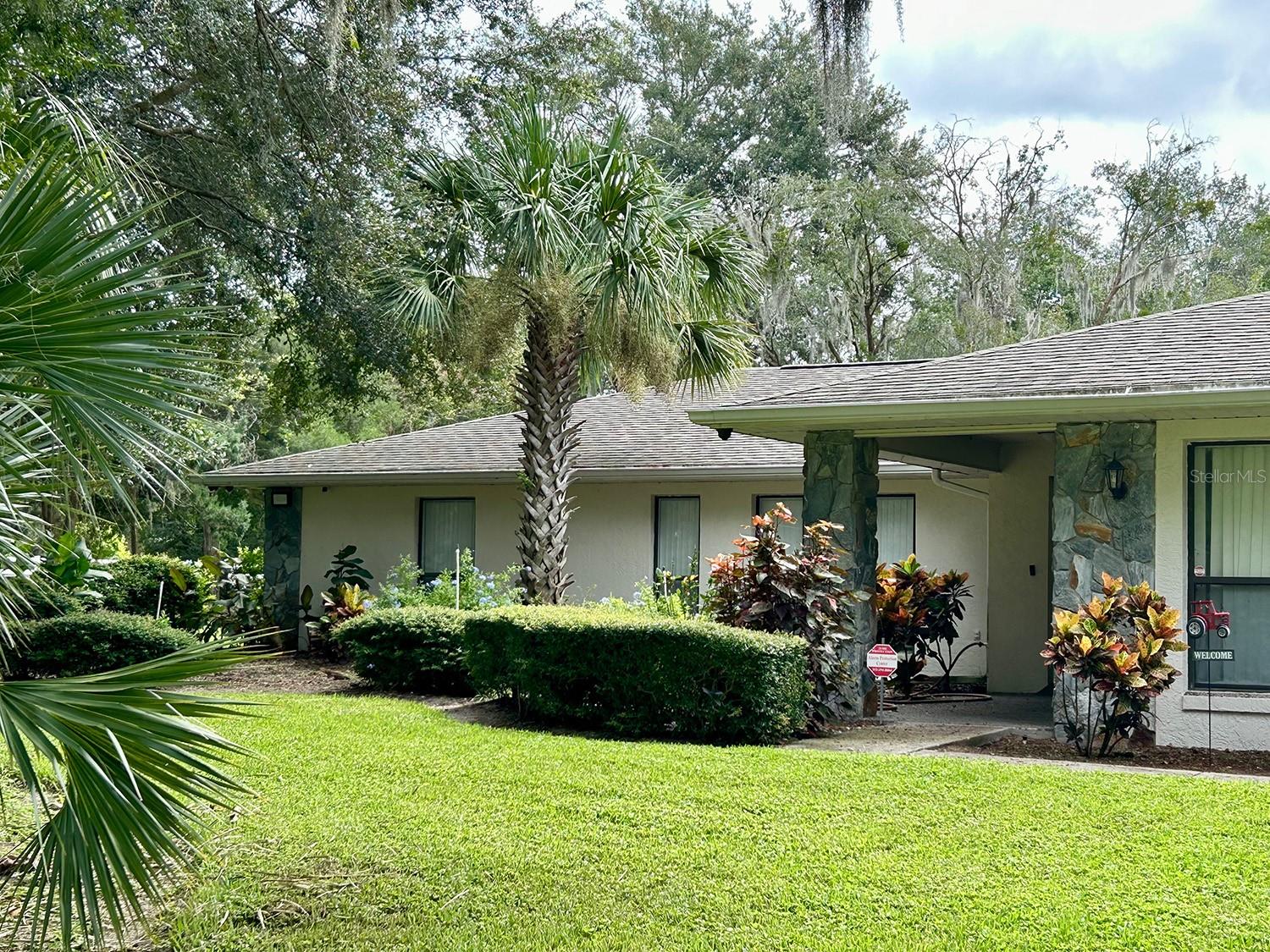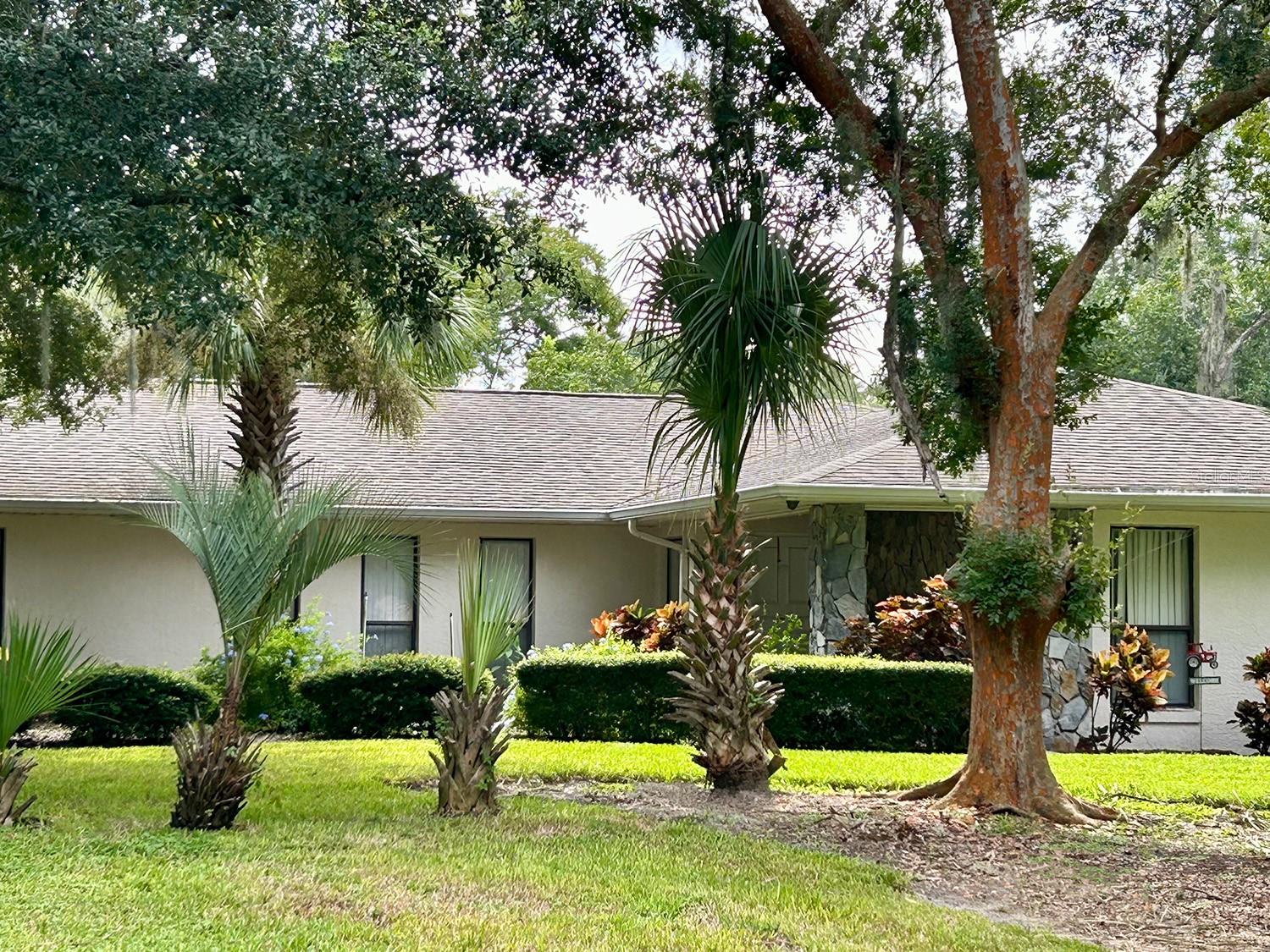 ** LAKE ACCESS ** ASSUMABLE LOW INTEREST RATE MORTGAGE ** NO HOA ** Looking for the perfect place to live life on your own terms? Look no further: No HOA! Private neighborhood Boat Dock! Almost an acre of land - where you can park your boat and RV, and no-one will give you a hard time about it! This lovely, well-maintained 3 bed, 2 bath, 2 car garage, 2122 sq.ft. home offers all of this in a quiet setting, and at the same time is convenient to town when you need to be. Upon entering, you will enjoy an Open Floor Plan, with an oversized Family Room / Dining Room combo, a wood burning fireplace and vaulted ceilings: providing a great place to gather plenty of family and friends for the upcoming holidays! The kitchen has a bar that also opens to the Family Room, also open to the family room, creating great flow, so that everyone is connected and can visit easily. The kitchen offers stainless steel appliances, has a built-in over, and cooktop, and lovely French Doors that take you to your huge back patio, currently screened in, (but windows for closing it in are on-site.) Split Bedroom plan, with Oversized Primary Bedroom on one side with en-suite bathroom with separate tub and shower, and two more bedrooms on the other side with the second bath in between. Inside Laundry Room conveniently located in the large primary bedroom closet. Established, friendly, smaller neighborhood, where neighbors actually get to know one another, and are there when you need them. The hard-wired security system comes with the house, featuring 16 exterior view cameras that you can monitor from inside (see photos). There is also storage shed out back for lawn equipment, etc. Beautifully landscaped with lush lawn, oaks, palms, crepe myrtles and more, for that perfect Florida feel. Come see your forever home today, leave the HOA behind, and enjoy your property the way you should be able to.