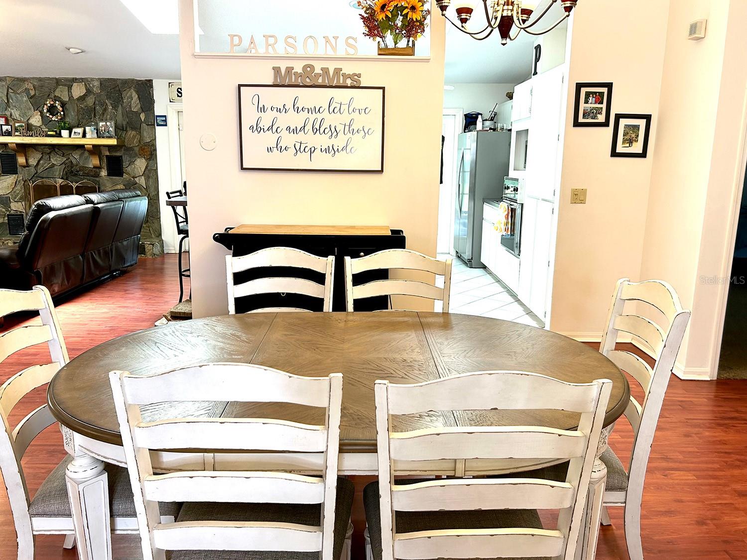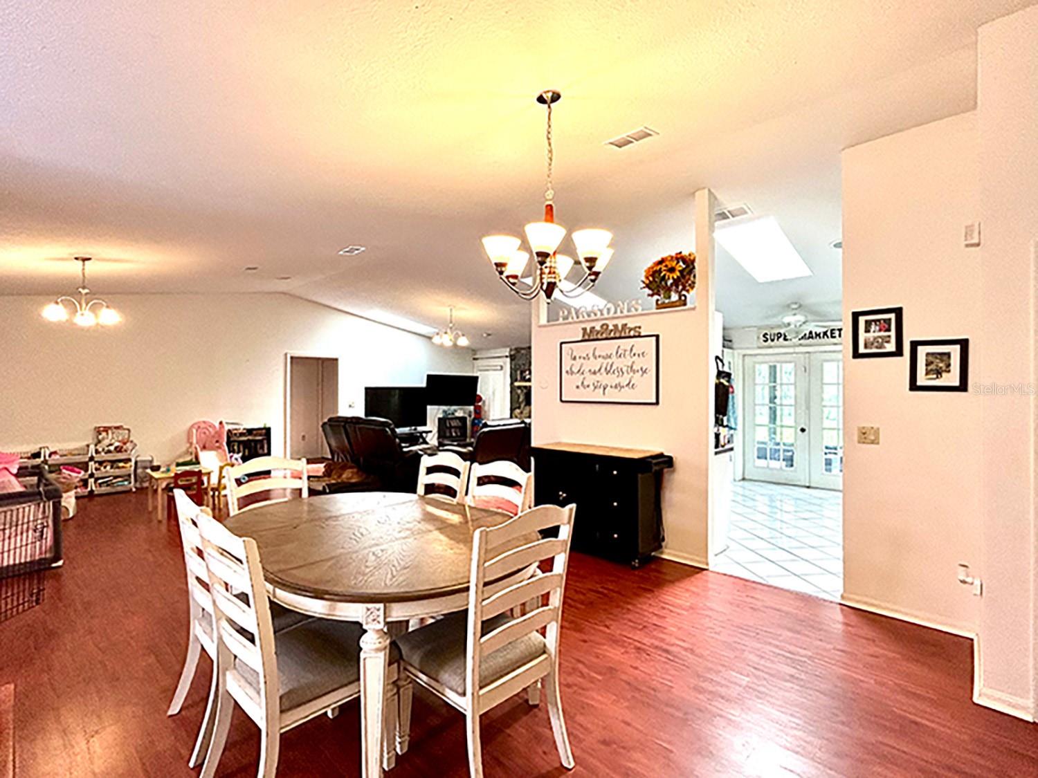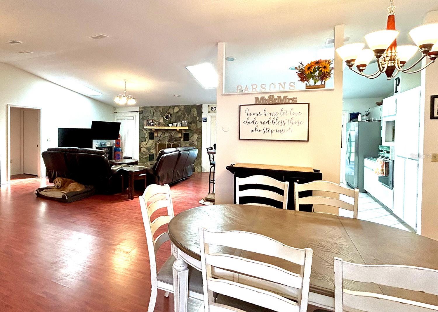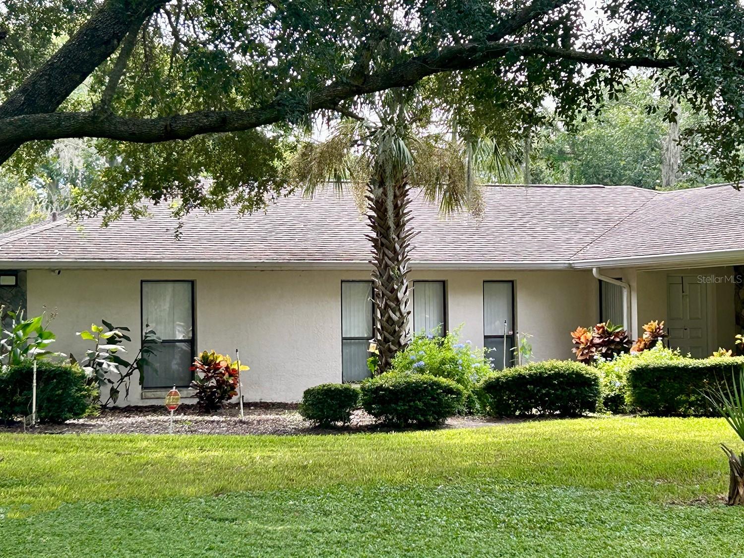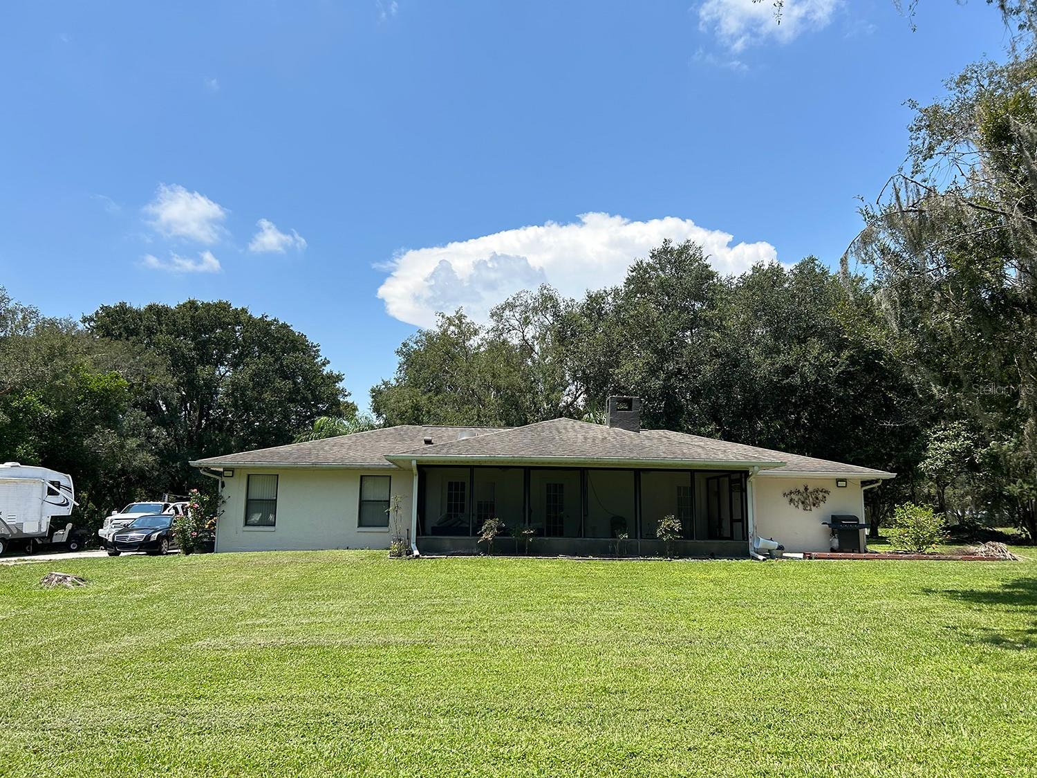 ** LAKE ACCESS ** ASSUMABLE LOW INTEREST RATE MORTGAGE ** NO HOA ** Looking for the perfect place to live life on your own terms? Look no further: No HOA! Private neighborhood Boat Dock! Almost an acre of land - where you can park your boat and RV, and no-one will give you a hard time about it! This lovely, well-maintained 3 bed, 2 bath, 2 car garage, 2122 sq.ft. home offers all of this in a quiet setting, and at the same time is convenient to town when you need to be. Upon entering, you will enjoy an Open Floor Plan, with an oversized Family Room / Dining Room combo, a wood burning fireplace and vaulted ceilings: providing a great place to gather plenty of family and friends for the upcoming holidays! The kitchen has a bar that also opens to the Family Room, also open to the family room, creating great flow, so that everyone is connected and can visit easily. The kitchen offers stainless steel appliances, has a built-in over, and cooktop, and lovely French Doors that take you to your huge back patio, currently screened in, (but windows for closing it in are on-site.) Split Bedroom plan, with Oversized Primary Bedroom on one side with en-suite bathroom with separate tub and shower, and two more bedrooms on the other side with the second bath in between. Inside Laundry Room conveniently located in the large primary bedroom closet. Established, friendly, smaller neighborhood, where neighbors actually get to know one another, and are there when you need them. The hard-wired security system comes with the house, featuring 16 exterior view cameras that you can monitor from inside (see photos). There is also storage shed out back for lawn equipment, etc. Beautifully landscaped with lush lawn, oaks, palms, crepe myrtles and more, for that perfect Florida feel. Come see your forever home today, leave the HOA behind, and enjoy your property the way you should be able to.