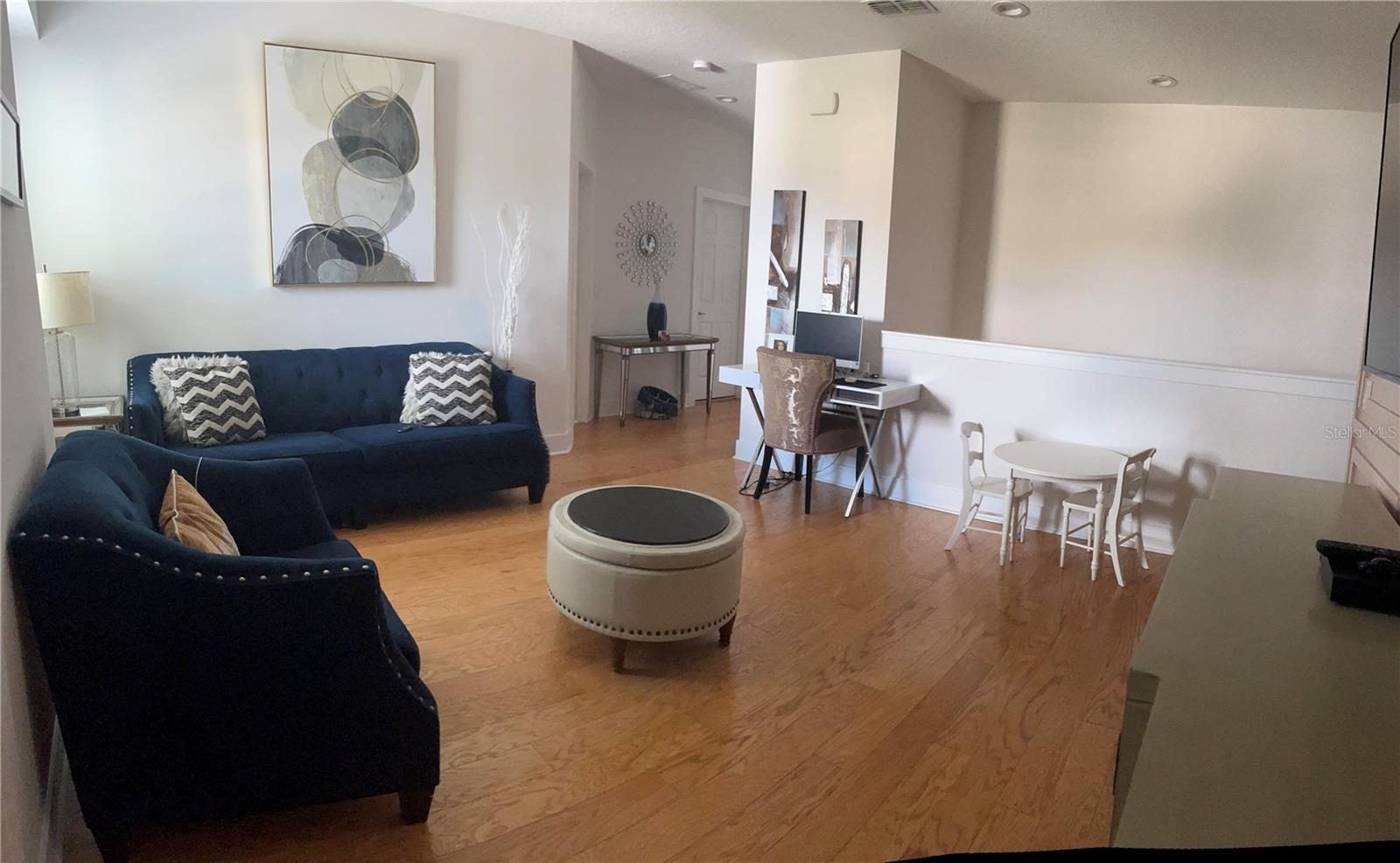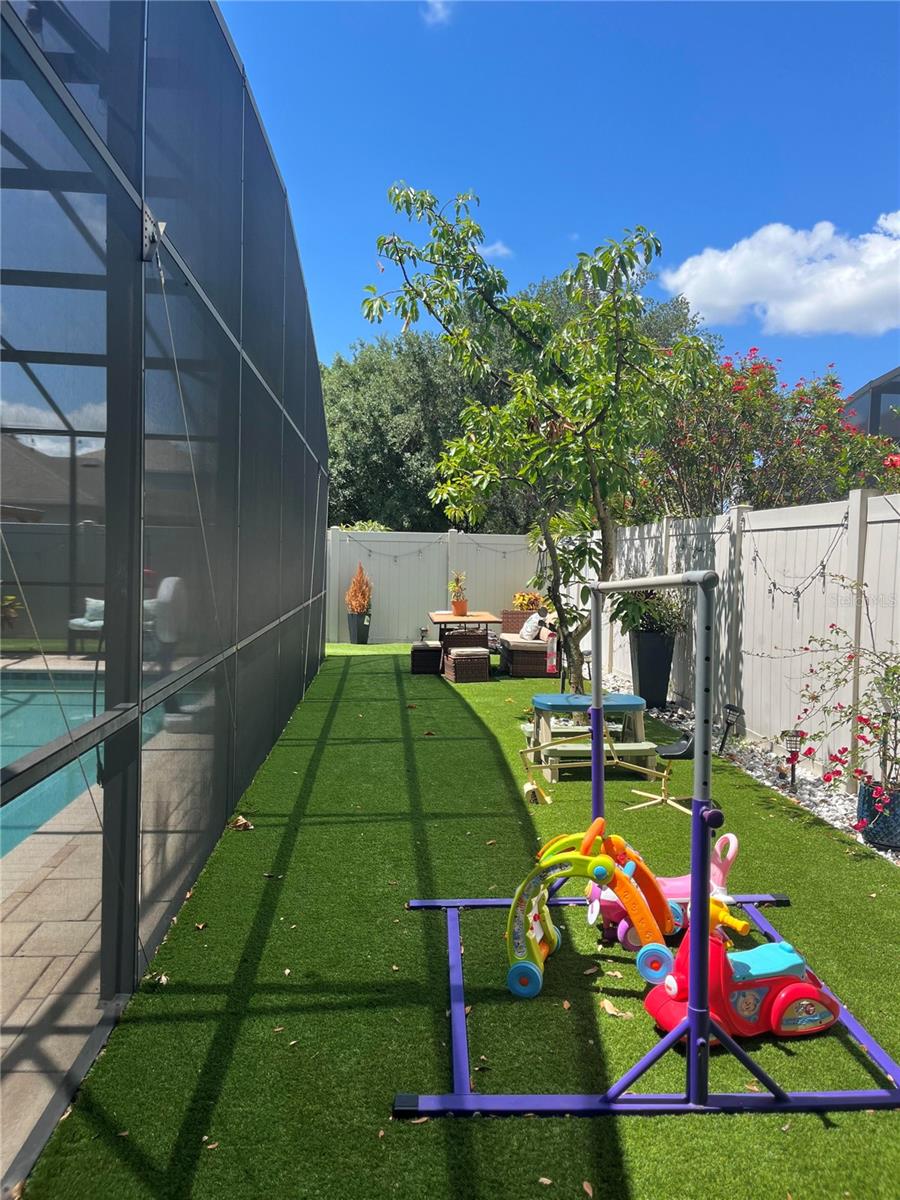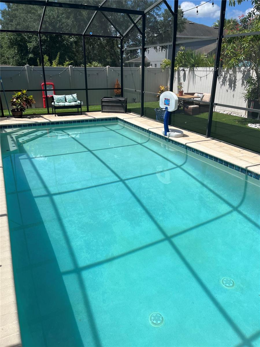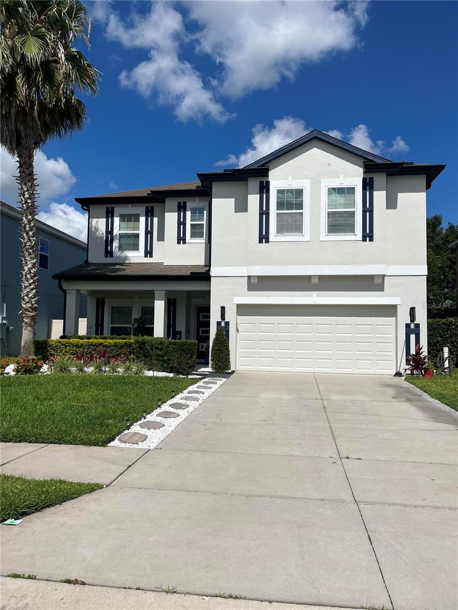 This home has it ALL! 5 Bedroom/3 Bath POOL home located in beautiful Waterside Pointe. This gated waterfront community offers resort style living with private lake access, a 2 story waterslide with community pool, fitness center, pool table, tennis, basketball, playgrounds, and clubhouse that's available to rent for private parties.. Upgrades are plentiful and this gorgeous two story home is completely move in ready! With built in entertainment and electric fire chimney. You will enter the home through the covered porch, you will find an Office/Den, a great room living area complete with a fully upgraded kitchen with built in pantry, Cambria , a downstairs bedroom and full bathroom, large storage (second pantry) under the stairs, a dining area with slider to the screened-in 30' x 14' salt water pool and lanai. The spacious lanai offers double fans/lights, electric with separate panel for hot tub, wired for television. The back yard is fenced-in. with Artificial grass! Upstairs you'll find the master bedroom and master bath, 3 more bedrooms, a loft/media room/game room, and a utility room complete with cabinets with a clothes folding area added! Upgrades to this home include large kitchen cabinets, quartz counter tops, stainless steel appliances, fan hood, backsplash with under cabinet lighting. You will love the new tile floors throughout! There is plenty of storage space and walk in closets, french doors in the den, 2 inch blinds, TV and phone connections in every room and on the lanai. There's plenty more upgrades! Great price!! Wont last long!!