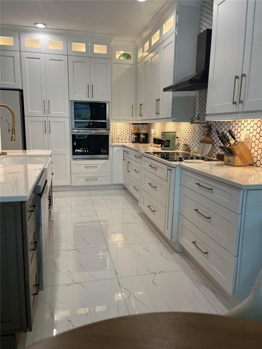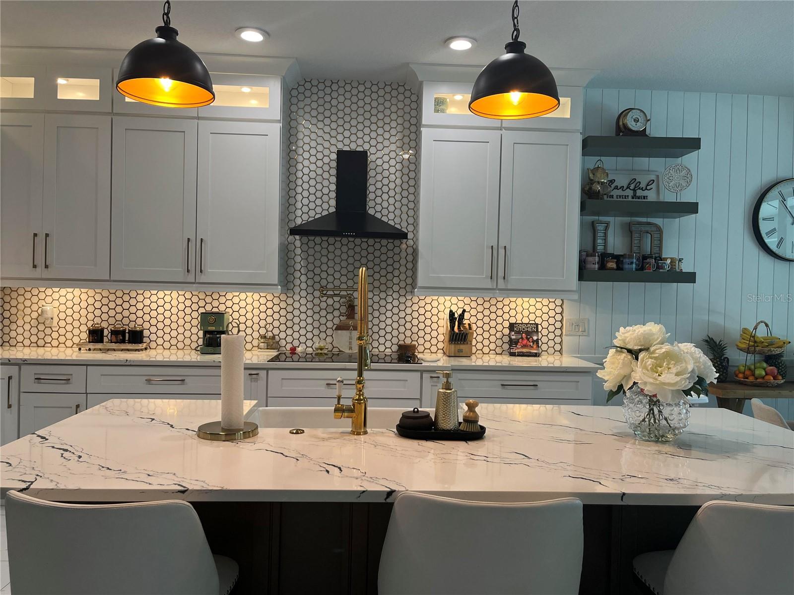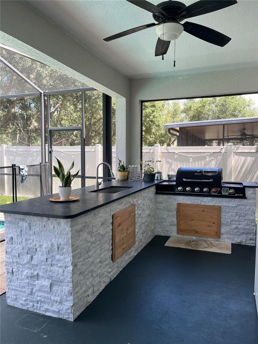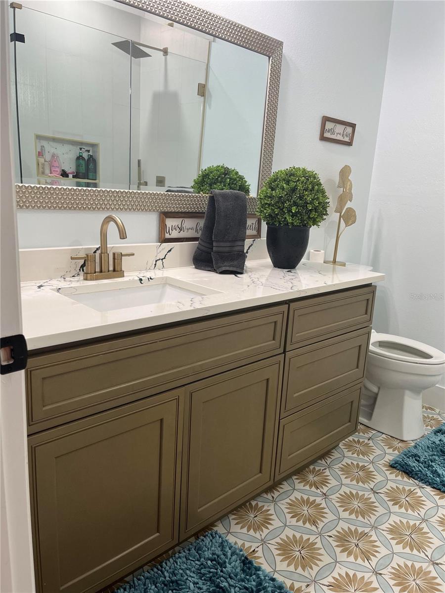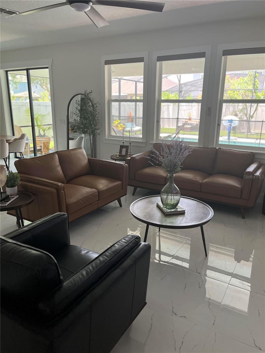 This home has it ALL! 5 Bedroom/3 Bath POOL home located in beautiful Waterside Pointe. This gated waterfront community offers resort style living with private lake access, a 2 story waterslide with community pool, fitness center, pool table, tennis, basketball, playgrounds, and clubhouse that's available to rent for private parties.. Upgrades are plentiful and this gorgeous two story home is completely move in ready! With built in entertainment and electric fire chimney. You will enter the home through the covered porch, you will find an Office/Den, a great room living area complete with a fully upgraded kitchen with built in pantry, Cambria , a downstairs bedroom and full bathroom, large storage (second pantry) under the stairs, a dining area with slider to the screened-in 30' x 14' salt water pool and lanai. The spacious lanai offers double fans/lights, electric with separate panel for hot tub, wired for television. The back yard is fenced-in. with Artificial grass! Upstairs you'll find the master bedroom and master bath, 3 more bedrooms, a loft/media room/game room, and a utility room complete with cabinets with a clothes folding area added! Upgrades to this home include large kitchen cabinets, quartz counter tops, stainless steel appliances, fan hood, backsplash with under cabinet lighting. You will love the new tile floors throughout! There is plenty of storage space and walk in closets, french doors in the den, 2 inch blinds, TV and phone connections in every room and on the lanai. There's plenty more upgrades! Great price!! Wont last long!!