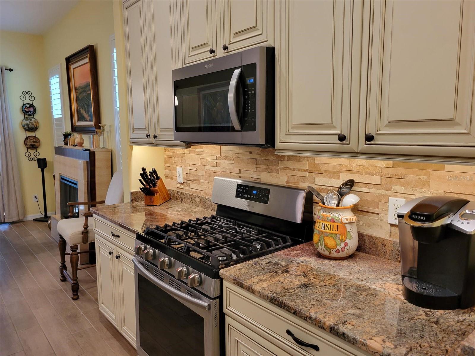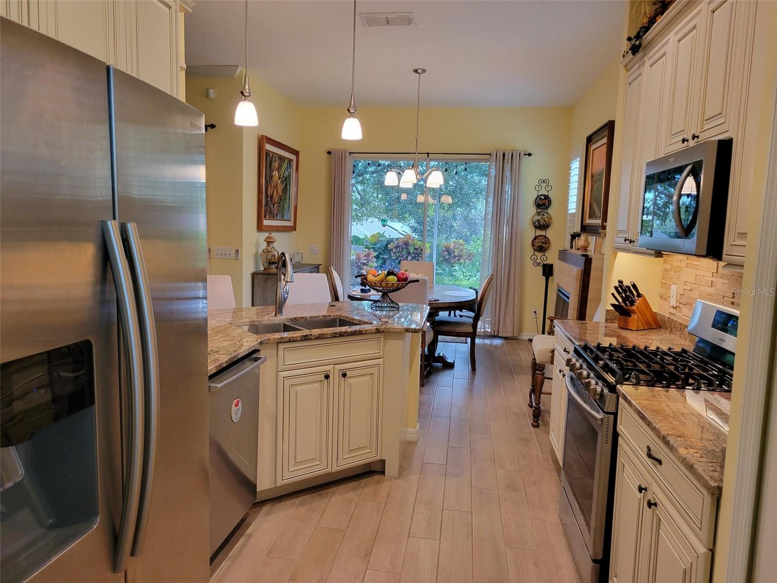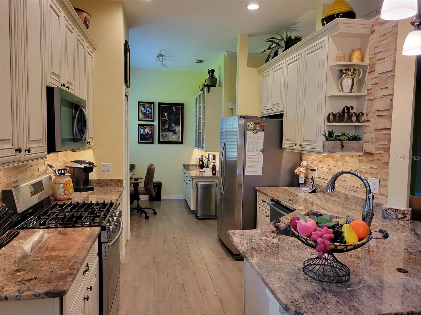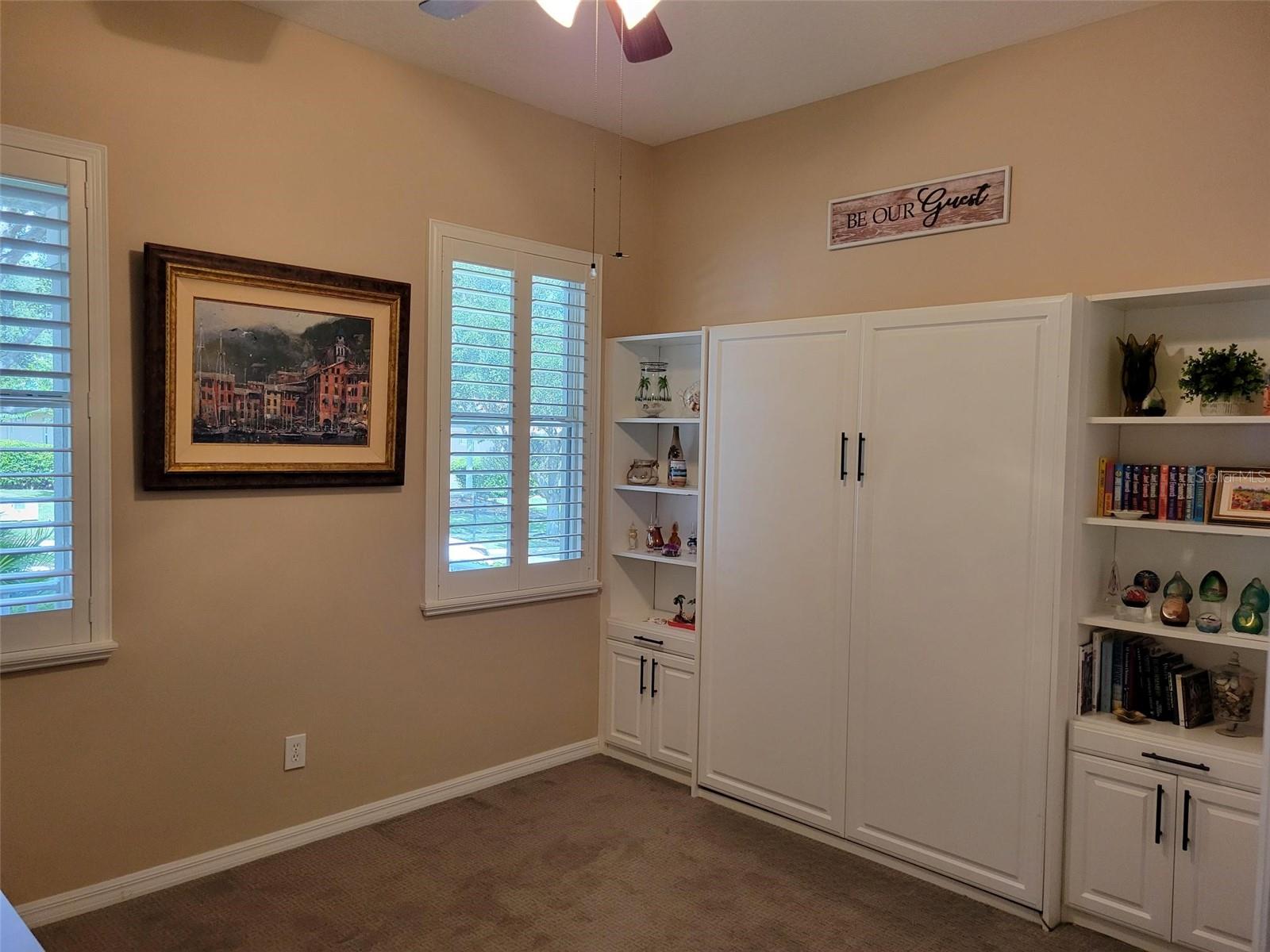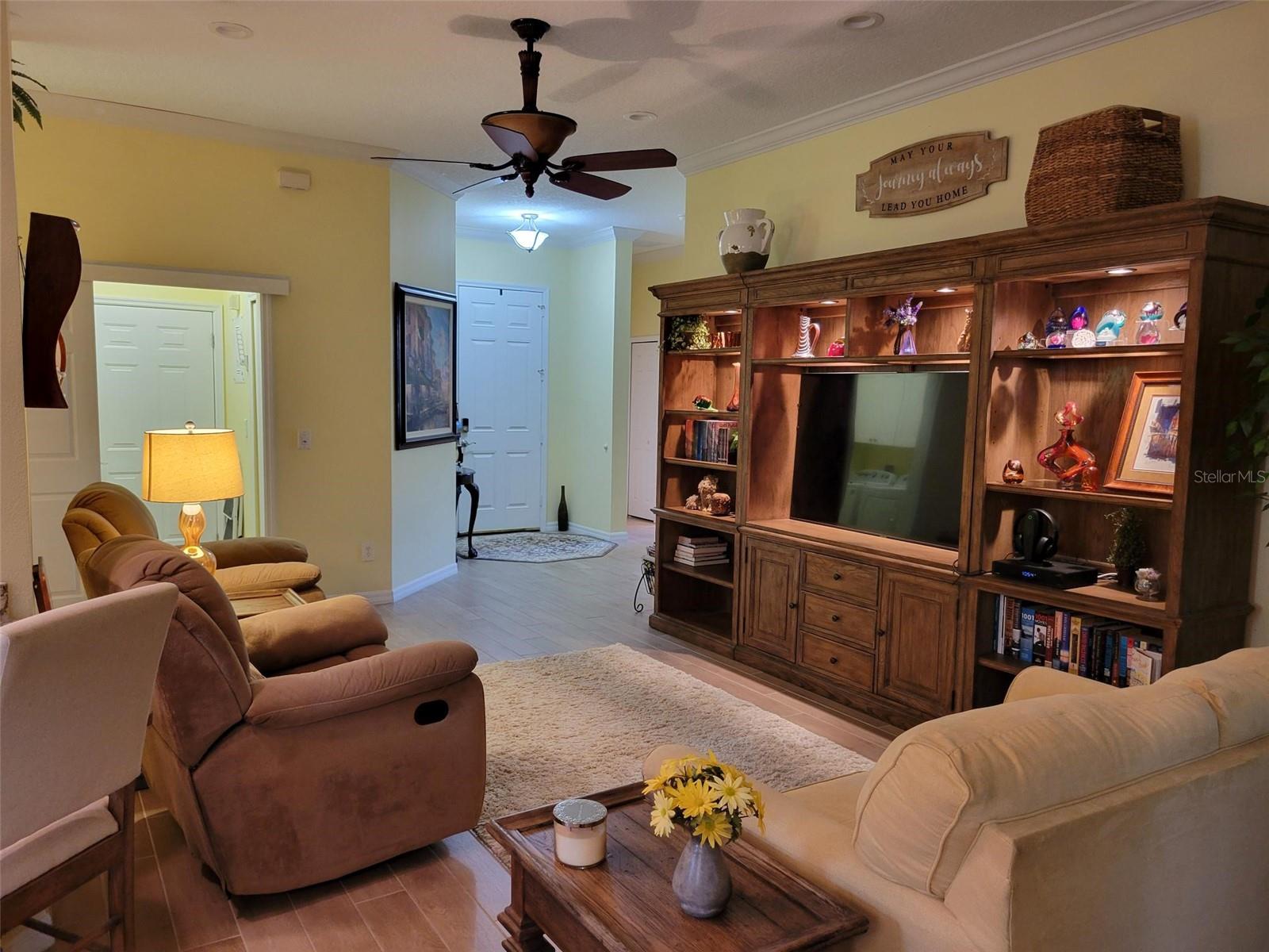 Welcome to this lovely Charlotte floorplan with 2 bedrooms/ 2 baths plus den home in the 55+ guard gated Trilogy Orlando (Cascades of Groveland) community. This awesome home is enhanced with plantation shutters throughout and porcelain plank wood look tile in the living areas. The home has been handicapped modified with widened doorways for ease of access. Doors are widened in the master bedroom & bathroom, guest bath and from the garage and laundry room. The master shower is fully handicap accessible (walk in or roll in). It is equipped with a dual shower system, grab bars, custom tile and tub. There is a custom built-in murphy bed system in the 2nd bedroom. The den/office room offers flexible space with doors for privacy. The kitchen is completely remodeled with granite countertops, wood cabinets, natural gas stove and included appliances. There is also a second desk area/office off the kitchen that also can serve as a bar area. This highly desirable floorplan features a front porch with screened entry to the front door. The foyer leads to the living room with views of the lanai and private backyard. The formal dining room is perfect for special occasions with the ambiance of the electric fireplace and overlooks the backyard through a second set of sliding glass doors. The screened lanai offers year-round enjoyment with a garden view. Enjoy the fact that the location is a short walk to the 57,000 square foot state of the art Magnolia House clubhouse which features a full-service restaurant and bar, fitness center, indoor and outdoor pools, spas, demonstration kitchen, massage room, dance studio, poker lounge, a golf simulator, billiards, countless planned activities, 50 active member-led clubs and more. Outdoor recreational amenities include a dog park, tennis, pickleball, basketball and bocce ball and walking trails. The community life is vibrant, with fitness classes such as Aqua Fit and Zumba, various arts and crafts opportunities, numerous social clubs and regular themed parties and group excursions. The dining scene within the community is geared towards health-conscious individuals and also provides casual spots for socializing. The community is in close proximity to area dining, shopping and medical facilities in Clermont or Leesburg and easy access to the Florida Turnpike. HOA dues include Spectrum Cable & high-speed internet, land line phone, security system and lawn care. Call now to schedule your tour!