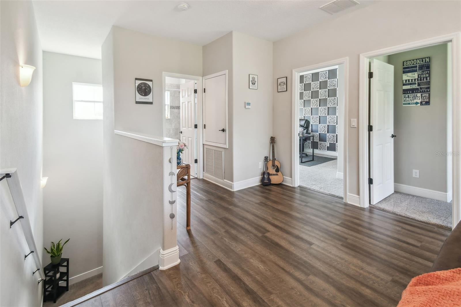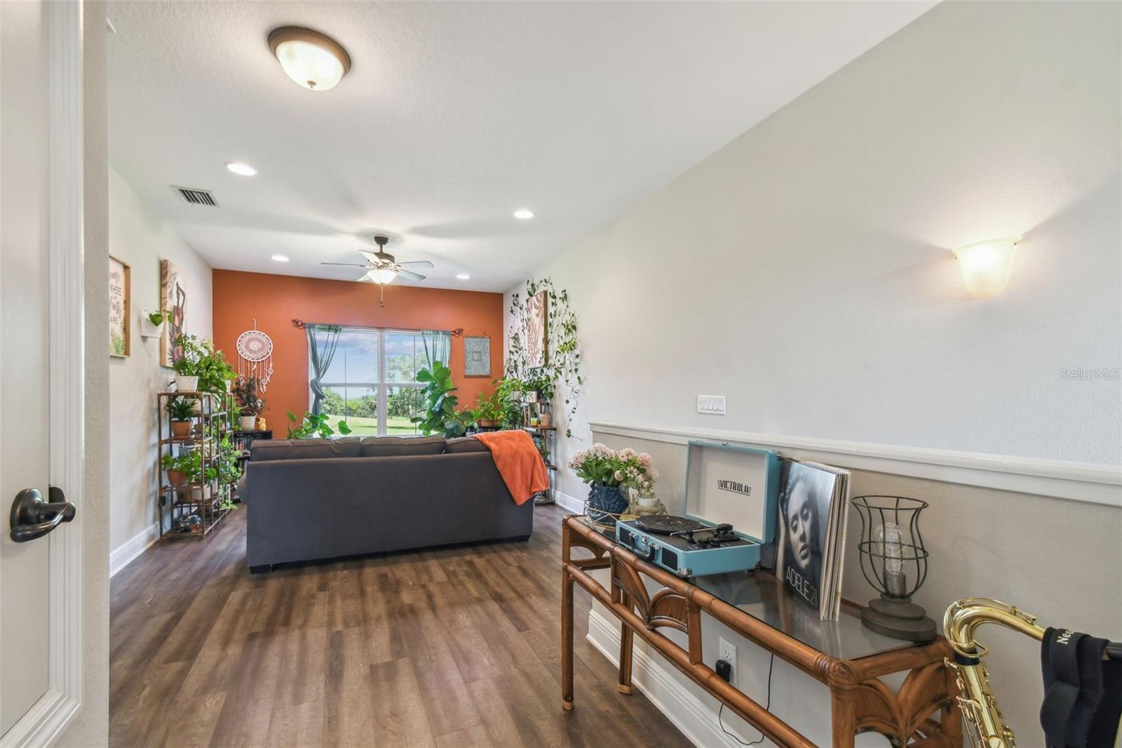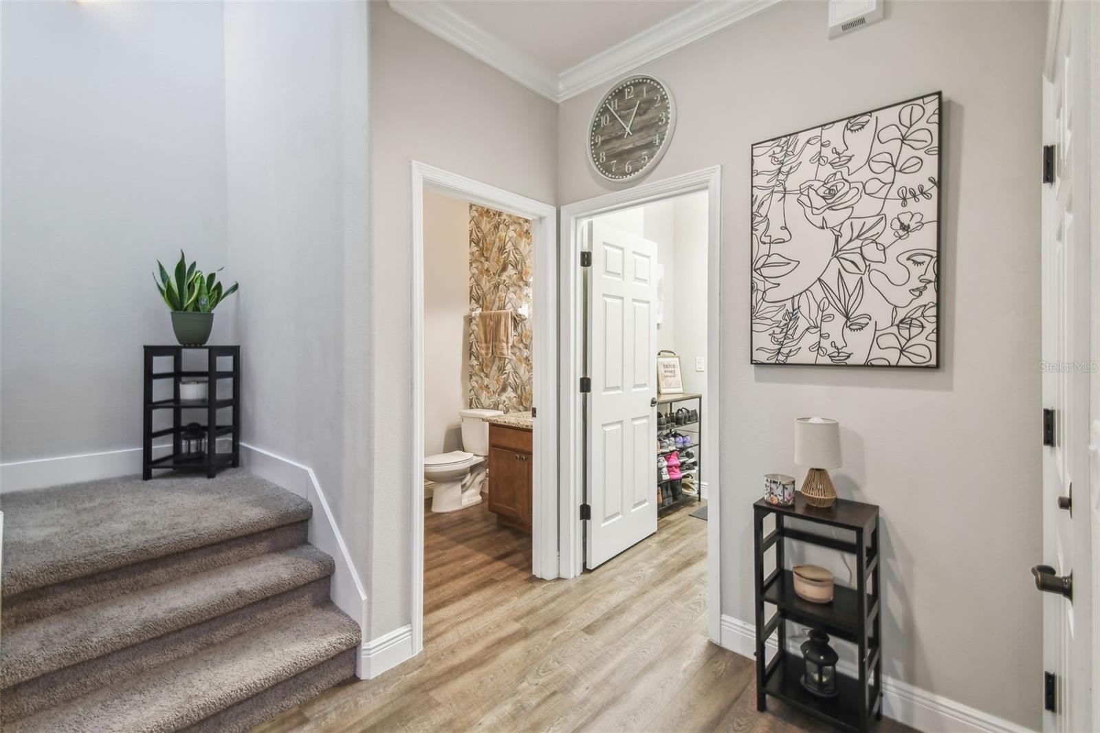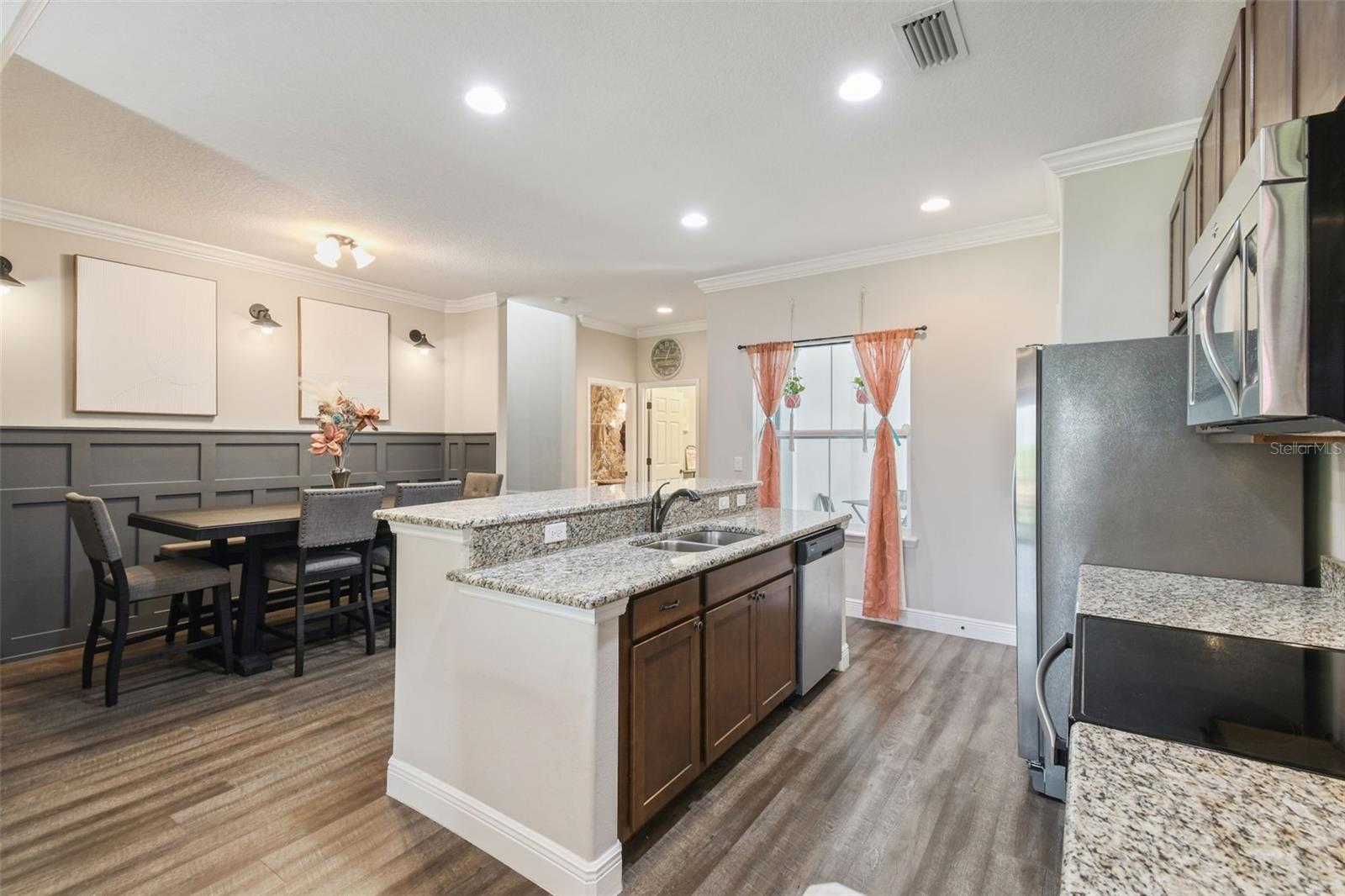 HUGE PRICE IMPROVEMENT!!! UNDER MARKET VALUE! Stunning 3 bedroom, 2 bath, 2 car garage townhome in Groveland - just minutes to downtown Clermont! This home shows like a model!! From the moment you pull up to this spacious 2 story home, you'll appreciate the extra parking lot across the street as well as the large cul de sac from added privacy at the end of this street. Walking up to the front door, you'll just love the covered courtyard beyond the gate, perfect for quiet mornings to enjoy your coffee and a good book! Right as you enter inside you're greeted with beautiful luxury vinyl floors, high ceilings and elegant crown molding throughout the main living areas downstairs. The kitchen boars of a large island with breakfast bar, perfect for entertaining! The warm tone cabinets go perfectly with the granite countertops and stainless steel appliances. The large window to the courtyard brings in lots of natural light. Across is the dining room with beautiful wood accents and extra lighting. There's even a hidden storage nook under the stairs if you look closely! The guest bath is perfectly decorated with modern finishes. The living room features a beautiful tray ceiling with added recessed lights, giving the room a very grand and elegant feel. The primary suite is just off the back of the home, featuring a tray ceiling with recessed lights and a double window overlooking the golf course that brings in tons of natural light. The ensuite bath features dual vanities with granite counters and upgraded accents on the mirror. The oversized tile shower with a bench is gorgeous with the glass enclosure and bronze fixtures. The enclosed water closet and large walk in closet help complete the room. Upstairs, you're greeted with high ceilings and a bright and airy loft that overlooks the golf course. There are two large secondary bedrooms with great sized closets. The shared hall bathroom features a beautiful tiled tub/shower and window. The vanity is also upgraded with granite counters and modern finishes. If you enjoy outdoor space, you can also enjoy cool evenings in the fully screened in lanai in the bath. You've got private views in the back with no rear neighbors! The best part is this townhome couldn't be more centrally located. Here you're just minutes from the Clermont border, with downtown Clermont just 5 minutes away! You'll be only 4 minutes away from the soon to be revitalized downtown Groveland!! It's truly one of the best spots to be in town! Call today for your own private tour!