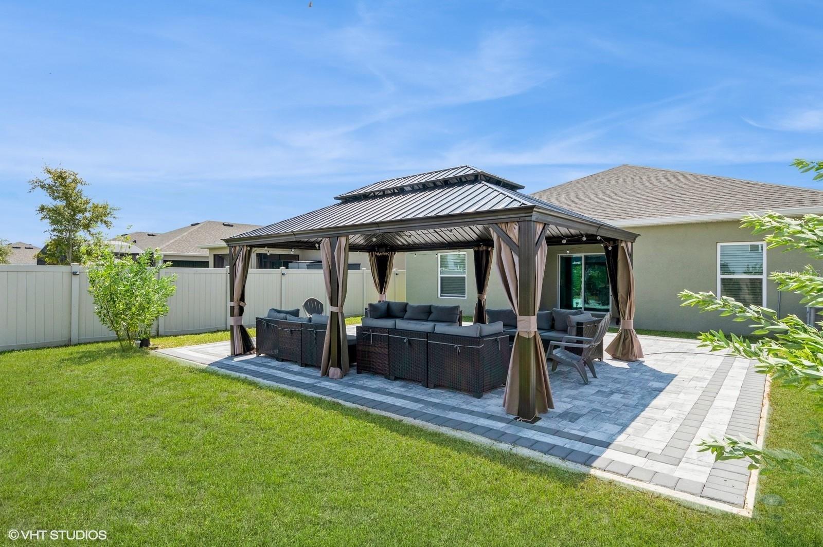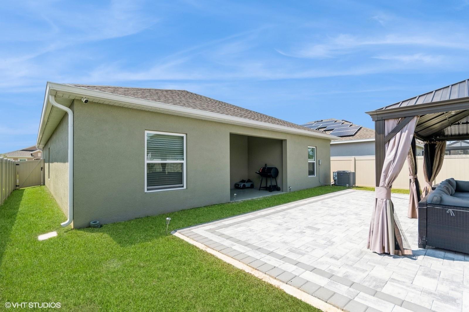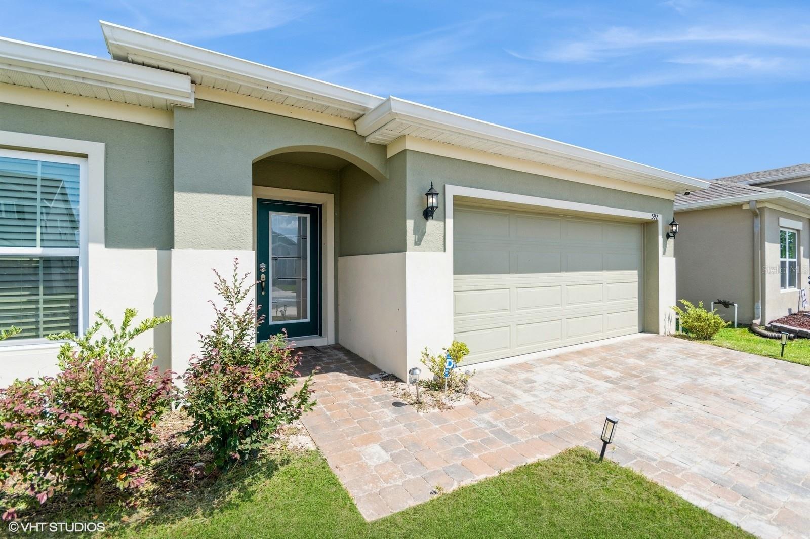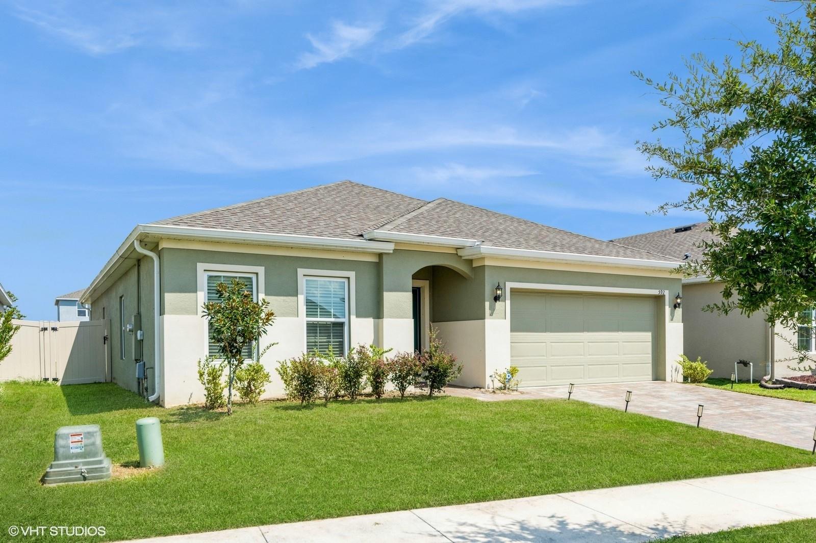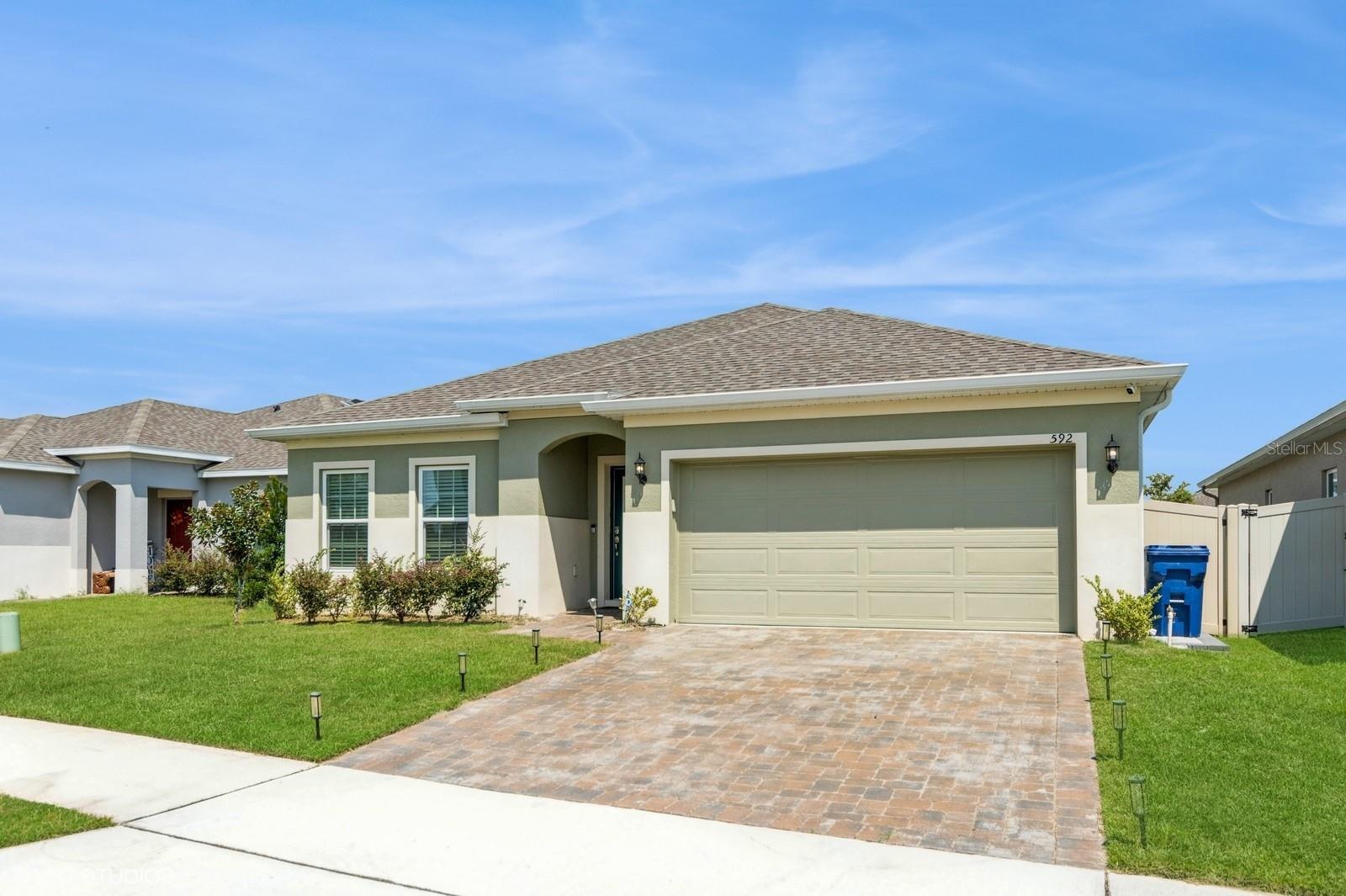 SELLER MOTIVATED! PRICE IMPROVEMENT!! Own your own piece of paradise with this gorgeous 4 Bedroom 2 Bath home with a lot of beautiful upgrades! Tons of curb appeal from the moment you pull into the paver driveway! Right as you walk inside you'll love the luxury tile floors and modern black and gray tones throughout the main living areas. All four bedrooms are equipped with high quality ceiling fans. The master bedroom is tucked away and very spacious. Once you enter the great room you'll get that wow factor!! The home boasts beautiful 3D wood panel art throughout the living room, dining room, and two of the bedrooms! The kitchen features 42" cabinets with champagne gold hardware and crown molding, a beautiful modern subway tile backsplash, granite counters, upgraded lighting, and a deep stainless steel sink. The kitchen island overlooks the great room with space for seating up to four. You'll really appreciate the double sized pantry! The dining table is perfectly located off the kitchen with a window for natural light. Towards the back is the primary retreat with a spacious bedroom and ensuite bath! The bathroom features granite counters and lots of cabinet space. The large frameless shower features a rain shower head and decorative listello. Plus a full window for lots of natural light! The walk in closet is massive too! Plenty of room to share! The interior laundry room is right across from the garage and has lots of space for cabinets and extra storage. Enjoy your privacy in the fully fenced in back yard where you can entertain and enjoy cool summer nights under the pergola with friends and family. This community has incredible amenities including a community pool & clubhouse, two playgrounds, three parks & picnic areas, and lots of walking trails to enjoy scenic walks around the community! LOW HOA, and NO CDD! Schedule your private showing today! This one won’t last!
