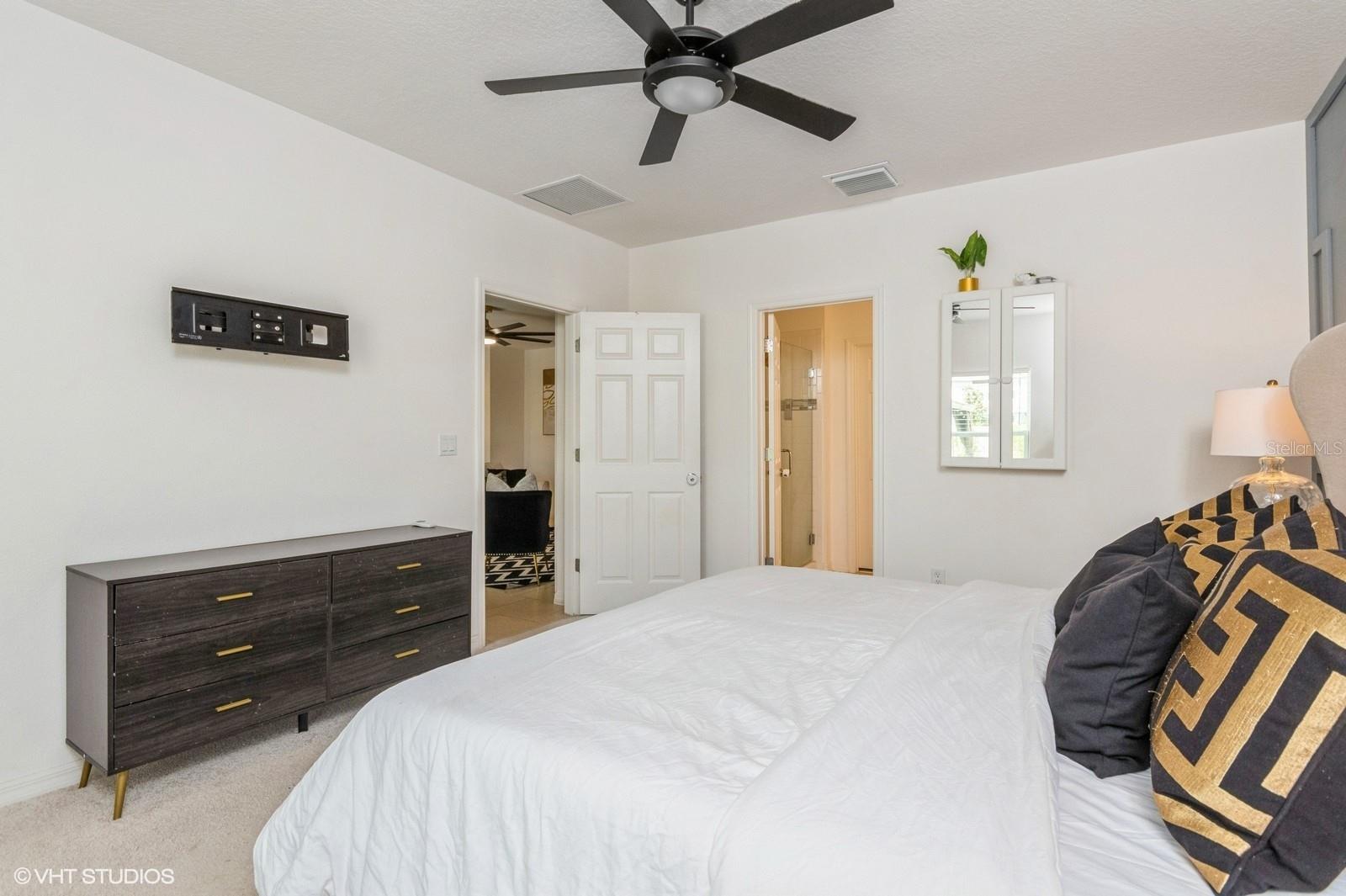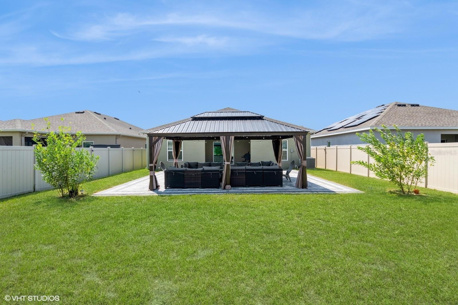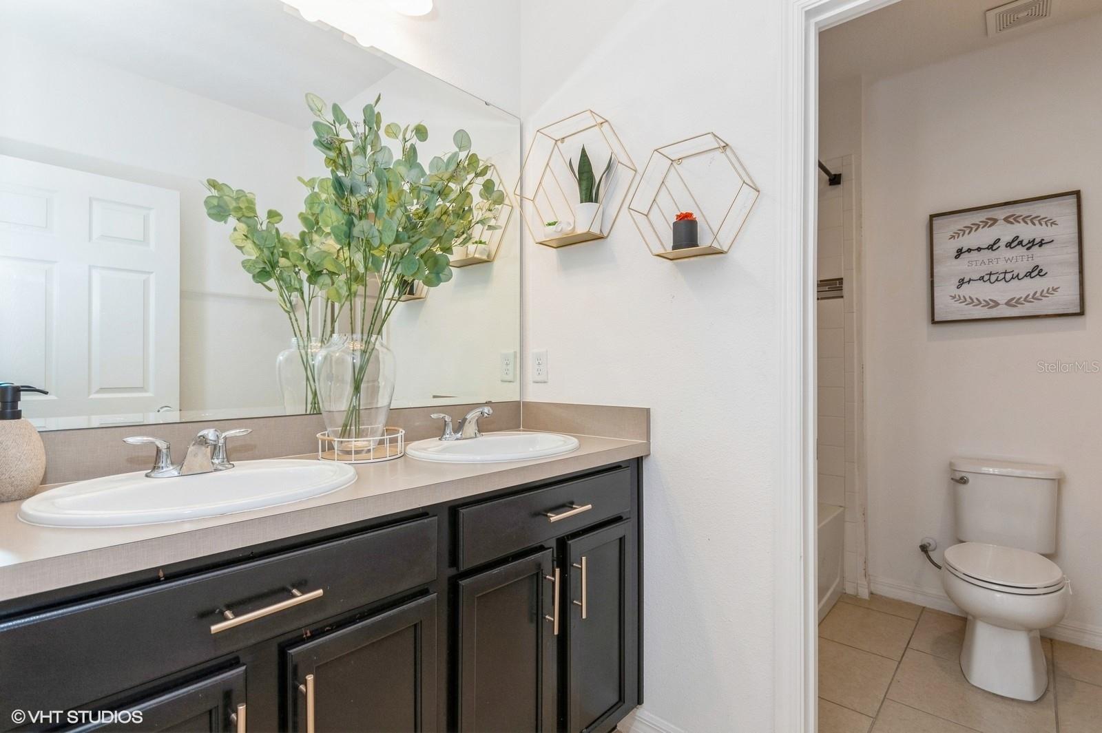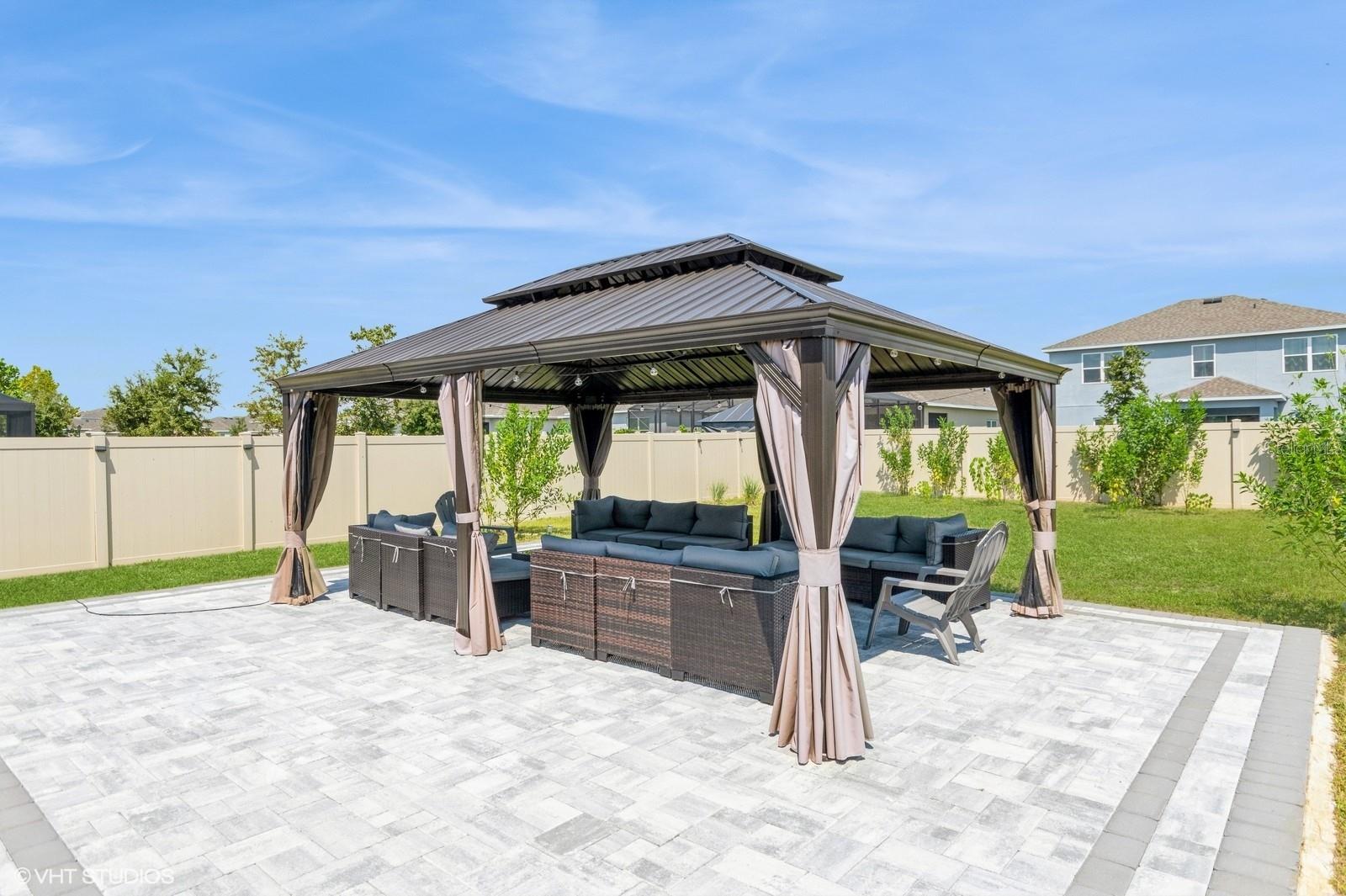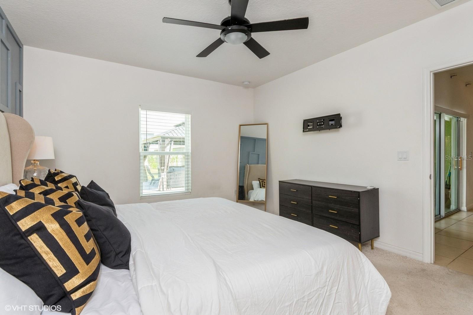 SELLER MOTIVATED! PRICE IMPROVEMENT!! Own your own piece of paradise with this gorgeous 4 Bedroom 2 Bath home with a lot of beautiful upgrades! Tons of curb appeal from the moment you pull into the paver driveway! Right as you walk inside you'll love the luxury tile floors and modern black and gray tones throughout the main living areas. All four bedrooms are equipped with high quality ceiling fans. The master bedroom is tucked away and very spacious. Once you enter the great room you'll get that wow factor!! The home boasts beautiful 3D wood panel art throughout the living room, dining room, and two of the bedrooms! The kitchen features 42" cabinets with champagne gold hardware and crown molding, a beautiful modern subway tile backsplash, granite counters, upgraded lighting, and a deep stainless steel sink. The kitchen island overlooks the great room with space for seating up to four. You'll really appreciate the double sized pantry! The dining table is perfectly located off the kitchen with a window for natural light. Towards the back is the primary retreat with a spacious bedroom and ensuite bath! The bathroom features granite counters and lots of cabinet space. The large frameless shower features a rain shower head and decorative listello. Plus a full window for lots of natural light! The walk in closet is massive too! Plenty of room to share! The interior laundry room is right across from the garage and has lots of space for cabinets and extra storage. Enjoy your privacy in the fully fenced in back yard where you can entertain and enjoy cool summer nights under the pergola with friends and family. This community has incredible amenities including a community pool & clubhouse, two playgrounds, three parks & picnic areas, and lots of walking trails to enjoy scenic walks around the community! LOW HOA, and NO CDD! Schedule your private showing today! This one won’t last!
