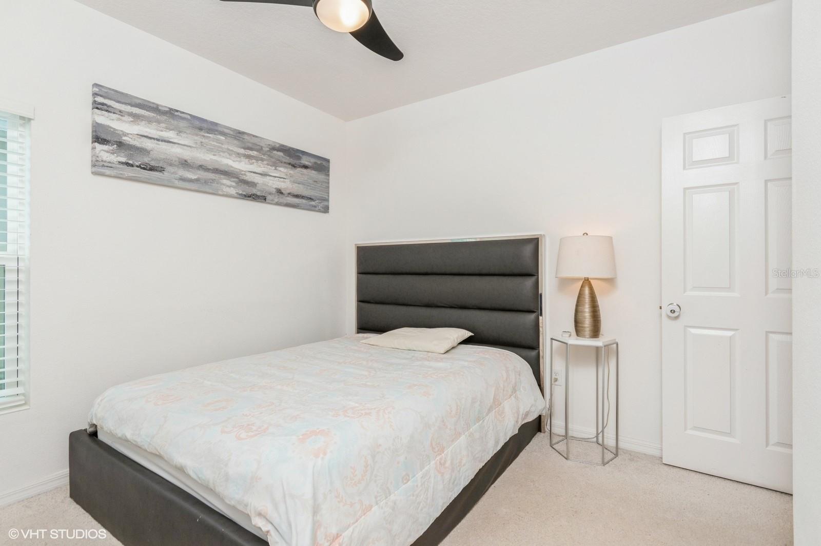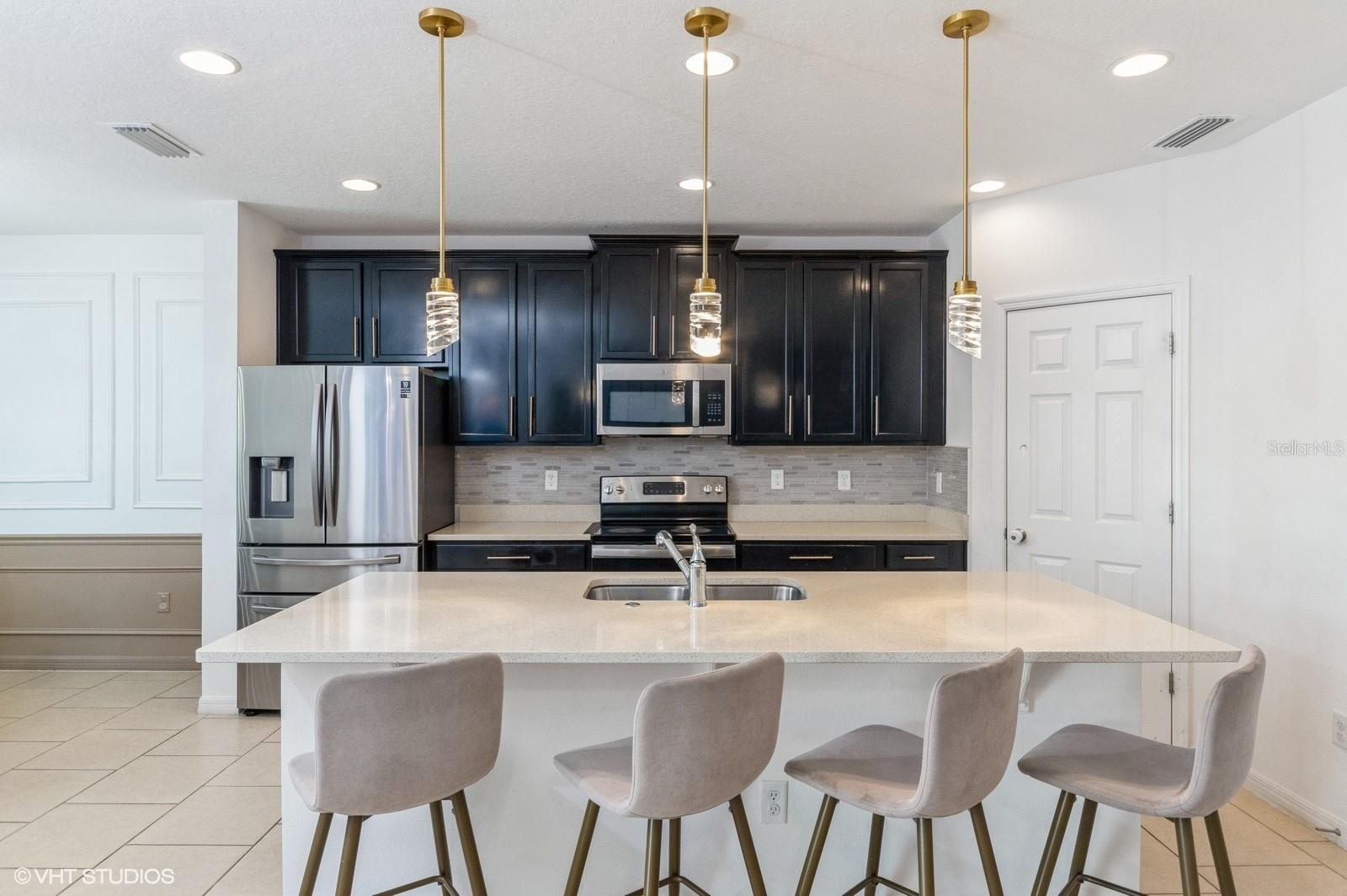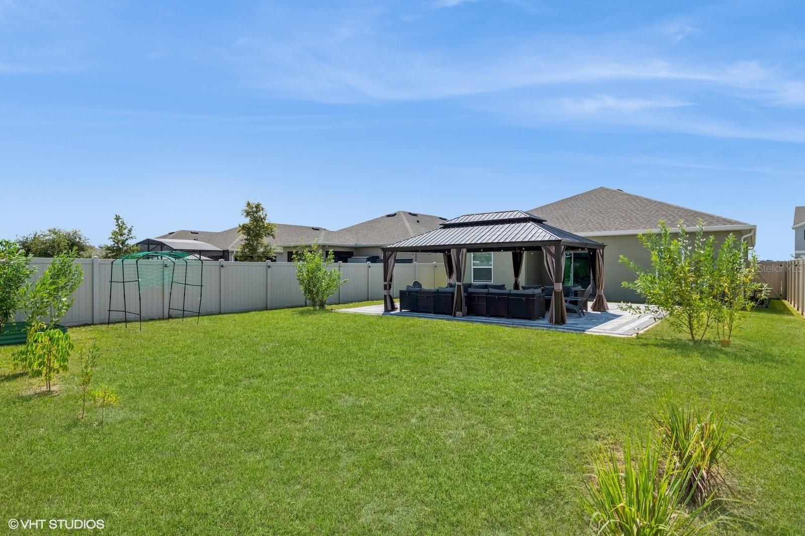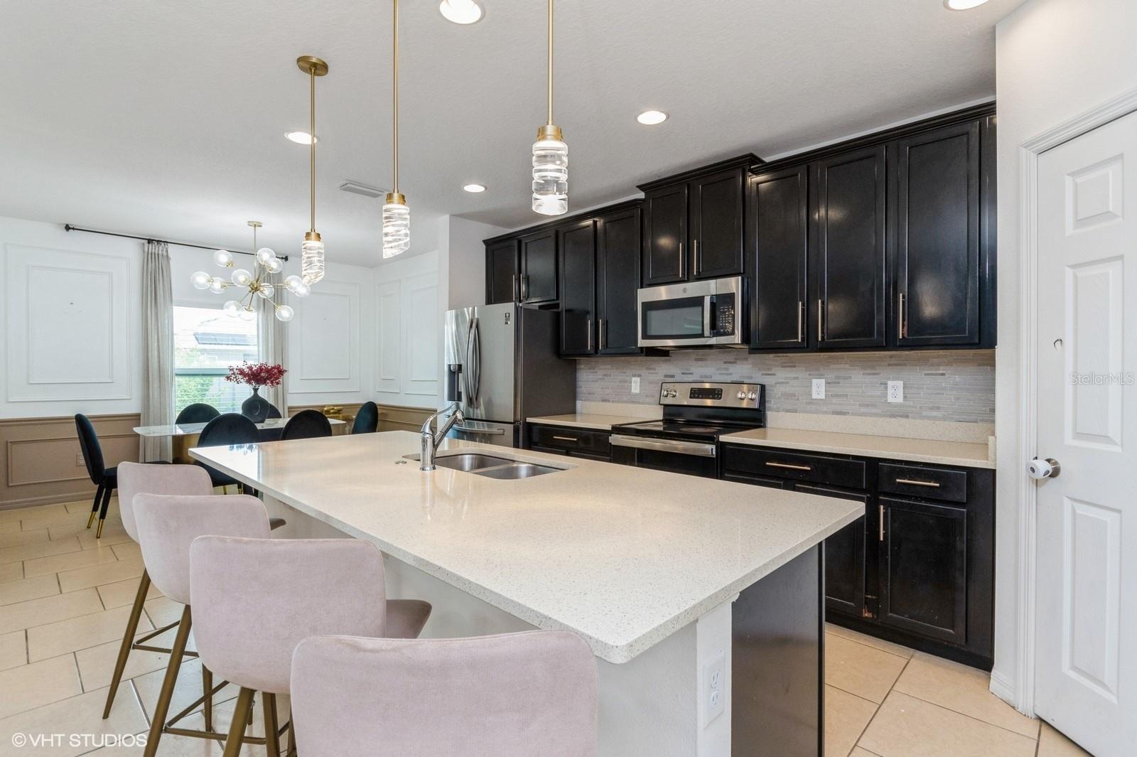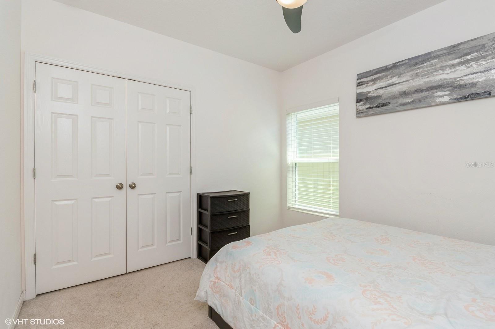 SELLER MOTIVATED! PRICE IMPROVEMENT!! Own your own piece of paradise with this gorgeous 4 Bedroom 2 Bath home with a lot of beautiful upgrades! Tons of curb appeal from the moment you pull into the paver driveway! Right as you walk inside you'll love the luxury tile floors and modern black and gray tones throughout the main living areas. All four bedrooms are equipped with high quality ceiling fans. The master bedroom is tucked away and very spacious. Once you enter the great room you'll get that wow factor!! The home boasts beautiful 3D wood panel art throughout the living room, dining room, and two of the bedrooms! The kitchen features 42" cabinets with champagne gold hardware and crown molding, a beautiful modern subway tile backsplash, granite counters, upgraded lighting, and a deep stainless steel sink. The kitchen island overlooks the great room with space for seating up to four. You'll really appreciate the double sized pantry! The dining table is perfectly located off the kitchen with a window for natural light. Towards the back is the primary retreat with a spacious bedroom and ensuite bath! The bathroom features granite counters and lots of cabinet space. The large frameless shower features a rain shower head and decorative listello. Plus a full window for lots of natural light! The walk in closet is massive too! Plenty of room to share! The interior laundry room is right across from the garage and has lots of space for cabinets and extra storage. Enjoy your privacy in the fully fenced in back yard where you can entertain and enjoy cool summer nights under the pergola with friends and family. This community has incredible amenities including a community pool & clubhouse, two playgrounds, three parks & picnic areas, and lots of walking trails to enjoy scenic walks around the community! LOW HOA, and NO CDD! Schedule your private showing today! This one won’t last!