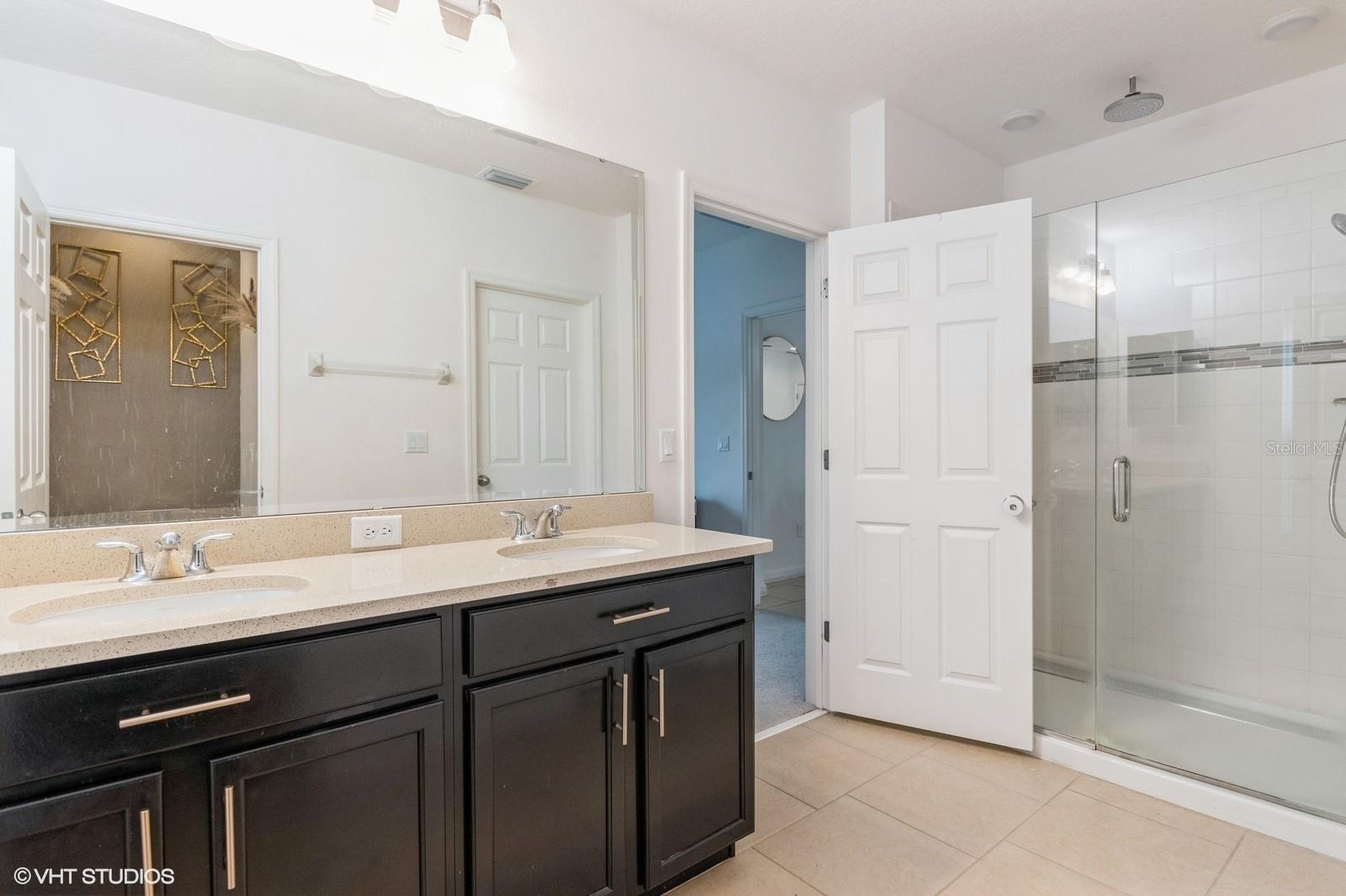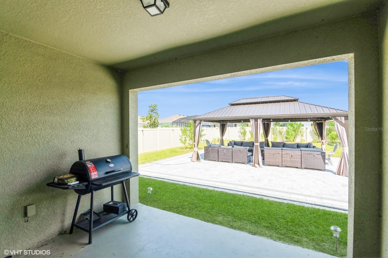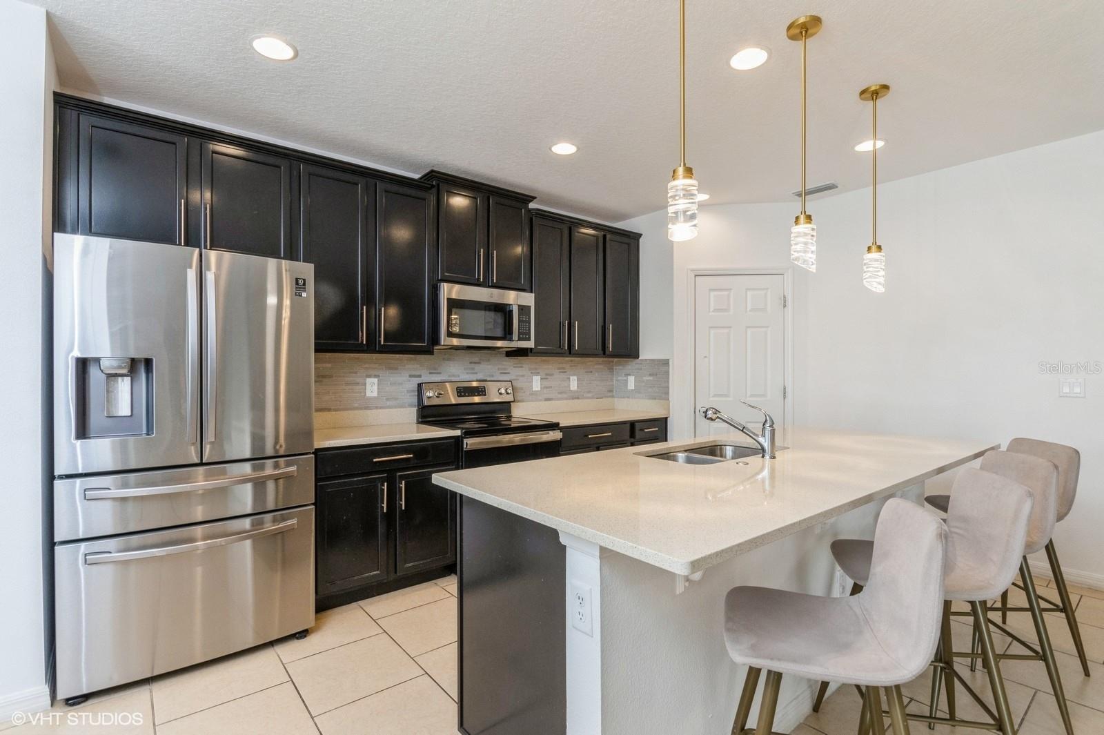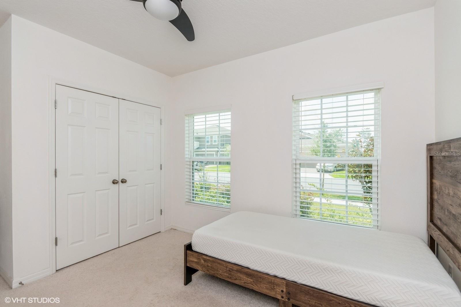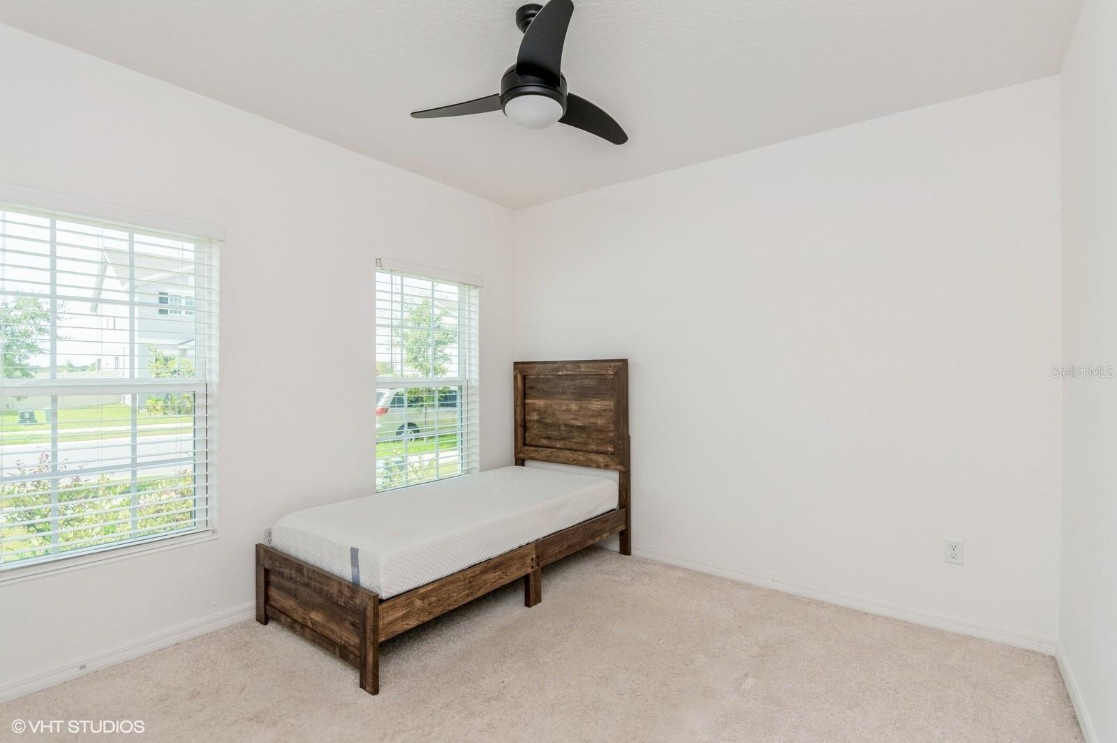 SELLER MOTIVATED! PRICE IMPROVEMENT!! Own your own piece of paradise with this gorgeous 4 Bedroom 2 Bath home with a lot of beautiful upgrades! Tons of curb appeal from the moment you pull into the paver driveway! Right as you walk inside you'll love the luxury tile floors and modern black and gray tones throughout the main living areas. All four bedrooms are equipped with high quality ceiling fans. The master bedroom is tucked away and very spacious. Once you enter the great room you'll get that wow factor!! The home boasts beautiful 3D wood panel art throughout the living room, dining room, and two of the bedrooms! The kitchen features 42" cabinets with champagne gold hardware and crown molding, a beautiful modern subway tile backsplash, granite counters, upgraded lighting, and a deep stainless steel sink. The kitchen island overlooks the great room with space for seating up to four. You'll really appreciate the double sized pantry! The dining table is perfectly located off the kitchen with a window for natural light. Towards the back is the primary retreat with a spacious bedroom and ensuite bath! The bathroom features granite counters and lots of cabinet space. The large frameless shower features a rain shower head and decorative listello. Plus a full window for lots of natural light! The walk in closet is massive too! Plenty of room to share! The interior laundry room is right across from the garage and has lots of space for cabinets and extra storage. Enjoy your privacy in the fully fenced in back yard where you can entertain and enjoy cool summer nights under the pergola with friends and family. This community has incredible amenities including a community pool & clubhouse, two playgrounds, three parks & picnic areas, and lots of walking trails to enjoy scenic walks around the community! LOW HOA, and NO CDD! Schedule your private showing today! This one won’t last!