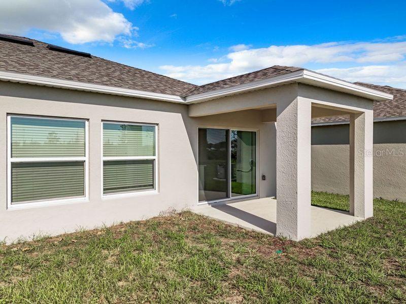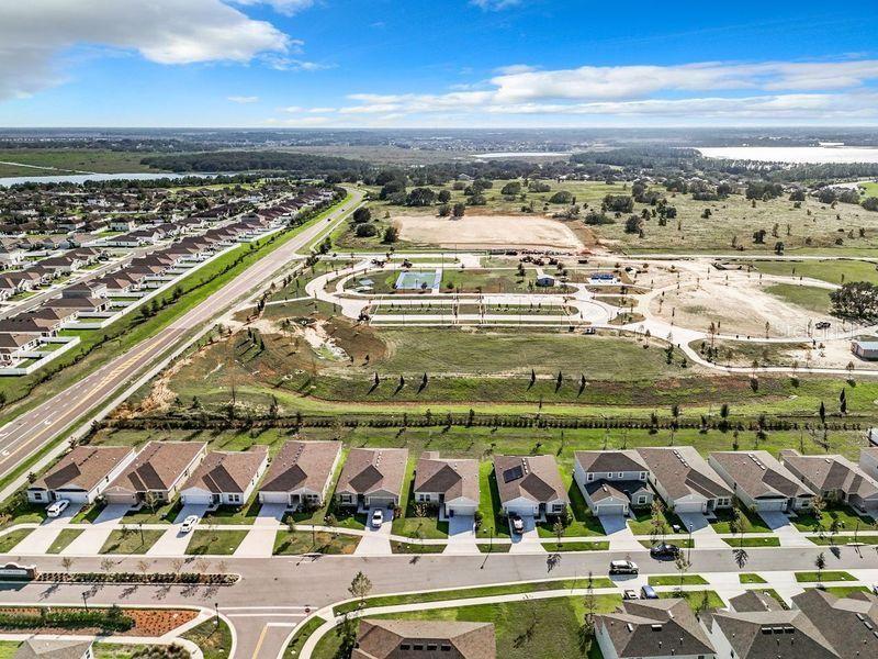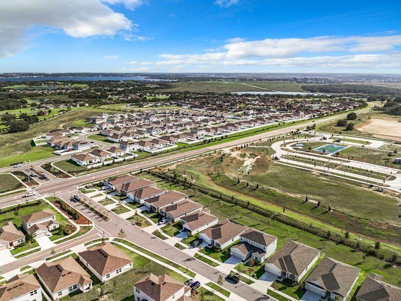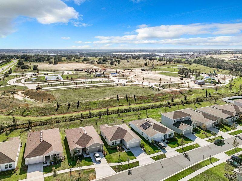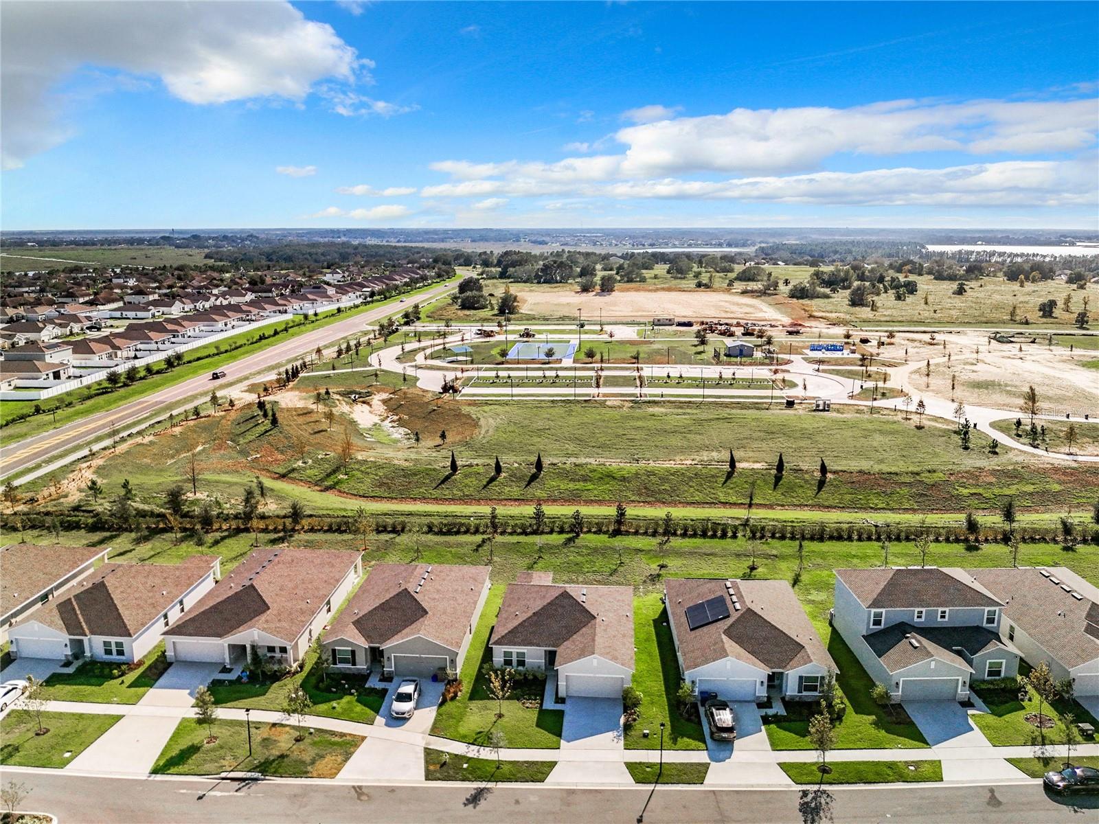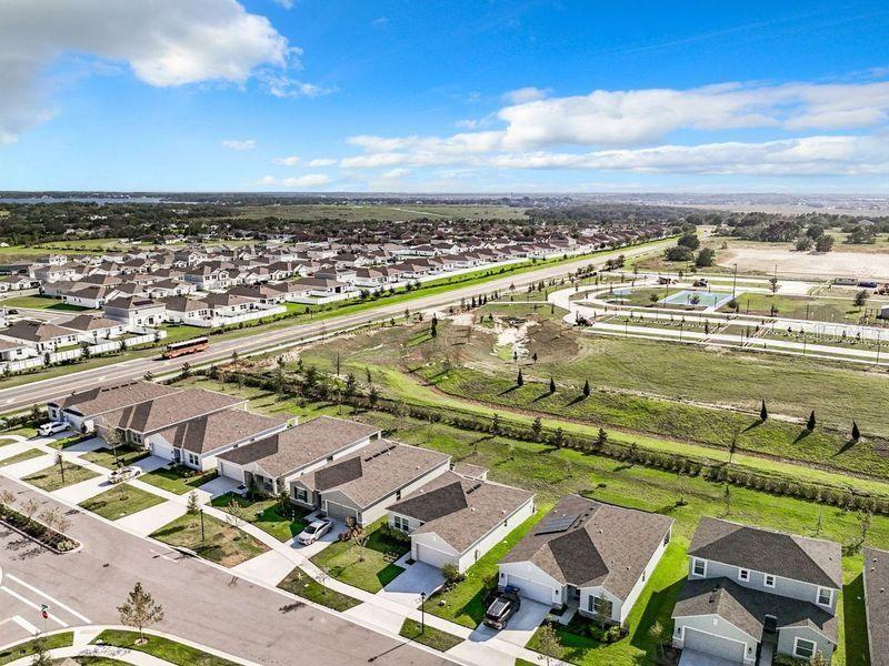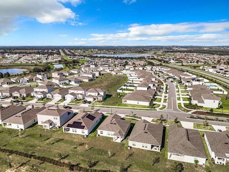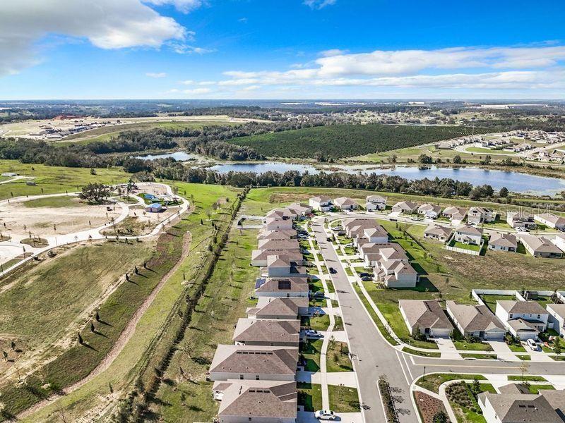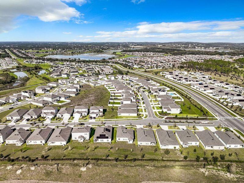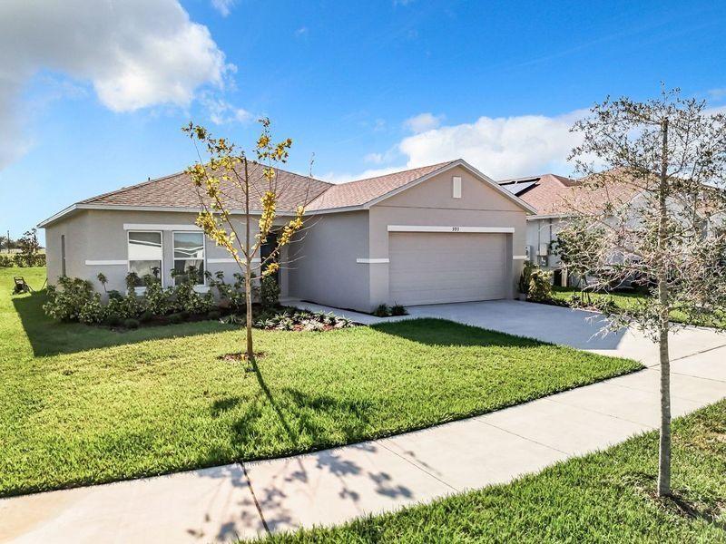 Welcome to The Ambrosia at Parkside at Cherry Lake – a thoughtfully crafted single-story home that perfectly balances space and comfort. The entryway leads to an open-concept dining and gathering room, seamlessly flowing into a bright, modern kitchen with a sliding glass door that opens to the back patio. The generous primary suite, located in a quiet corner opposite the secondary bedrooms, provides a peaceful retreat. The primary bath features dual sinks, vanities, a large shower, a spacious walk-in closet, and an extra linen closet for added storage. Relax on the covered lanai and enjoy the extended tile package throughout the main living areas. Best of all, this home is move-in ready—no need to wait for construction!