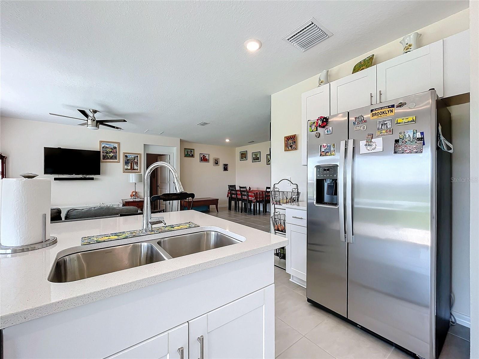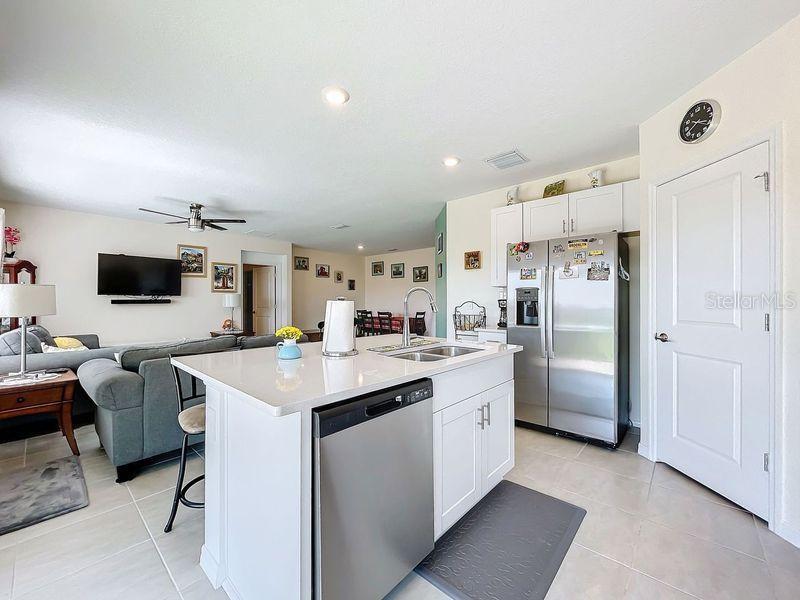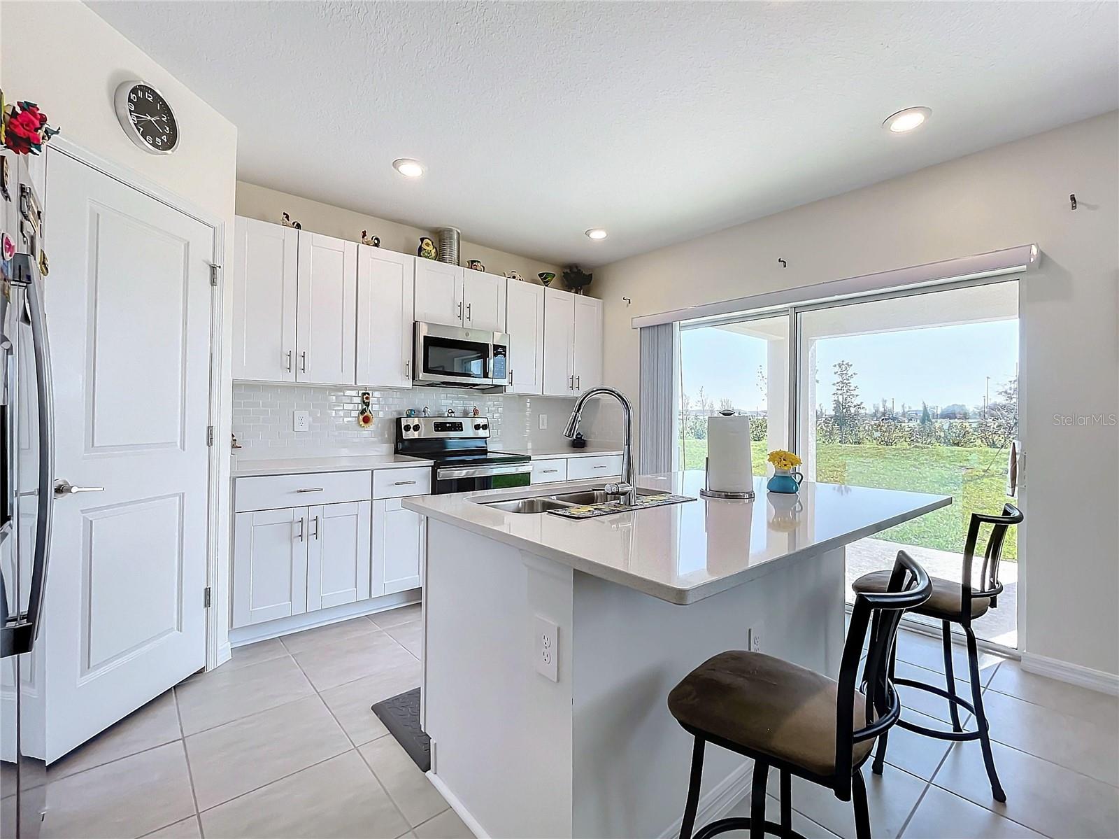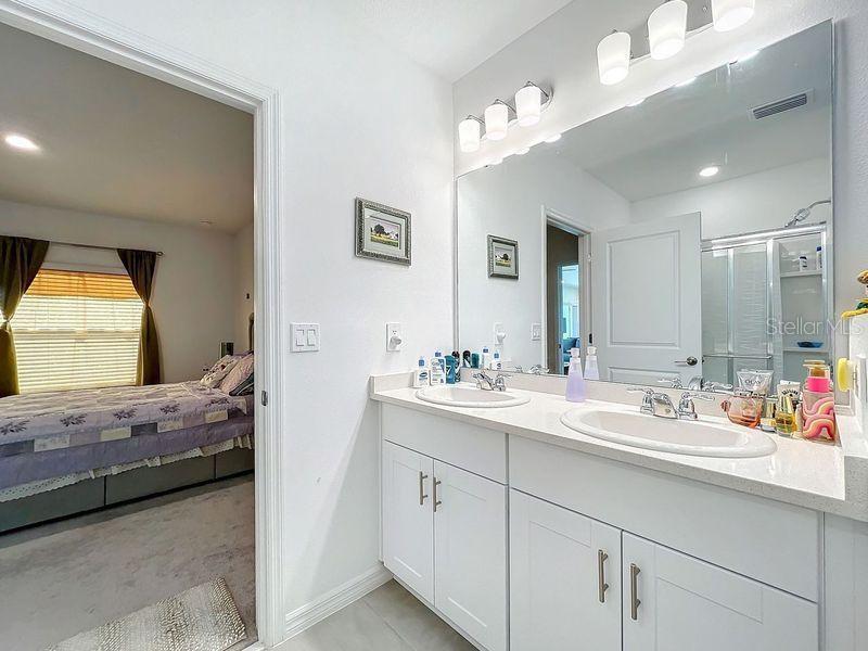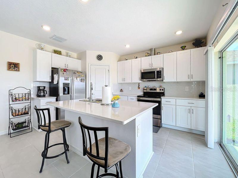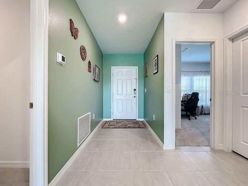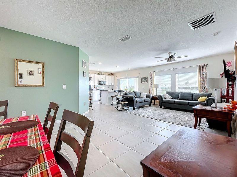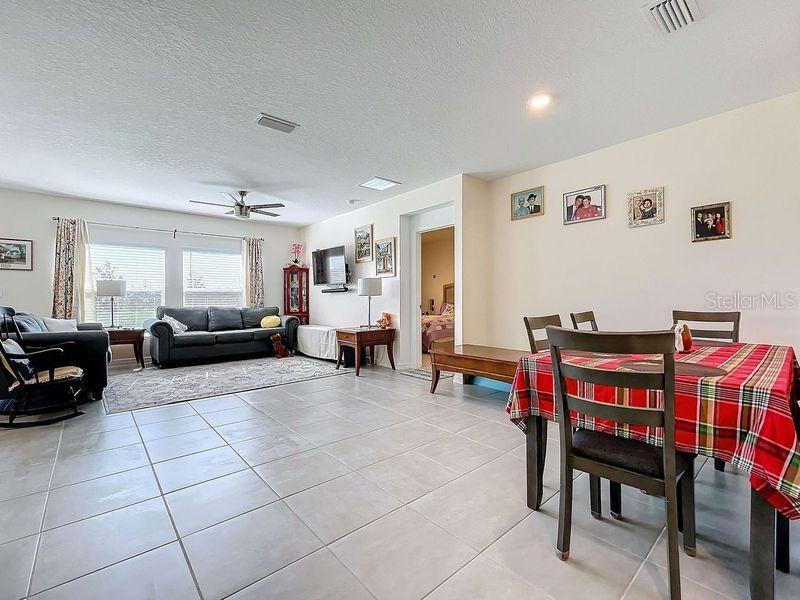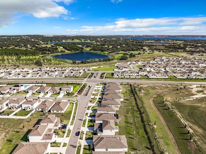 Welcome to The Ambrosia at Parkside at Cherry Lake – a thoughtfully crafted single-story home that perfectly balances space and comfort. The entryway leads to an open-concept dining and gathering room, seamlessly flowing into a bright, modern kitchen with a sliding glass door that opens to the back patio. The generous primary suite, located in a quiet corner opposite the secondary bedrooms, provides a peaceful retreat. The primary bath features dual sinks, vanities, a large shower, a spacious walk-in closet, and an extra linen closet for added storage. Relax on the covered lanai and enjoy the extended tile package throughout the main living areas. Best of all, this home is move-in ready—no need to wait for construction!