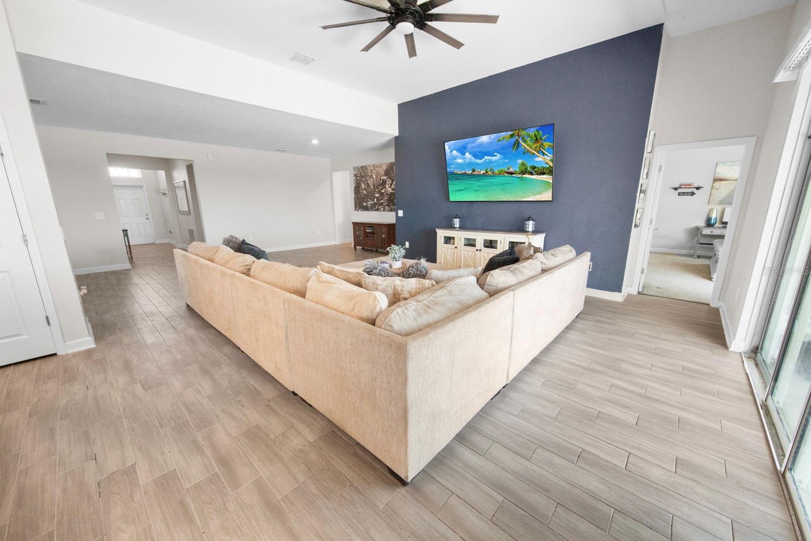 LARGEST 1 STORY IN THIS PRICE POINT WITH LAKE ACCESS & RESORT AMENITIES! The Newcastle Floor plan by Lennar is SOLD OUT!!! Built in 2022, this sprawling one story has 4 bedrooms, 3 full baths and over 2,600 sq ft of living space! This amazing neighborhood has more for the money than any other! Live in a direct lake access resort style community that sits on the shores of Lake Emma, part of the North Chain. Enjoy picnics and fishing off the dock just a short bike ride from your front door! Afterwards cool off in the amazing pool and splash pad! This playful community has family friendly events year round as well as a clubhouse, fitness center, playground and dog park! Truly the most amenities, square footage and perks for the price point!!!!! This attractive and functional floor plan all centers around a massive great room giving the formal dining room, kitchen, dinette and covered lanai have a cohesive flow. An ideal place for entertaining with high ceilings and plenty of elbow room! Large glass sliders and multiple windows peer out towards the fenced backyard and the hilly terrain of the Cherry Lake Tree Farm! You’ll absolutely love the clean lines of the white kitchen with tons of storage, a huge island and breakfast bar. Gray quartz countertops are the perfect pairing and look fantastic with the neutral wood look tile. The primary bath has a lovely walk in shower, dual sinks, private lavatory and his and hers closets, always a plus! The home is a 3-way split with 2 bedrooms sharing a bath just off the foyer and another sizable room with ensuite bath and walk-in closet! Both bathrooms have pretty vanities and shower/tub combos! Guests have access to 2 of the 3 baths without walking through a bedroom. The long foyer adds privacy upon entering and is a great spot for all your treasured photos and artwork. Another nice aspect about newer construction is that all the components are practically new, the energy efficient aspects of construction from roof, to walls and windows! Home was equipped with solar from day one, assuming this is just $65 a month and the owners have had power bills between $100-$150 in the hotter months! There's also plenty of storage between multiple linen closets, old fashioned coat closet and 3 car garage (no longer available with the new construction homes)! Let’s talk a bit more about location! Named “The City with Natural Charm”, Groveland is known for its vast acres of ranch land, true country living and quaint neighborhoods with a low key, hometown feel. Located just minutes from Florida’s Turnpike with easy access to Orlando and surrounding cities! Also located just off Hwy 19 is the public boat launch just off Lake Lucy, the perfect lake to enjoy fireworks from Clermont, Groveland and Mascotte, not to mention the gorgeous unobstructed starry nights! No bright lights here, you can truly get away from the hustle and bustle of city life AND be close enough to all of life’s conveniences and resources! Groveland was nationally recognized as a “Dark City”…meaning they are one of the top cities in America with low “light pollution” at night! Guessing Vegas is on the other list!!! Speaking of Vegas, you can bet you’ll be pleased with your choice to live here! Don’t “dilly dally” and schedule a showing!