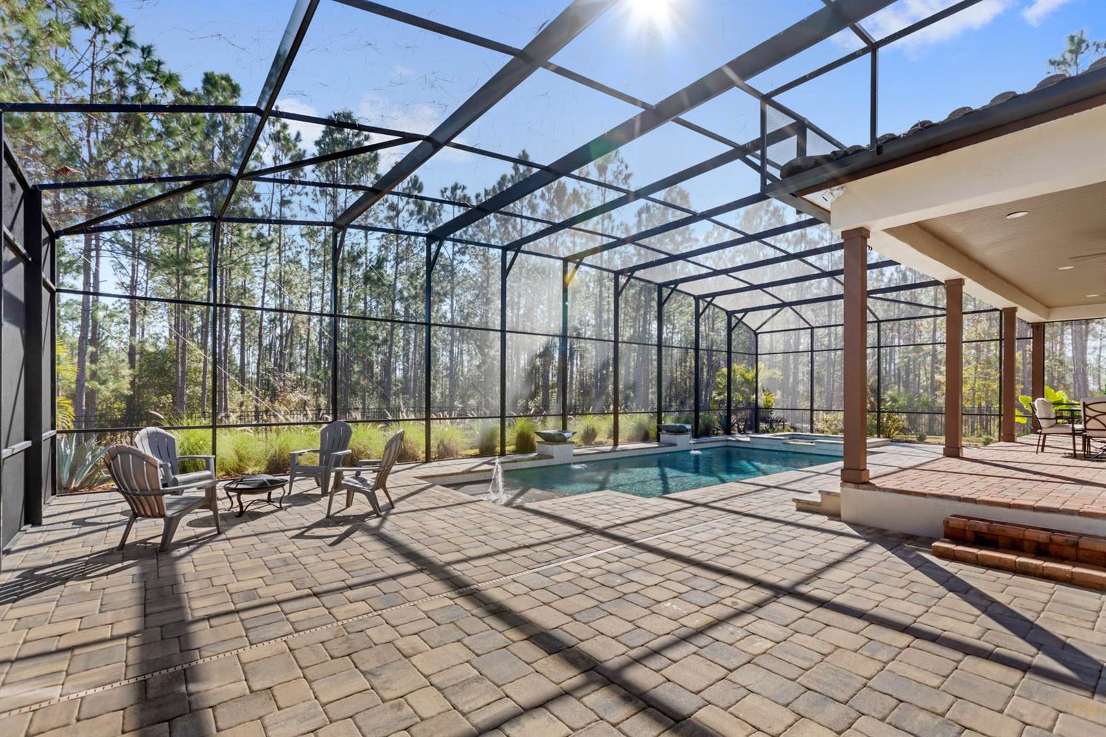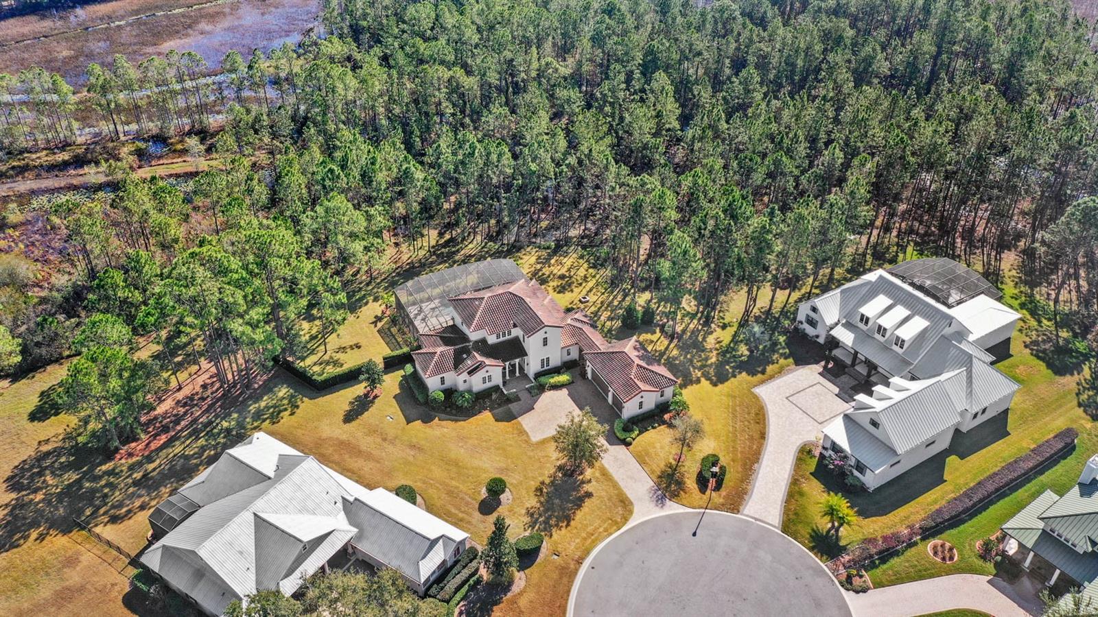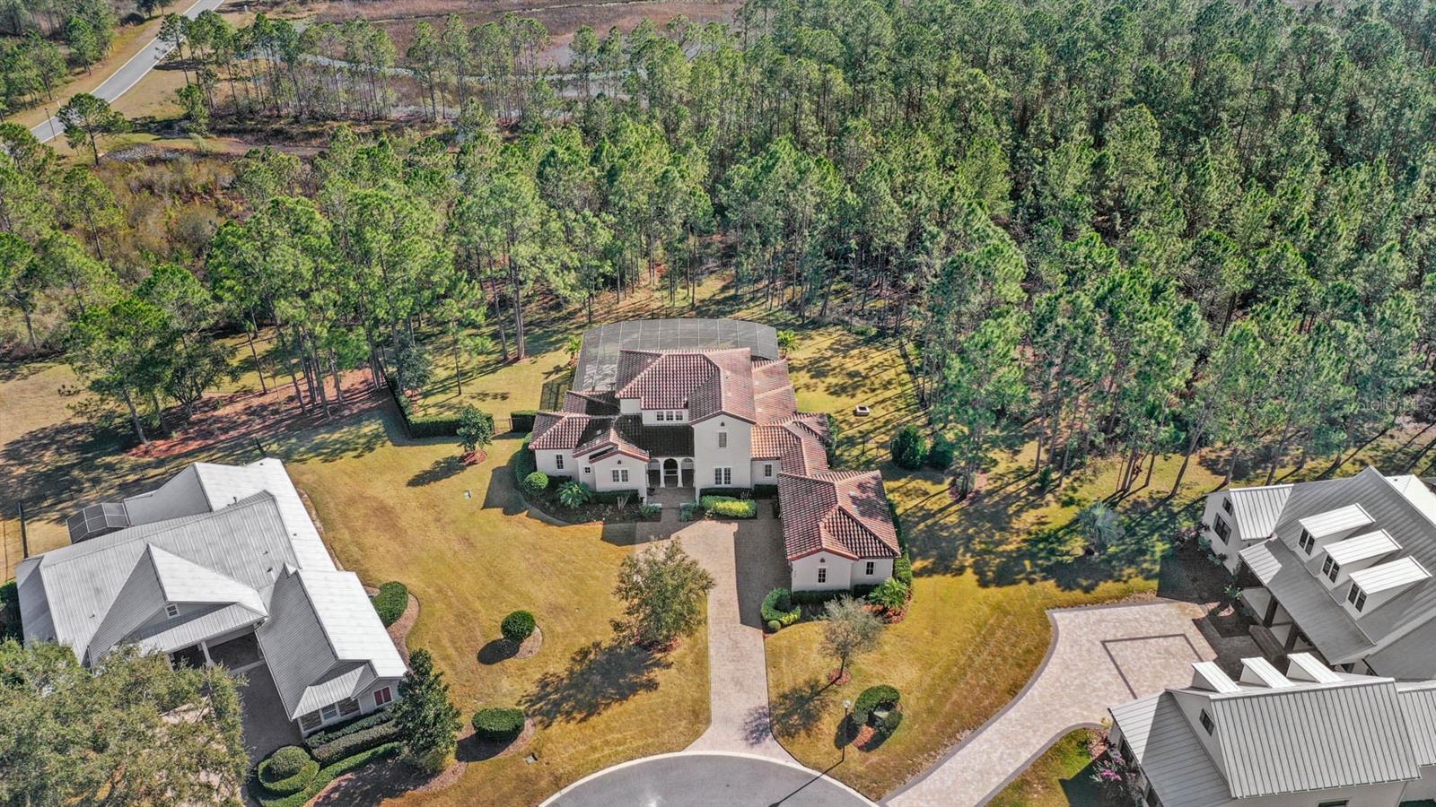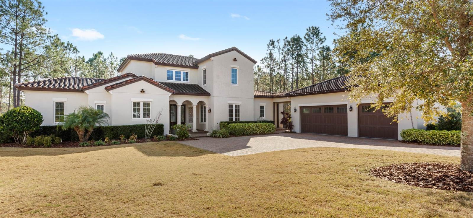 Welcome to 506 Yellow Submarine Court, a stunning 4-bedroom, 3.5-bathroom home with a 3-car garage, located on a cul-de-sac in the gated community of Blue Spring Reserve. Nestled on over two acres, this former model home was designed by J&J Custom Home Builders with premier design elements and an incredible outdoor space, making it the perfect home for both relaxing and entertaining. The entryway boasts an oversized paver driveway, professional landscaping, a Spanish tile roof, and decorative tile accents flanking the wooden double front doors. Upon entering, you’re welcomed by soaring 10-foot ceilings and French doors that offer a picturesque view of the pool area. The open-concept floor plan is highlighted by a built-in fireplace, wood flooring, and crown molding. The chef’s kitchen is equipped with high-end appliances, custom cabinetry, a pot filler, and a large butcher block island, which overlooks the dedicated dining and living areas—perfect for both cooking and entertaining. The first floor includes the primary suite, a dedicated office, and a laundry room for convenience. The primary bedroom features an expansive walk-in closet with custom built-ins and a luxurious en-suite bathroom complete with dual sinks, a soaking tub, and a frameless glass shower. On the second floor, you’ll find a spacious loft—ideal as an additional living space or workout zone—along with three additional bedrooms and two full bathrooms. One of the bedrooms features an en-suite bathroom, making it a perfect junior suite. Prepare to be stunned by the outdoor space! Two sets of French doors—located off the kitchen and living room—offer breathtaking views of the expansive outdoor area, enclosed under a two-story screen. The backyard features a large lanai, oversized paver patio, and a heated saltwater pool with a 10-person spa. The pool area is further enhanced by fountain features, intricate tile work, and custom lighting. Beyond the pool, the fenced homesite backs up to protected conservation land, ensuring permanent privacy with no future construction. This home includes double-pane windows, spray foam insulation, and two 15-SEER HVAC units, enhancing comfort and efficiency. Blue Spring Reserve is in a prime location in Groveland, just one mile from the Turnpike. You’ll enjoy easy access to Downtown Clermont and Downtown Winter Garden, along with a quick commute to Orlando, MCO Airport, and Disney. Don’t miss this rare opportunity to own a custom home on two acres with an incredible pool! Call today to schedule your showing.