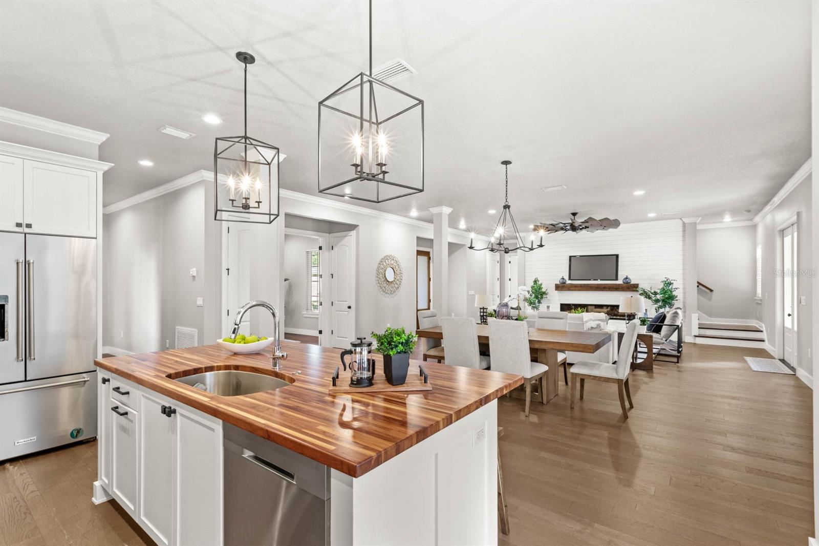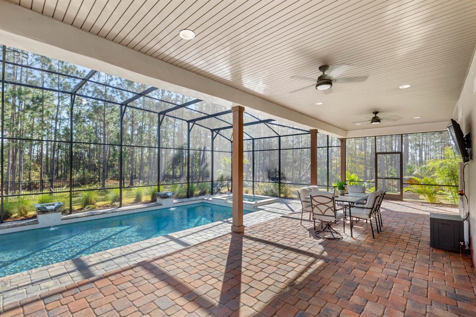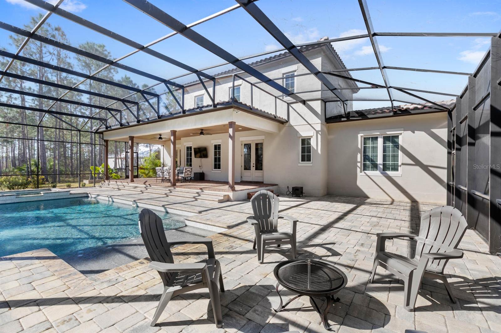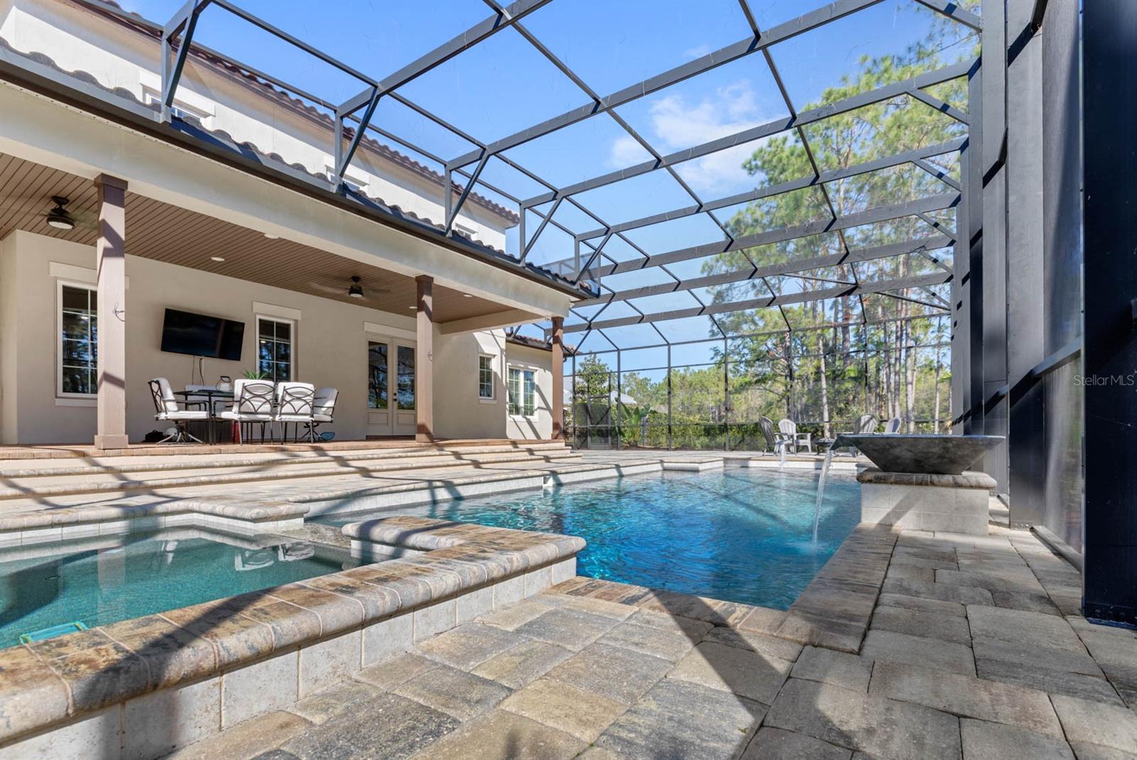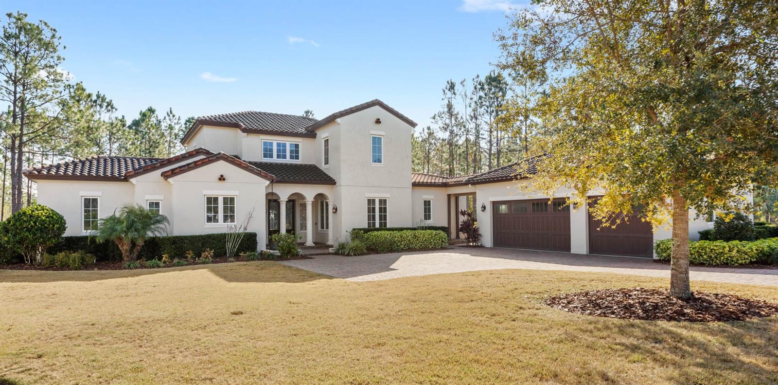 Welcome to 506 Yellow Submarine Court, a stunning 4-bedroom, 3.5-bathroom home with a 3-car garage, located on a cul-de-sac in the gated community of Blue Spring Reserve. Nestled on over two acres, this former model home was designed by J&J Custom Home Builders with premier design elements and an incredible outdoor space, making it the perfect home for both relaxing and entertaining. The entryway boasts an oversized paver driveway, professional landscaping, a Spanish tile roof, and decorative tile accents flanking the wooden double front doors. Upon entering, you’re welcomed by soaring 10-foot ceilings and French doors that offer a picturesque view of the pool area. The open-concept floor plan is highlighted by a built-in fireplace, wood flooring, and crown molding. The chef’s kitchen is equipped with high-end appliances, custom cabinetry, a pot filler, and a large butcher block island, which overlooks the dedicated dining and living areas—perfect for both cooking and entertaining. The first floor includes the primary suite, a dedicated office, and a laundry room for convenience. The primary bedroom features an expansive walk-in closet with custom built-ins and a luxurious en-suite bathroom complete with dual sinks, a soaking tub, and a frameless glass shower. On the second floor, you’ll find a spacious loft—ideal as an additional living space or workout zone—along with three additional bedrooms and two full bathrooms. One of the bedrooms features an en-suite bathroom, making it a perfect junior suite. Prepare to be stunned by the outdoor space! Two sets of French doors—located off the kitchen and living room—offer breathtaking views of the expansive outdoor area, enclosed under a two-story screen. The backyard features a large lanai, oversized paver patio, and a heated saltwater pool with a 10-person spa. The pool area is further enhanced by fountain features, intricate tile work, and custom lighting. Beyond the pool, the fenced homesite backs up to protected conservation land, ensuring permanent privacy with no future construction. This home includes double-pane windows, spray foam insulation, and two 15-SEER HVAC units, enhancing comfort and efficiency. Blue Spring Reserve is in a prime location in Groveland, just one mile from the Turnpike. You’ll enjoy easy access to Downtown Clermont and Downtown Winter Garden, along with a quick commute to Orlando, MCO Airport, and Disney. Don’t miss this rare opportunity to own a custom home on two acres with an incredible pool! Call today to schedule your showing.