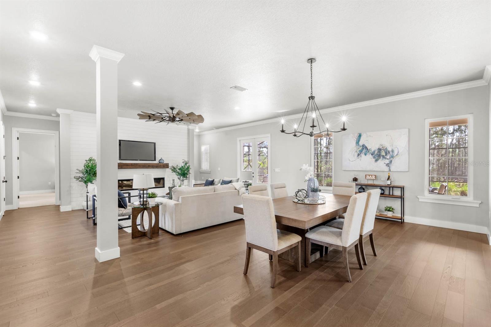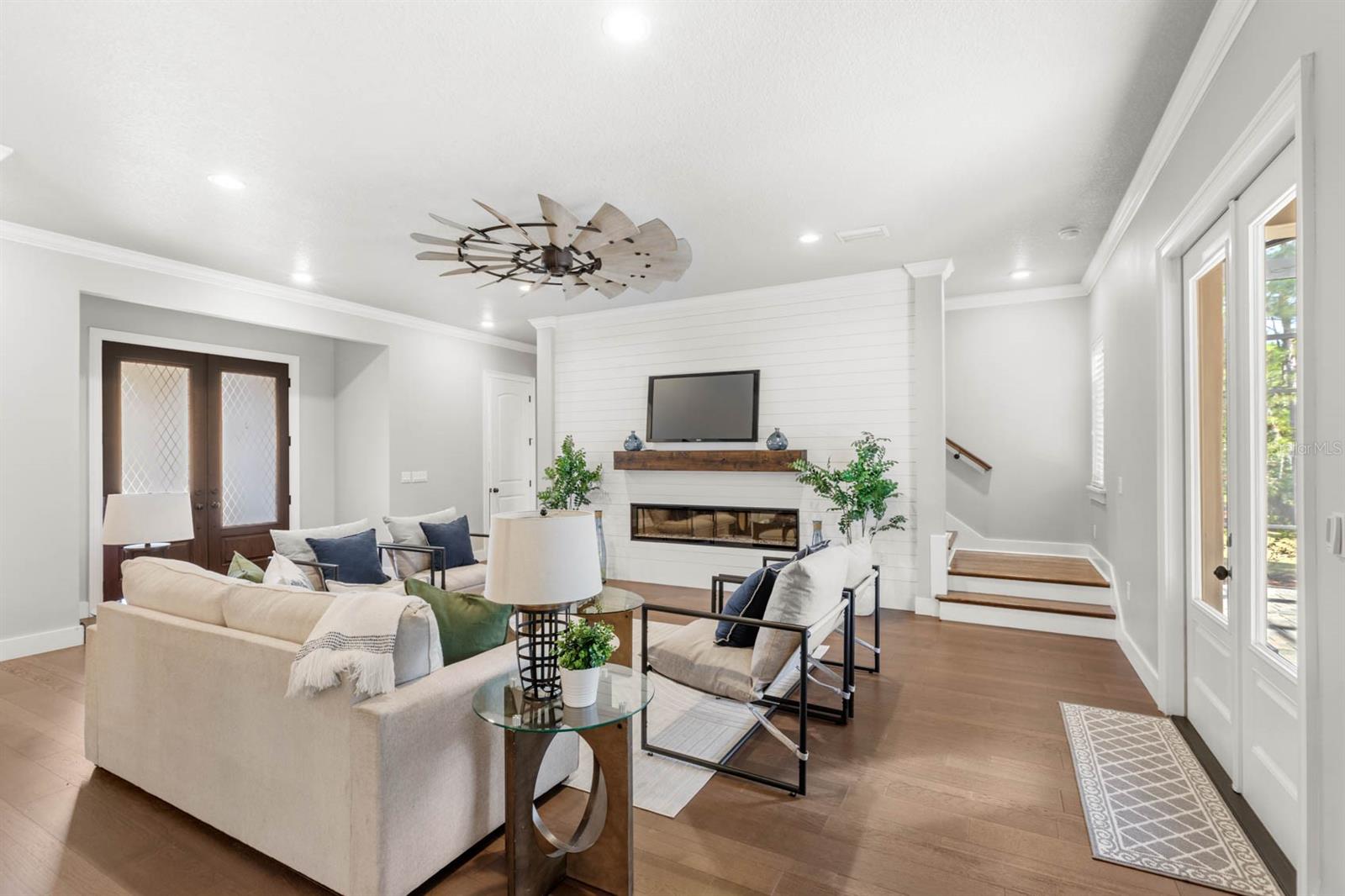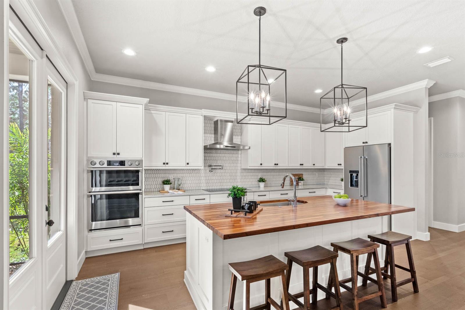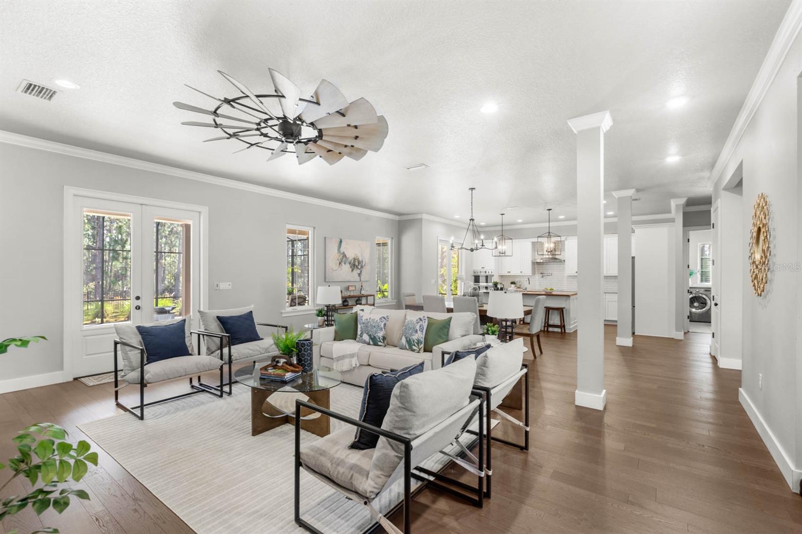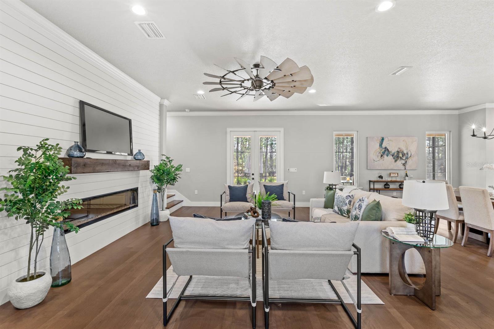 Welcome to 506 Yellow Submarine Court, a stunning 4-bedroom, 3.5-bathroom home with a 3-car garage, located on a cul-de-sac in the gated community of Blue Spring Reserve. Nestled on over two acres, this former model home was designed by J&J Custom Home Builders with premier design elements and an incredible outdoor space, making it the perfect home for both relaxing and entertaining. The entryway boasts an oversized paver driveway, professional landscaping, a Spanish tile roof, and decorative tile accents flanking the wooden double front doors. Upon entering, you’re welcomed by soaring 10-foot ceilings and French doors that offer a picturesque view of the pool area. The open-concept floor plan is highlighted by a built-in fireplace, wood flooring, and crown molding. The chef’s kitchen is equipped with high-end appliances, custom cabinetry, a pot filler, and a large butcher block island, which overlooks the dedicated dining and living areas—perfect for both cooking and entertaining. The first floor includes the primary suite, a dedicated office, and a laundry room for convenience. The primary bedroom features an expansive walk-in closet with custom built-ins and a luxurious en-suite bathroom complete with dual sinks, a soaking tub, and a frameless glass shower. On the second floor, you’ll find a spacious loft—ideal as an additional living space or workout zone—along with three additional bedrooms and two full bathrooms. One of the bedrooms features an en-suite bathroom, making it a perfect junior suite. Prepare to be stunned by the outdoor space! Two sets of French doors—located off the kitchen and living room—offer breathtaking views of the expansive outdoor area, enclosed under a two-story screen. The backyard features a large lanai, oversized paver patio, and a heated saltwater pool with a 10-person spa. The pool area is further enhanced by fountain features, intricate tile work, and custom lighting. Beyond the pool, the fenced homesite backs up to protected conservation land, ensuring permanent privacy with no future construction. This home includes double-pane windows, spray foam insulation, and two 15-SEER HVAC units, enhancing comfort and efficiency. Blue Spring Reserve is in a prime location in Groveland, just one mile from the Turnpike. You’ll enjoy easy access to Downtown Clermont and Downtown Winter Garden, along with a quick commute to Orlando, MCO Airport, and Disney. Don’t miss this rare opportunity to own a custom home on two acres with an incredible pool! Call today to schedule your showing.