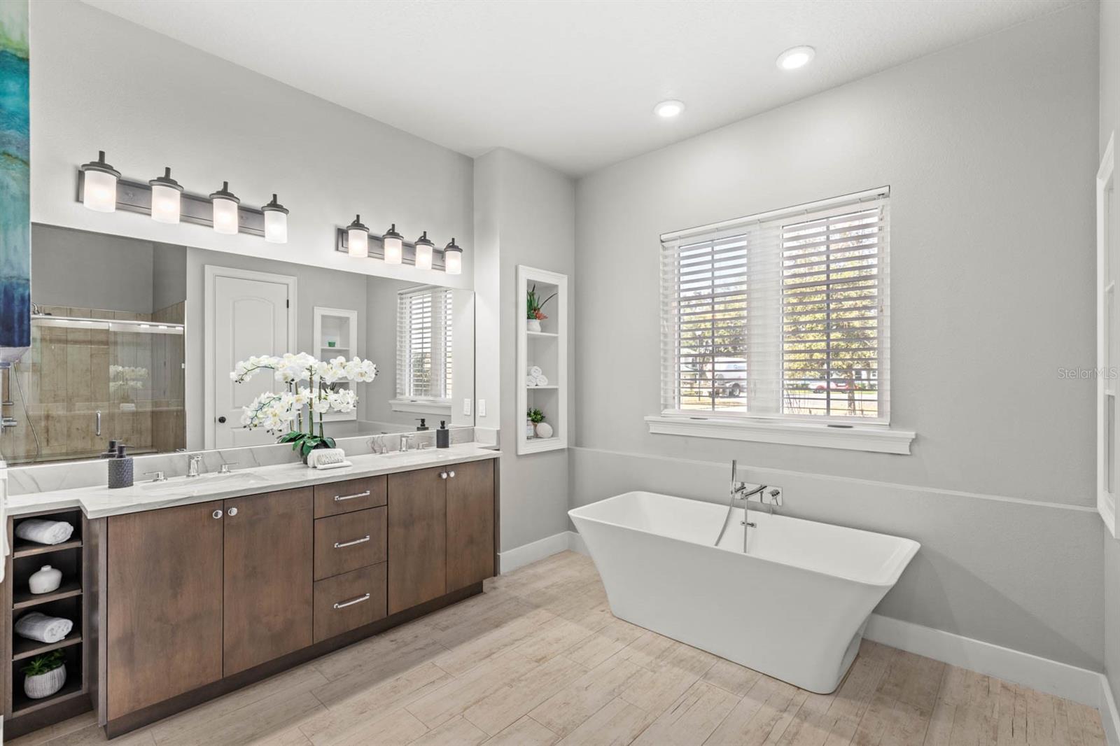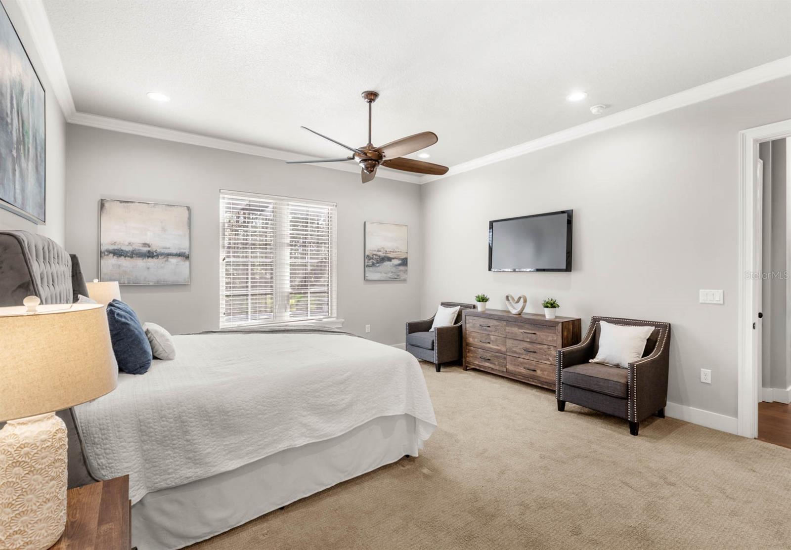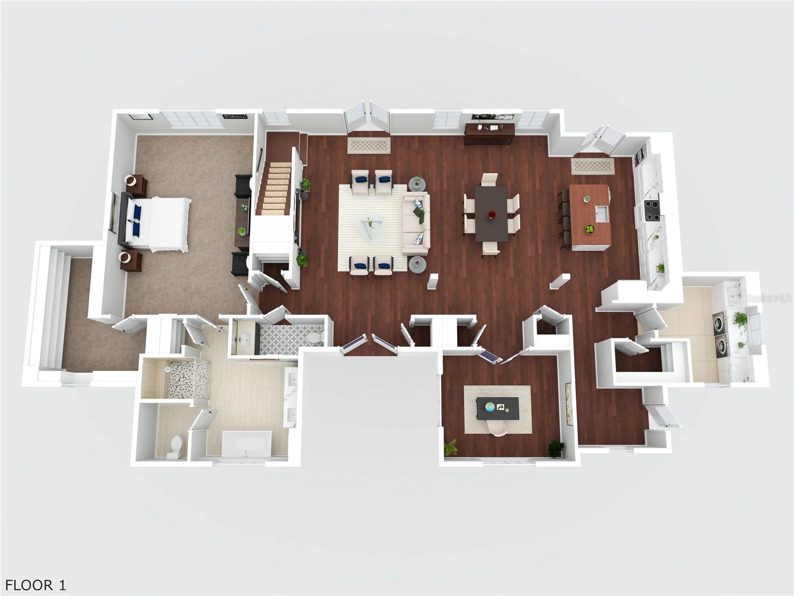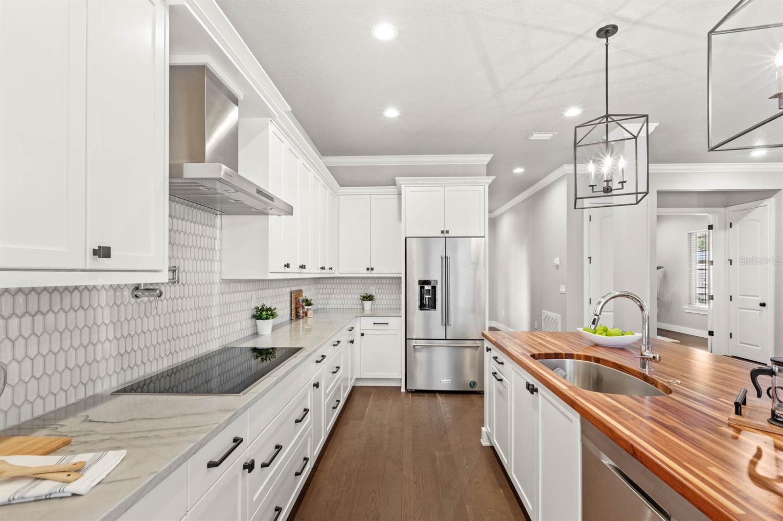 Welcome to 506 Yellow Submarine Court, a stunning 4-bedroom, 3.5-bathroom home with a 3-car garage, located on a cul-de-sac in the gated community of Blue Spring Reserve. Nestled on over two acres, this former model home was designed by J&J Custom Home Builders with premier design elements and an incredible outdoor space, making it the perfect home for both relaxing and entertaining. The entryway boasts an oversized paver driveway, professional landscaping, a Spanish tile roof, and decorative tile accents flanking the wooden double front doors. Upon entering, you’re welcomed by soaring 10-foot ceilings and French doors that offer a picturesque view of the pool area. The open-concept floor plan is highlighted by a built-in fireplace, wood flooring, and crown molding. The chef’s kitchen is equipped with high-end appliances, custom cabinetry, a pot filler, and a large butcher block island, which overlooks the dedicated dining and living areas—perfect for both cooking and entertaining. The first floor includes the primary suite, a dedicated office, and a laundry room for convenience. The primary bedroom features an expansive walk-in closet with custom built-ins and a luxurious en-suite bathroom complete with dual sinks, a soaking tub, and a frameless glass shower. On the second floor, you’ll find a spacious loft—ideal as an additional living space or workout zone—along with three additional bedrooms and two full bathrooms. One of the bedrooms features an en-suite bathroom, making it a perfect junior suite. Prepare to be stunned by the outdoor space! Two sets of French doors—located off the kitchen and living room—offer breathtaking views of the expansive outdoor area, enclosed under a two-story screen. The backyard features a large lanai, oversized paver patio, and a heated saltwater pool with a 10-person spa. The pool area is further enhanced by fountain features, intricate tile work, and custom lighting. Beyond the pool, the fenced homesite backs up to protected conservation land, ensuring permanent privacy with no future construction. This home includes double-pane windows, spray foam insulation, and two 15-SEER HVAC units, enhancing comfort and efficiency. Blue Spring Reserve is in a prime location in Groveland, just one mile from the Turnpike. You’ll enjoy easy access to Downtown Clermont and Downtown Winter Garden, along with a quick commute to Orlando, MCO Airport, and Disney. Don’t miss this rare opportunity to own a custom home on two acres with an incredible pool! Call today to schedule your showing.
