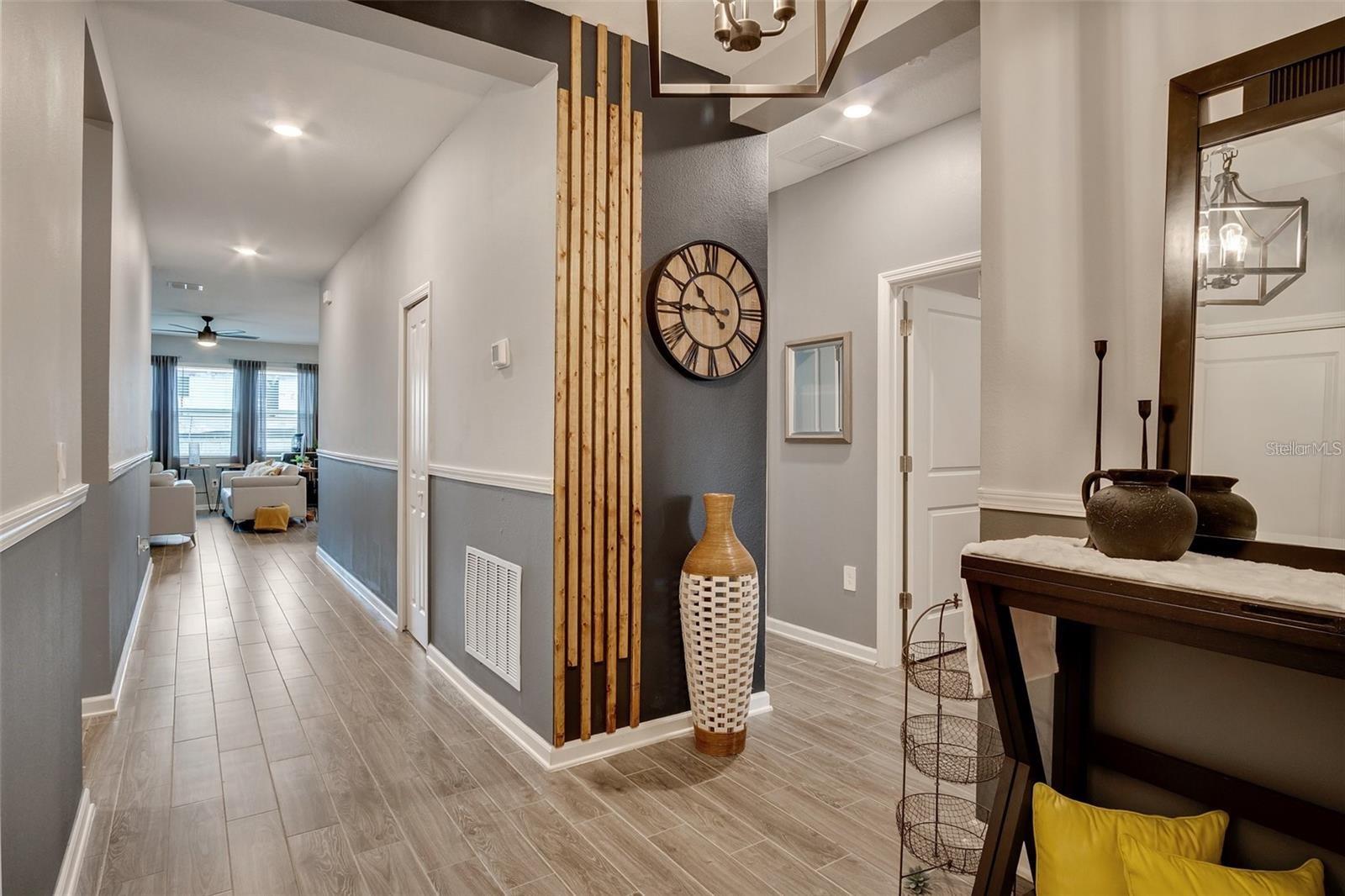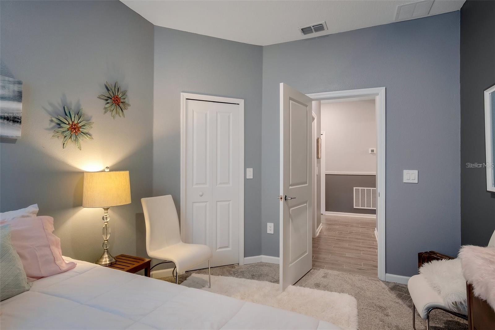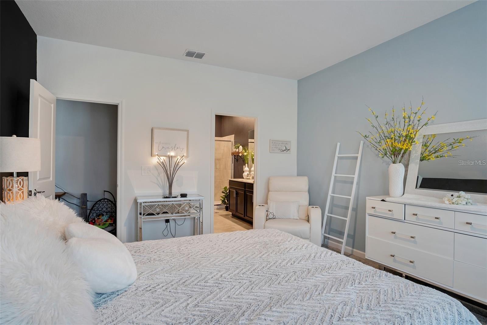 This stunning 4-bedroom, 2-bathroom home is located in the desirable Trinity Lakes neighborhood! Featuring a modern design with high ceilings and an open floor plan, this recently built home is equipped with solar panels for energy efficiency. The spacious kitchen is a standout with its dark espresso cabinetry, elegant quartz countertops, and bright, inviting atmosphere. Tile flooring flows seamlessly through the main living areas. Enjoy a variety of community amenities, such as a resort-style pool, splash pad, playground, fitness center, and clubhouse!