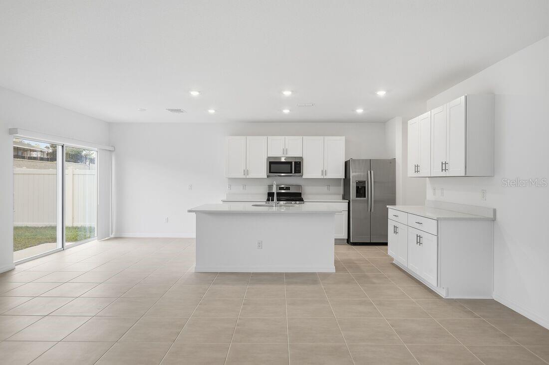 What's Special: South Facing Patio | Loft | White Cabinets. New Construction – Ready Now! Built by Taylor Morrison, America’s Most Trusted Homebuilder. Welcome to The Elm at 7351 Capstone Drive in Waterstone. This beautiful two-story home offers 2,271 sq. ft. of thoughtfully designed living space. This open-concept home features 4 bedrooms, 2.5 bathrooms, a versatile loft, and a 2-car garage. Step inside to a welcoming foyer that leads to a spacious great room, dining area, and stylish kitchen, with a convenient half-bath nearby. Upstairs, a bright loft anchors three secondary bedrooms and a full bath, while your private primary suite offers a spa-like retreat with dual vanity sinks, a walk-in shower, and a generous closet. A covered patio extends your living space outdoors, perfect for soaking up the Florida sunshine! New single-family homes are now selling at Waterstone! Spanning over 400 acres, Waterstone seamlessly flows into the natural landscape of Groveland, Florida, just minutes from Clermont. Surrounded by the rolling hills of Lake County, residents can also enjoy nearby lakes including Cherry Lake and Lake Minneola. This community's premier location, on Villa City Road, offers convenient access to the Western Beltway, Florida’s Turnpike and State Roads 50 and 19. At home, you have access to the planned amenities including a pool, cabana, dog park, Nature Play Space and numerous National Wildlife Federation Monarch Butterfly Gardens. Design highlights added include: 2" faux wood blinds, side by side refrigerator and washer and dryer. MLS#O6285632