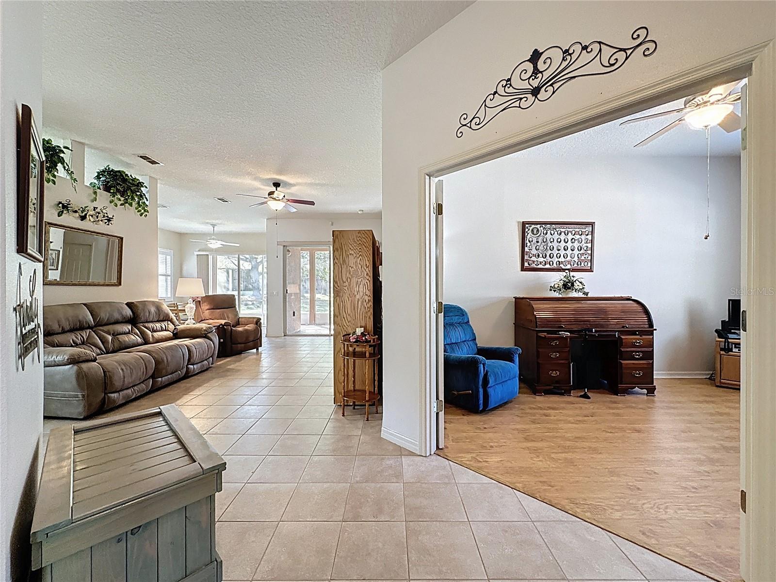 Nestled in the highly sought-after Trilogy Orlando, this beautiful home with open green space is a true gem. Boasting a NEW ROOF IN MARCH 2025, and solar power makes this home energy efficient. Enjoy the peace of mind and savings that come with modern, sustainable living. The spacious layout features two cozy bedrooms and a versatile den/flex space, perfect for a home office, craft room, or additional living area. The charming front porch adds to the inviting curb appeal, making it the perfect spot to unwind or greet guests. This home offers the ideal blend of comfort, convenience, and luxury. Don’t miss the opportunity to make this gorgeous, energy-efficient home yours! Cascades of Groveland is a guard gated community centered around the 57,000 square ft. Magnolia House and focuses on exercise and entertainment. A full-service restaurant and bar, two gyms, indoor and outdoor pools, spas, a walking trail, dog park, tennis, pickle, and bocce ball await you. 50+ clubs, concerts, shows, demonstration kitchen, massage room, dance studio, poker lounge, golf simulator, billiards and more add to living your desired lifestyle. The HOA monthly fees include lawn/shrub maintenance, basic cable, internet with landline, home security monitoring, streetlights, street maintained gated front entrance and clubhouse amenities. With approval, the HOA allows residents between the ages of 45 to 54 approval if it has not reached the max permitted. Do not miss this opportunity to own a truly exceptional property. Schedule your private tour today and experience the epitome of refined living.