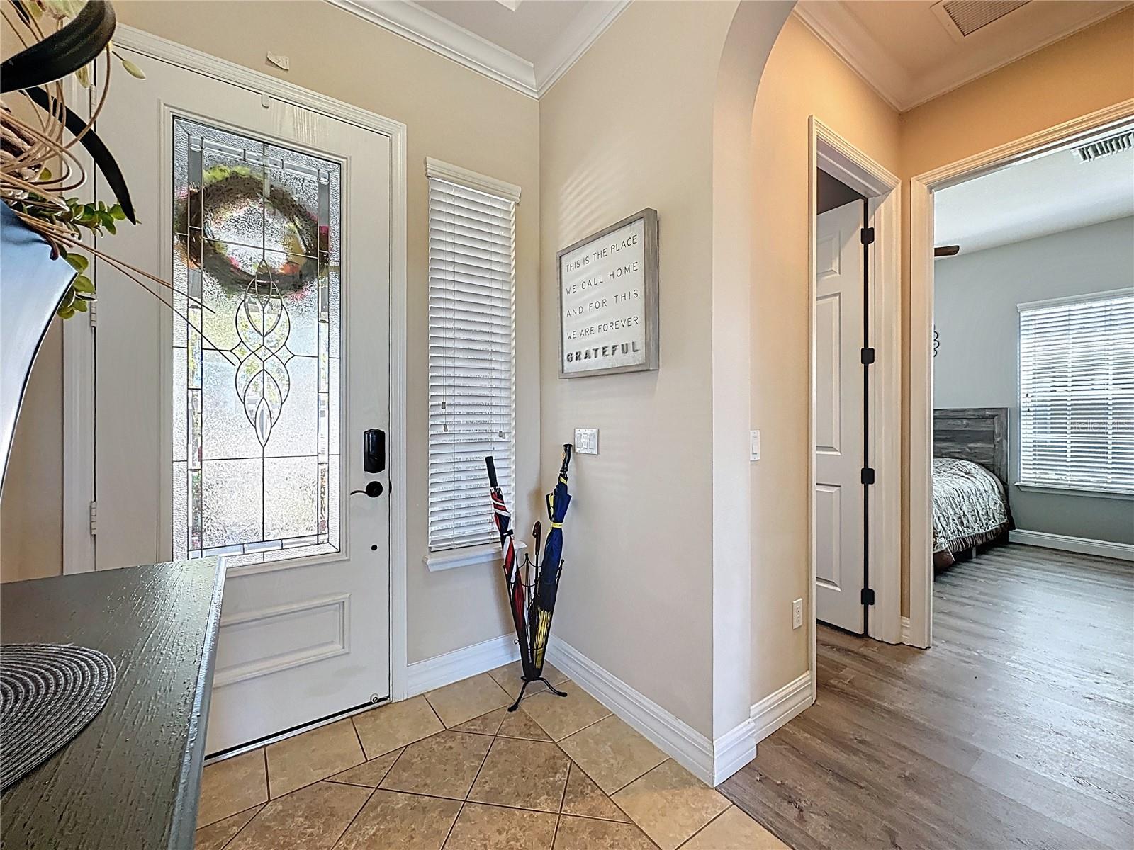 PRICED TO SELL! ENERGY EFFICIENT, A/C REPLACED IN 2024, Paid off SOLAR lease, RADIANT BARRIER in the roof, DOUBLE PANE WINDOWS and NATURAL GAS. The home sits on a PREMIUM WIDE HOMESITE, which overlooks an EXPANSIVE PREMIUM CONSERVATION VIEW and has NO REAR NEIGHBORS. The footprint of the home features a 2 ½ GARAGE, SPLIT 2 BEDROOMS, 2 BATHS, plus a DEN and a SCREENED LANAI. The PAVER DRIVEWAY and WALKWAY lead to the inviting FRONT PORCH and GLASS DOOR with SIDE LIGHT. OPTIONS were carefully CHOSEN with a PROFESSIONAL DESIGN TEAM making this home truly EXCEPTIONAL. Enter and you will be impressed with the DESIGNER TILED FOYER, HIGH CEILINGS, CUSTOM ARCHWAYS, CROWN MOLDING, OVERSIZED DOORS and BASEBOARDS. Your 42” KITCHEN CABINETS feature CROWN MOLDING, and UNDERLIGHTING. GRANITE COUNTERTOPS, STAINLESS STEEL APPLIANCES, DESIGNER TILED BACKSPLASH, GAS RANGE, PREP ISLAND and a GENEROUS PANTRY grace your work and entertainment areas. A cozy breakfast nook surrounded by windows rounds out the idea space for casual dining or watching the day go by. The WELL-DESIGNED OPEN CONCEPT of LIVING and DINING ROOMS are flooded with NATURAL LIGHT, GENEROUS IN SIZE to accommodate oversized furniture and has a SCENIC VIEW. Your DEN/OFFICE/FLEX SPACE is adjacent to the living and dining rooms and the ideal space to fit your needs. Your PRIMARY BEDROOM is GENEROUS IN SIZE with the bonus of an EXTENDED SUITE CLOSET like none other! The PRIMARY BATHROOM has DUAL SINK VANITIES, GRANITE COUNTERTOPS, FRAMELESS GLASS ENCLOSED SHOWER with BENCH, SOAKING TUB with SEPARATE WATER CLOSET. The GUEST BEDROOM has character with ARCHED SPACE for a desk, vanity, additional storage or to display your memorabilia. The GUEST BATHROOM is just outside the door and features a DESIGNER TILED TUB/SHOWER combo with TILE TO THE CEILING. Check out the UTILITY/FLEX SPACE that leads to the oversized garage. It INCLUDES the WASHER, DRYER, CABINETRY, DESK SPACE and plenty of WORKSPACE. Don’t miss this gem; schedule your private tour today! Trilogy Cascades of Groveland is a guard gated community centered around the 57,000 square ft. Magnolia House and focuses on exercise and entertainment. A full-service restaurant and bar, two gyms, indoor and outdoor pools, spas, a walking trail, dog park, tennis, pickle and bocce ball await you. 50+ clubs, concerts, shows, demonstration kitchen, massage room, dance studio, poker lounge, golf simulator, billiards and more add to living your desired lifestyle. The HOA monthly fees include lawn/shrub maintenance, basic cable, internet with landline, home security monitoring, streetlights, street maintenance, guard gated front entrance and clubhouse amenities. With HOA approval, the community allows residents between the ages of 45 to 54.
