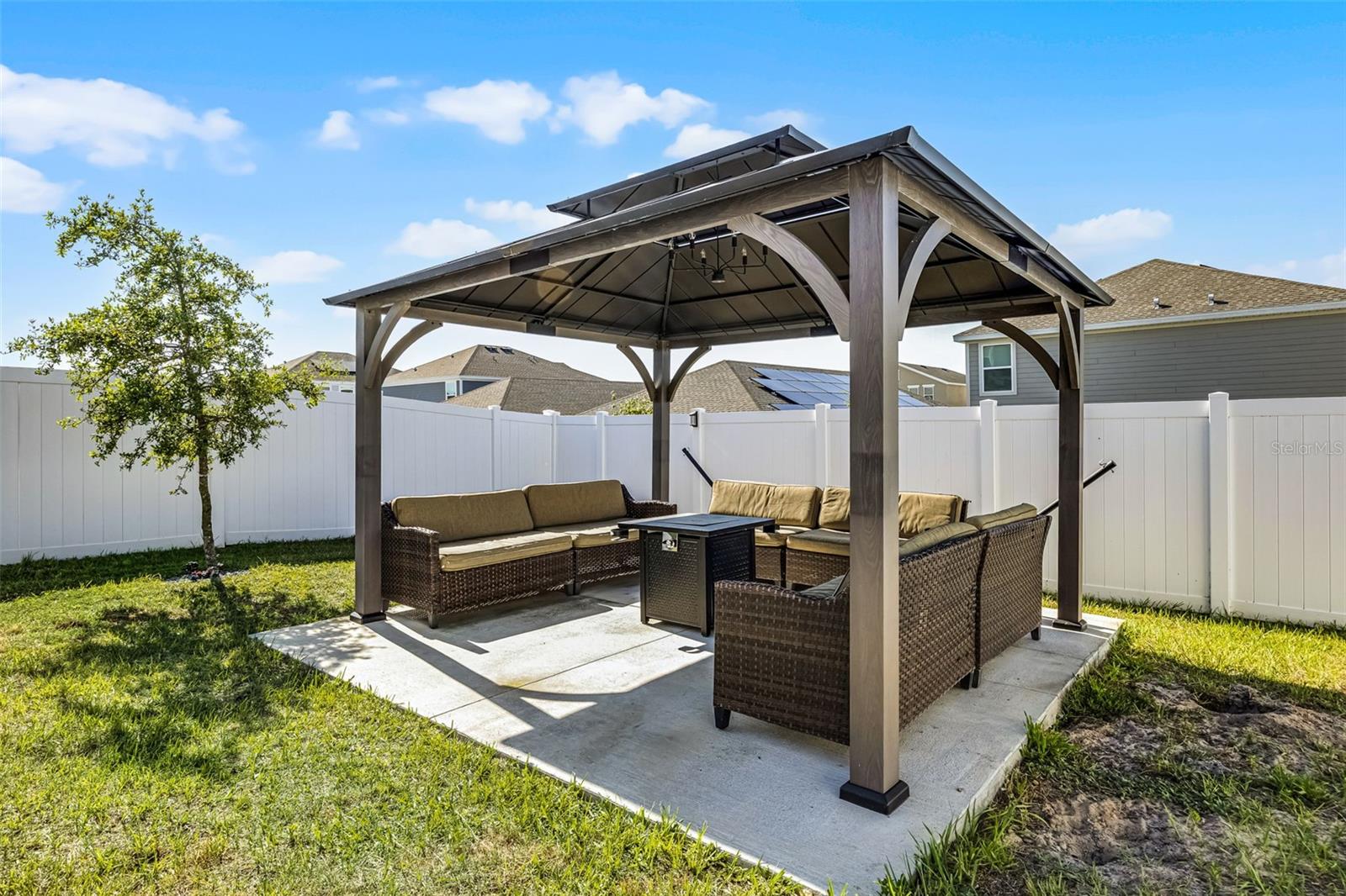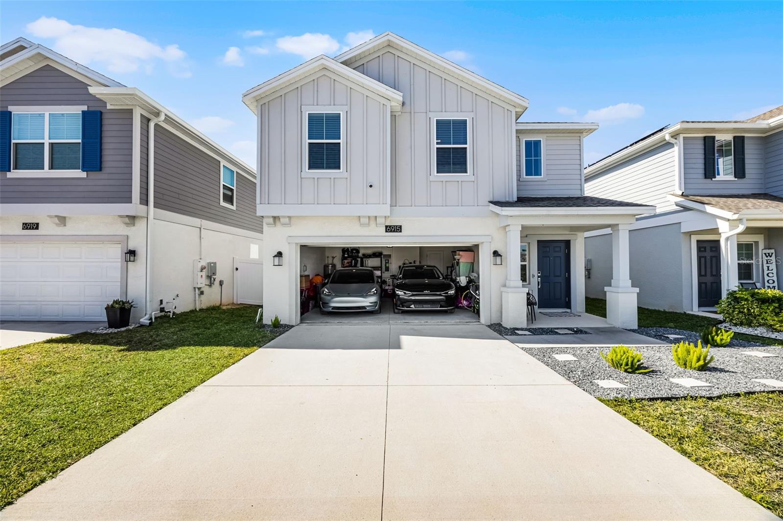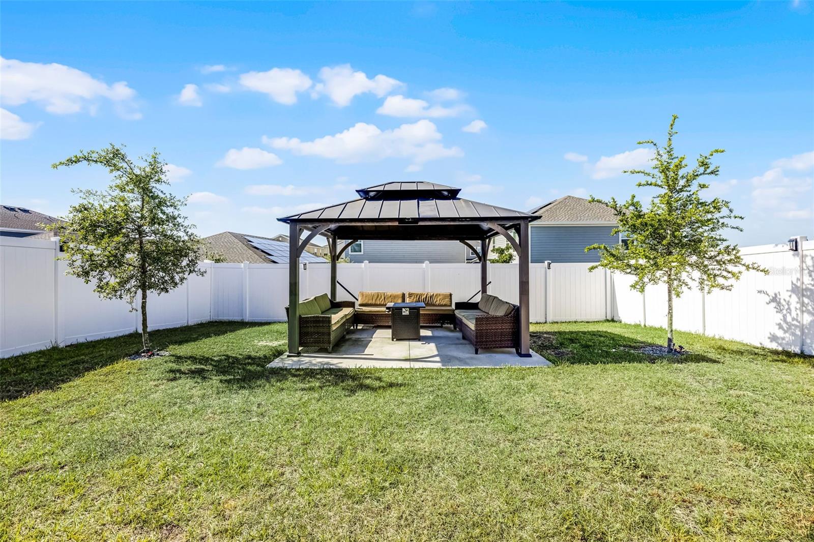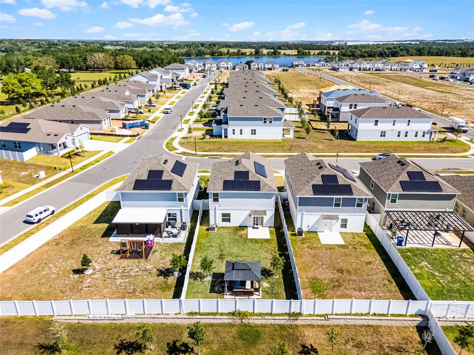 NEWLY PRICED, UPGRADED 2023 home in Trinity Lakes. Priced to Sell! Built in 2023 and thoughtfully enhanced with over a dozen post-purchase upgrades, this four-bedroom, 2.5-bath residence in Groveland’s Trinity Lakes community offers 1,870 square feet of heated living space and over 2,000 square feet in total. Beyond the builder’s finishes, the owner invested extensively in lifestyle and efficiency enhancements throughout 2023 and 2024. Upgrades include a dramatic foyer chandelier, custom ceiling fans, additional recessed lighting in the loft and bedrooms, and pendant lighting in the kitchen. The kitchen also features stainless steel appliances, an island with a sink, and a spacious walk-in pantry. The expansive primary suite includes an en-suite bath with dual sinks and a walk-in closet. Additional post-purchase upgrades add valuable functionality, including custom cabinetry in the laundry room, sealed grout throughout, and dedicated ethernet cabling in the office for high-speed connectivity. The property is equipped with solar panels included by the builder, offering energy efficiency at a predictable $59 monthly rate for panels and further enhanced with a 240V EV charging port and a water filtration system. Smart technology upgrades include integrated Google Home, alarm system and camera surveillance. Outdoor living was equally enhanced with a fenced backyard, newly poured concrete patio, gazebo and garden beds updated with luxury stones for elevated curb appeal. Residents of Trinity Lakes enjoy access to a resort-style pool, playground, scenic walking trails and a path to tranquil Lake Lucy. Schedule your private showing today and experience the advantage of a move-in-ready home with premium post-purchase upgrades.