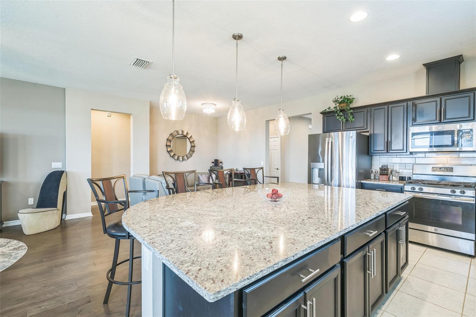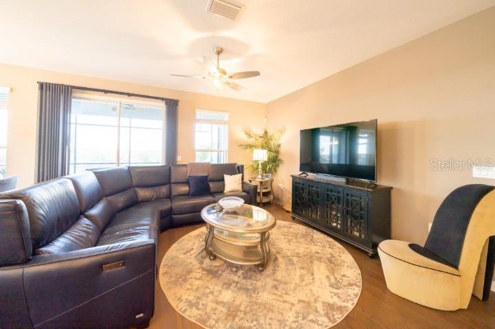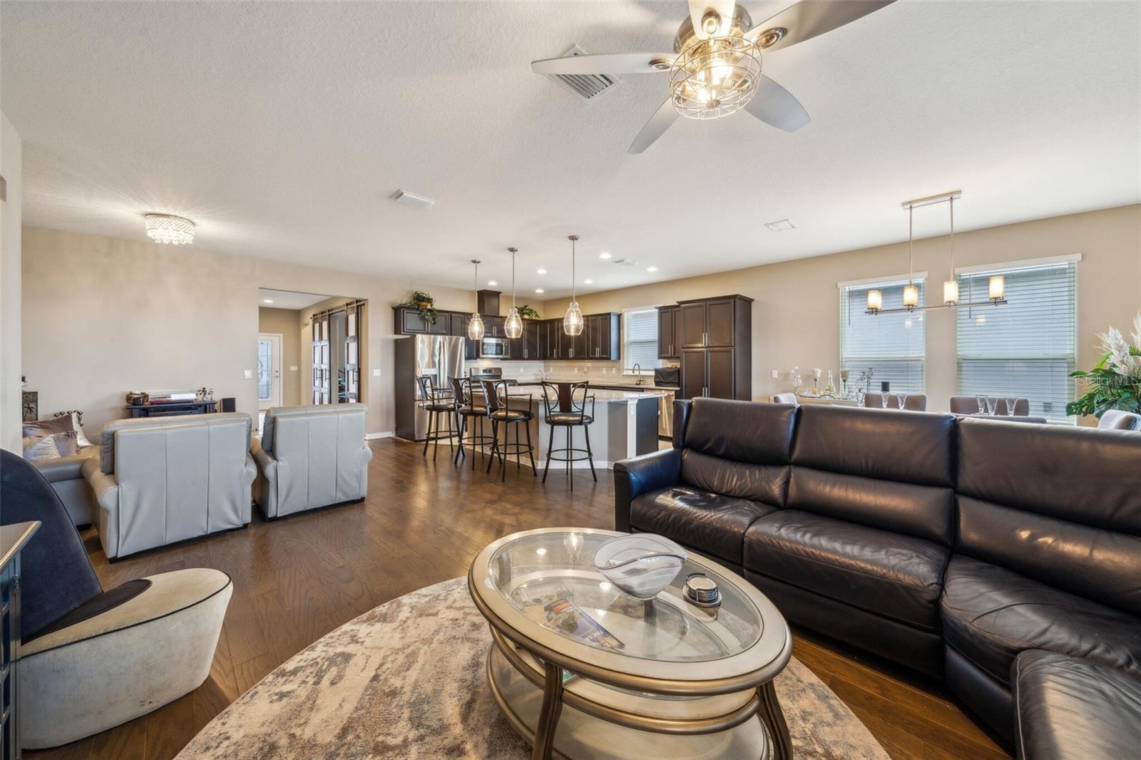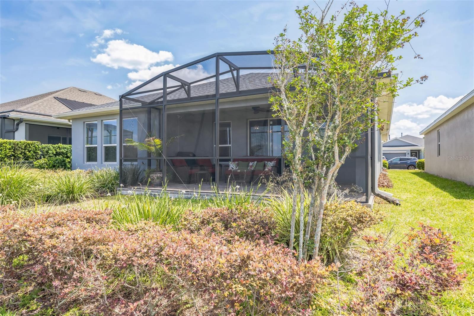 Welcome to your dream retirement retreat in the heart of The Cascades at Groveland. Built in 2019, this beautifully maintained 3-bedroom, 2.5-bathroom home with a versatile den offers 2,065 square feet of thoughtfully designed living space, perfect for both relaxation and entertaining. As you enter, you'll be greeted by an open-concept layout that seamlessly connects the spacious great room, dining area, and modern kitchen. The kitchen is a chef’s delight, featuring stainless steel appliances, solid wood cabinetry, and a convenient breakfast bar that makes hosting and everyday meals a breeze. The private primary suite is a true sanctuary, complete with a walk-in closet and a luxurious en-suite bathroom featuring dual vanities and a walk-in shower. A flexible den provides the ideal space for a home office, hobby room, or quiet reading nook. Step outside to your screened patio, where you can enjoy peaceful mornings and tranquil evenings surrounded by a beautifully landscaped garden setting. This home also features energy-efficient systems, central air conditioning, and natural gas heating for year-round comfort. The two-car garage offers ample room for storage and parking. HOA dues include access to the community's exceptional amenities, including a clubhouse, fitness center, indoor and outdoor pools, pickleball courts, scenic walking trails, and a robust calendar of social activities that make every day feel like a vacation. Conveniently located near shopping, dining, and outdoor recreation, don’t miss your chance to experience the lifestyle you’ve been waiting for—schedule your private tour of 525 Narrow View Lane today. HOA Fee is $549 including a Gated community,Security guard,Phone line, Spectrum TV and cable wire-service. Security is Mi tech the security for the house